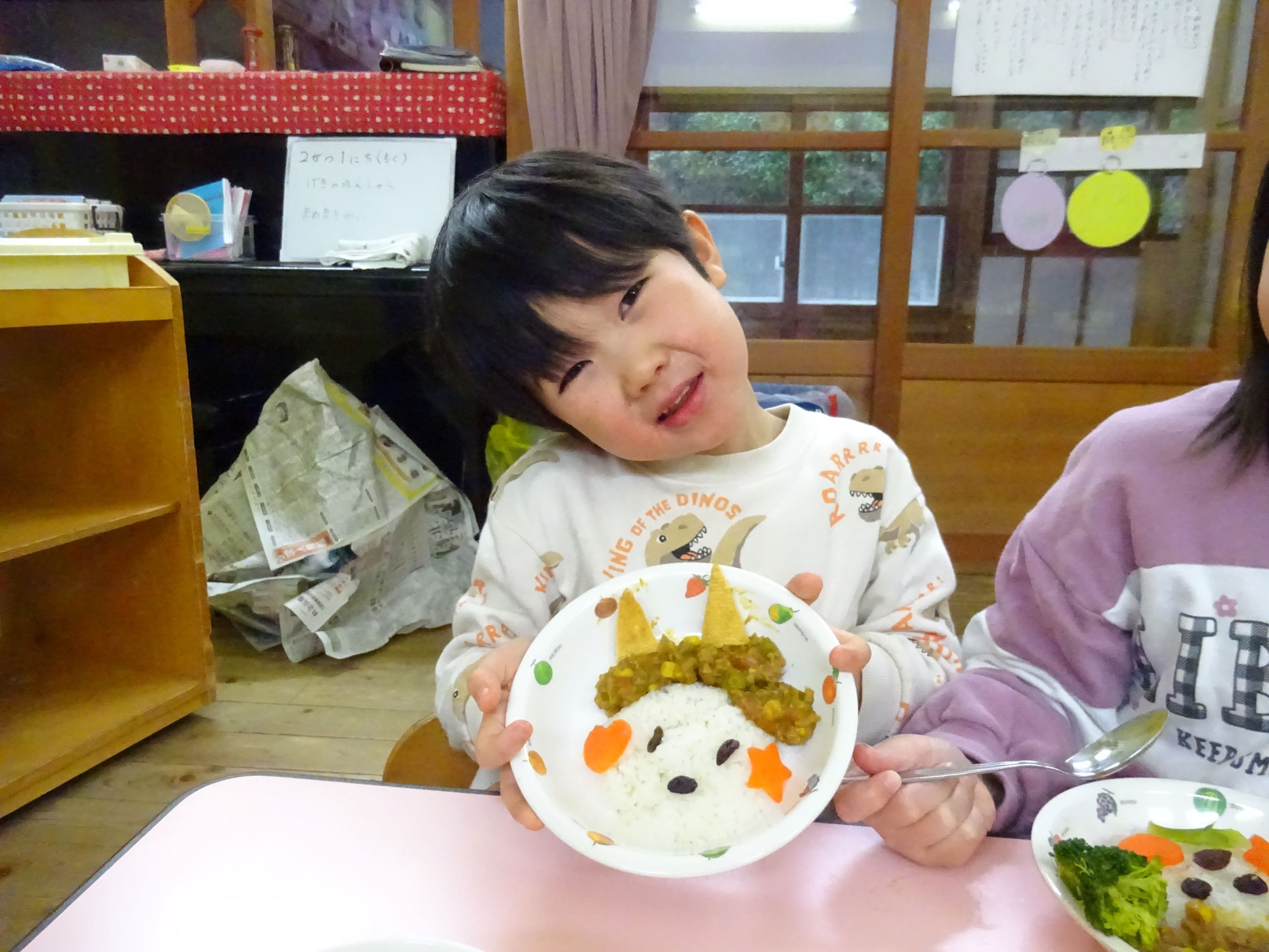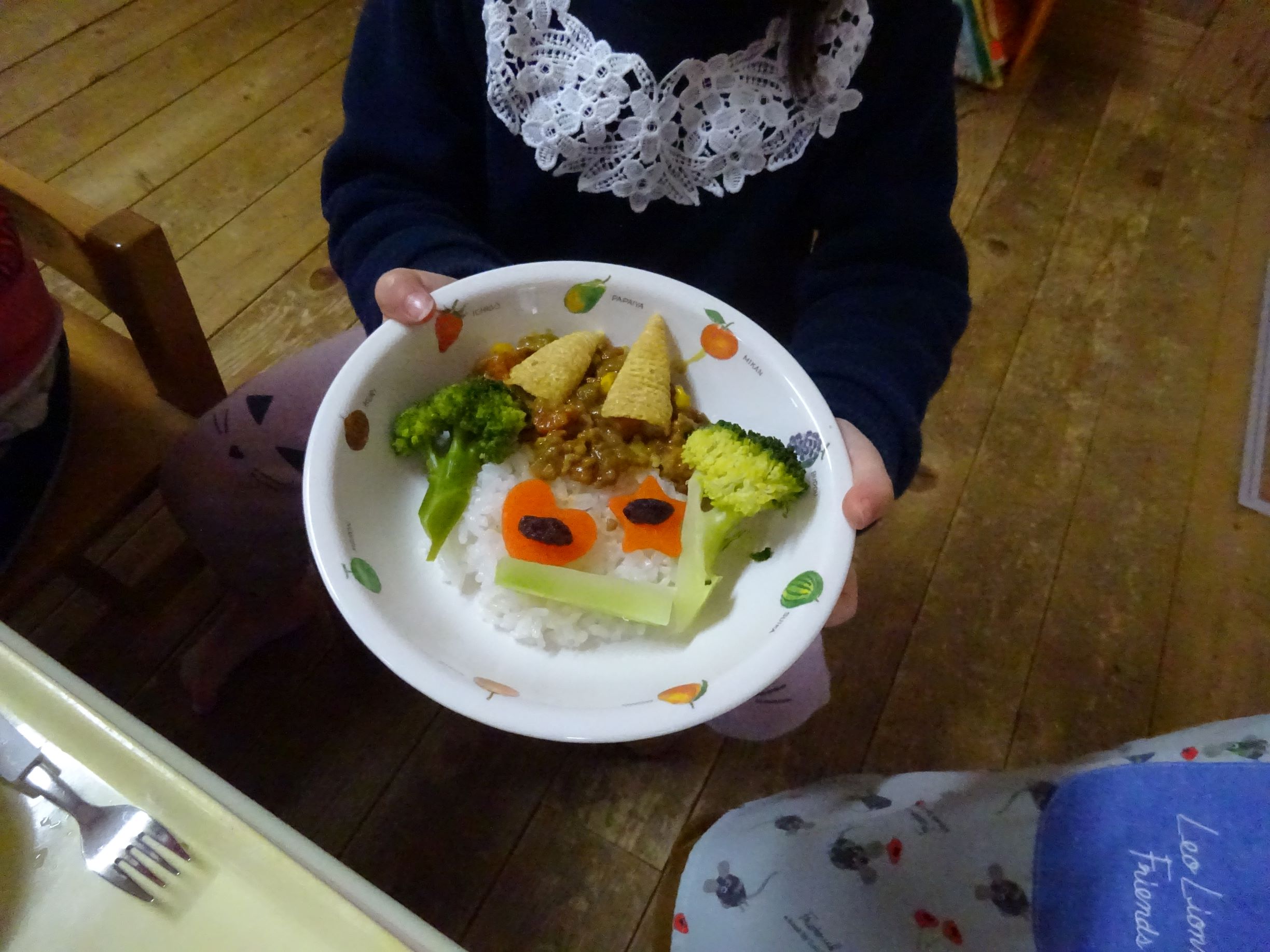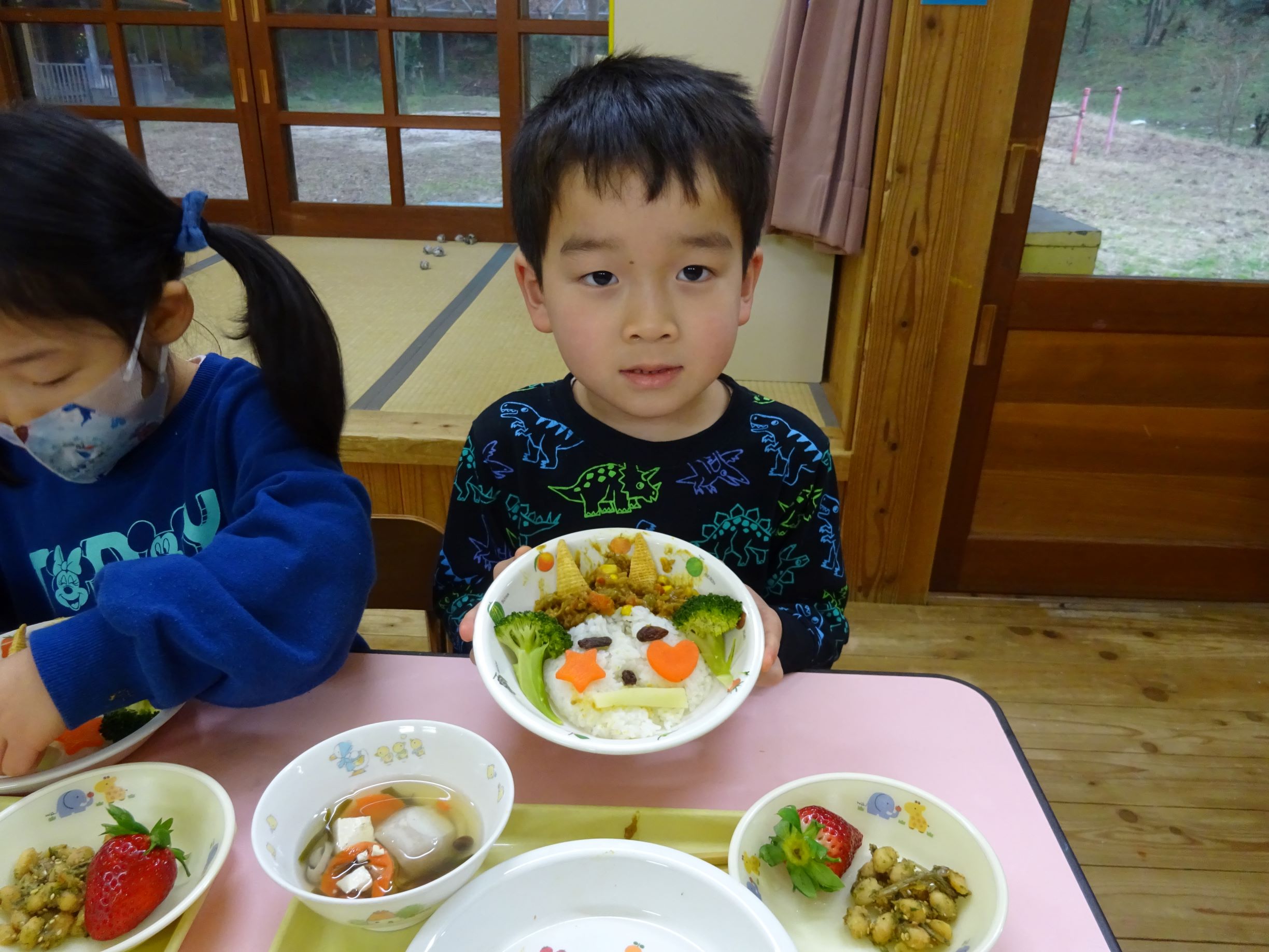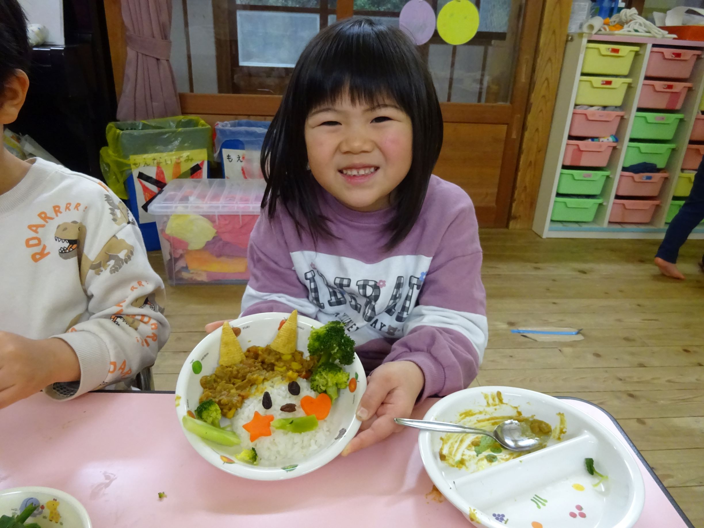 ゆめほし組 給食は鬼っ子ご飯で自分で鬼の顔を作ります。