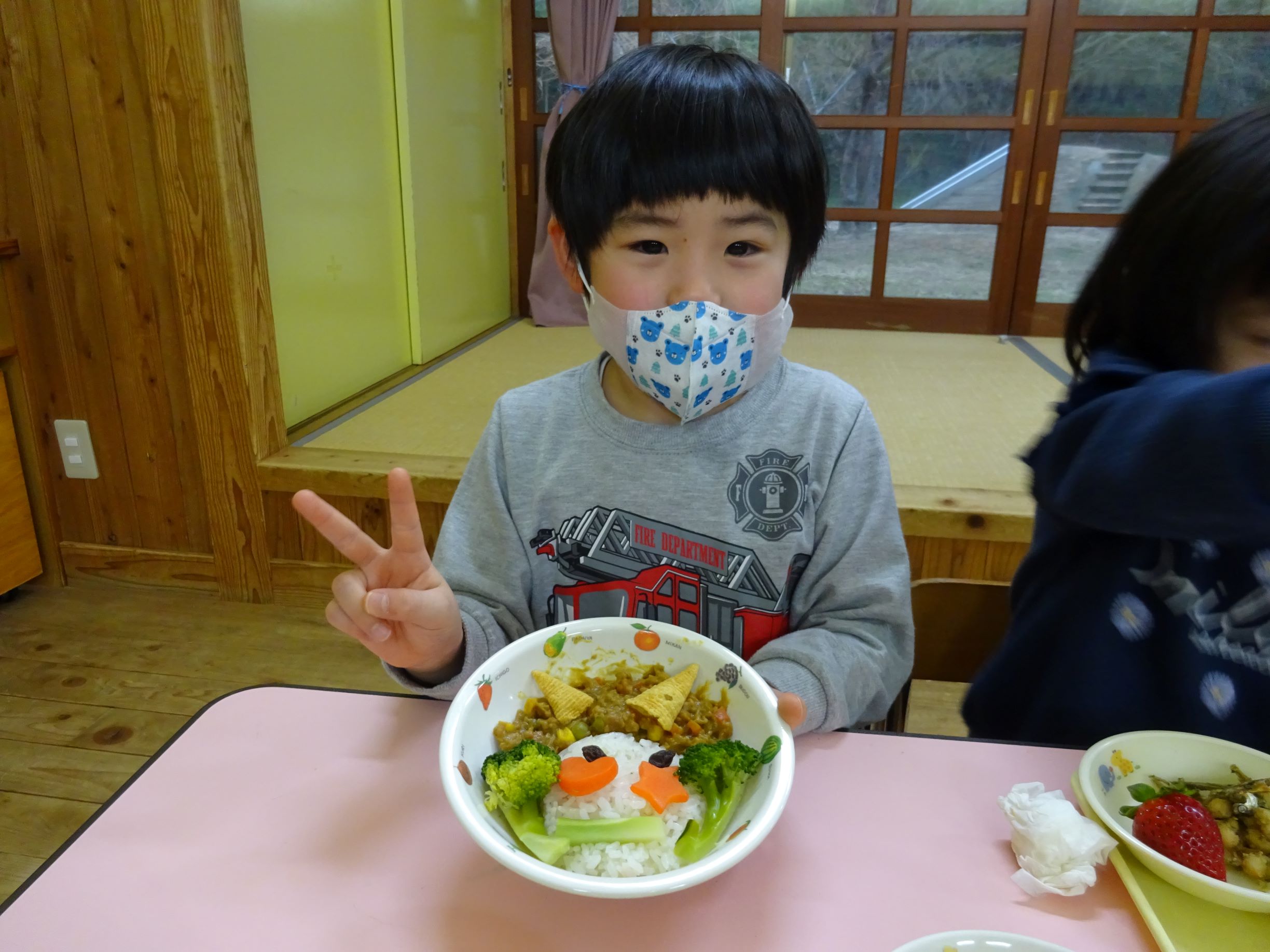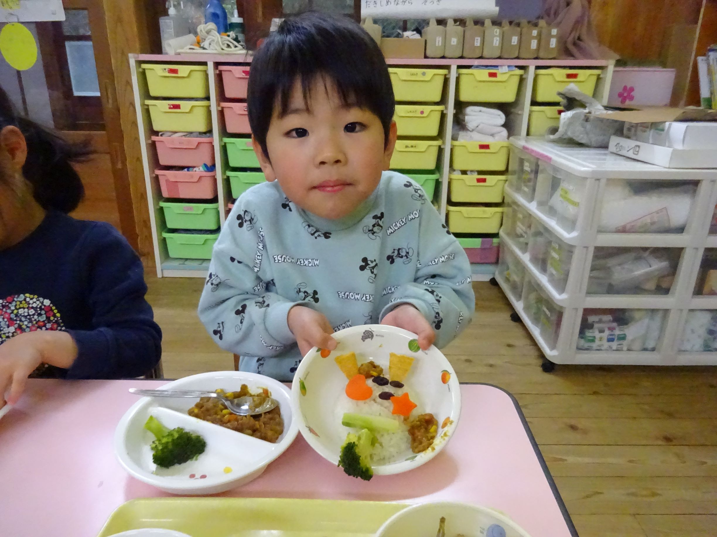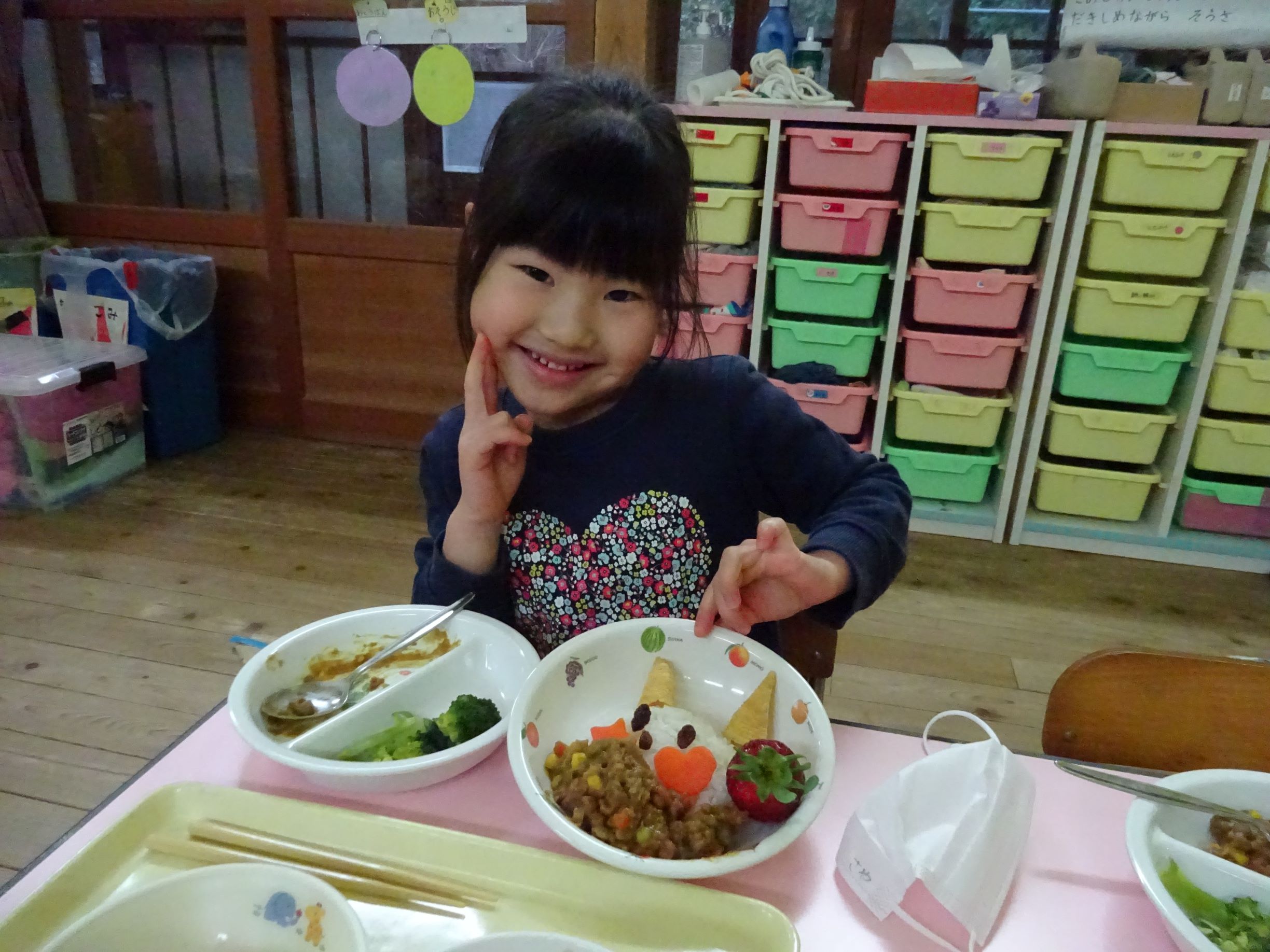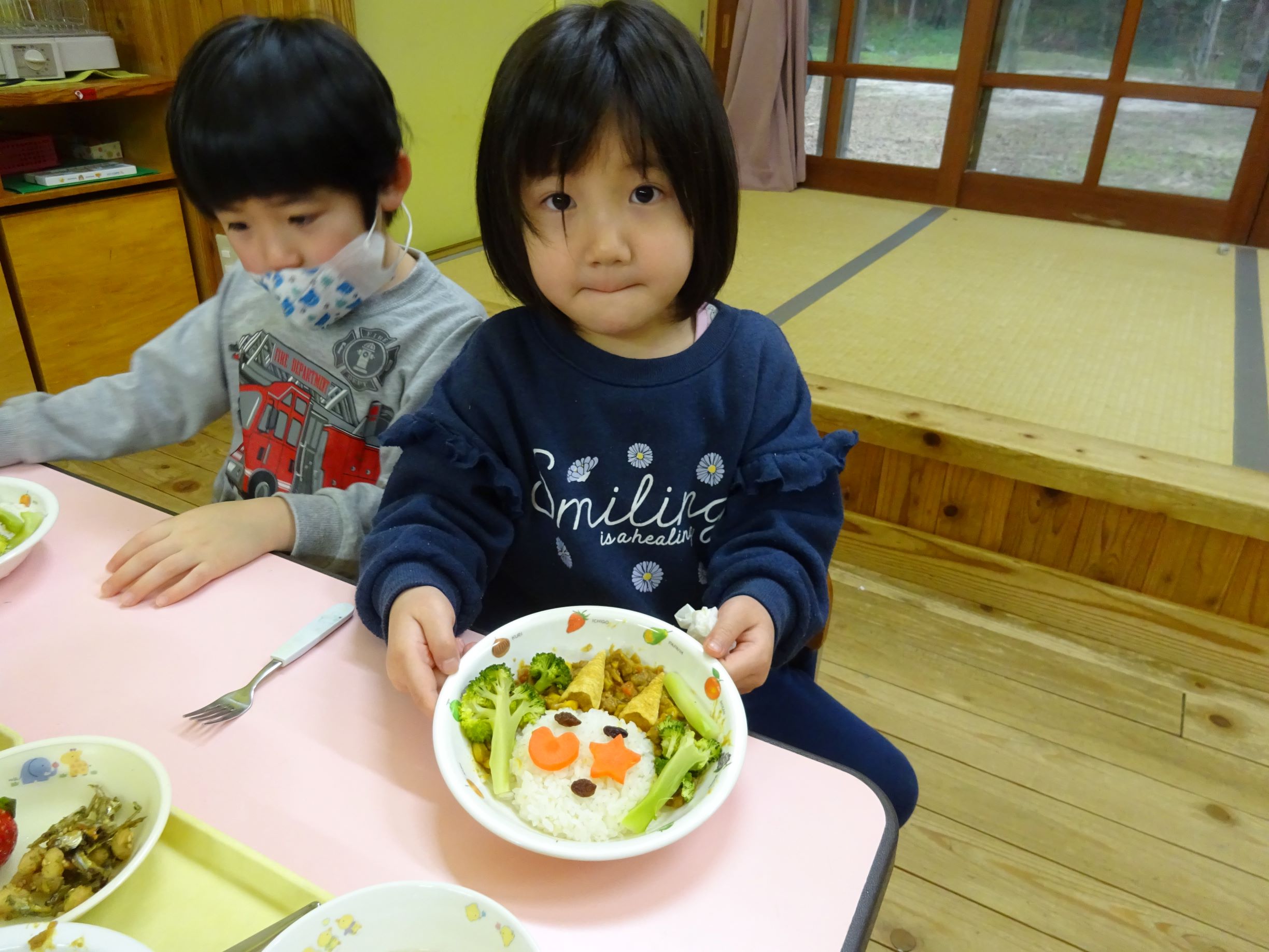 ゆめほし組 給食は鬼っ子ご飯で自分で鬼の顔を作ります。