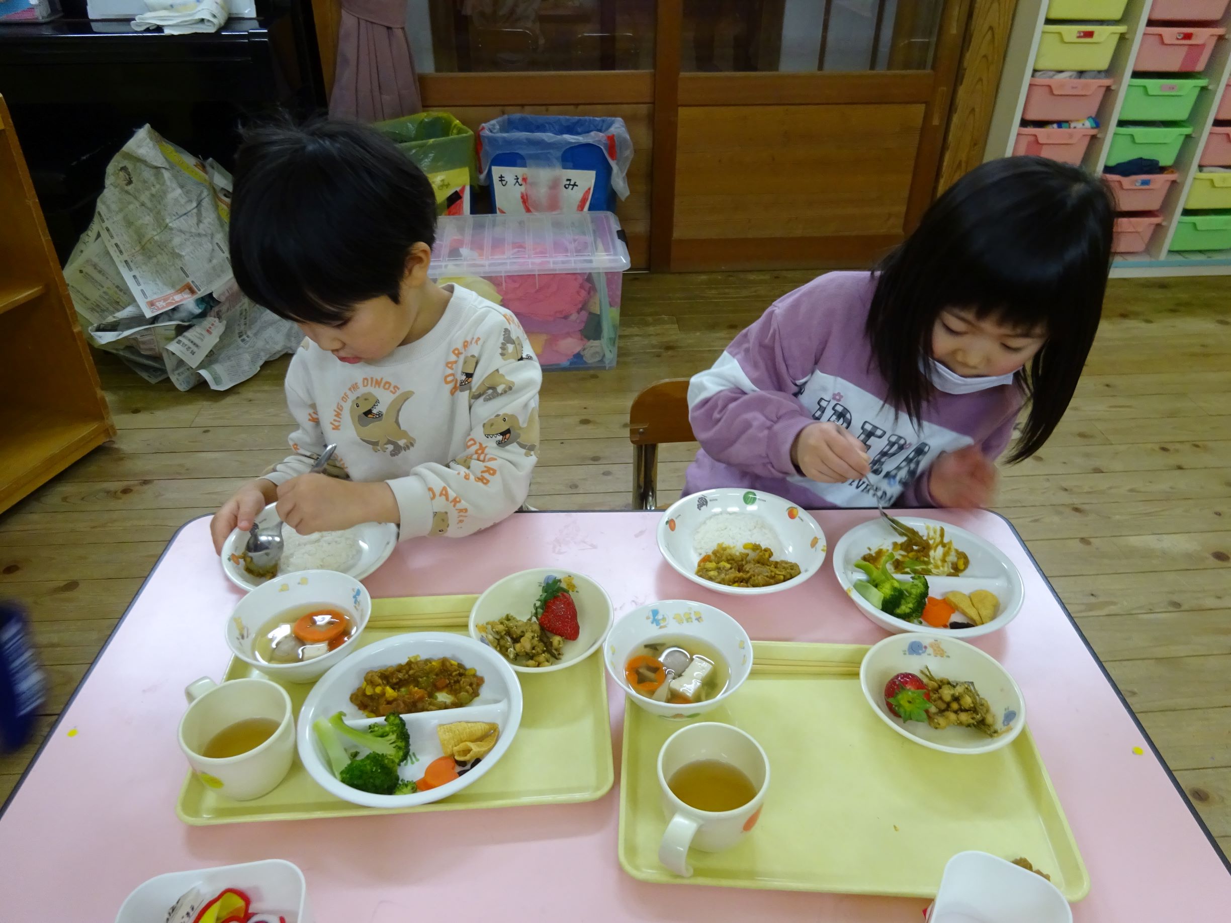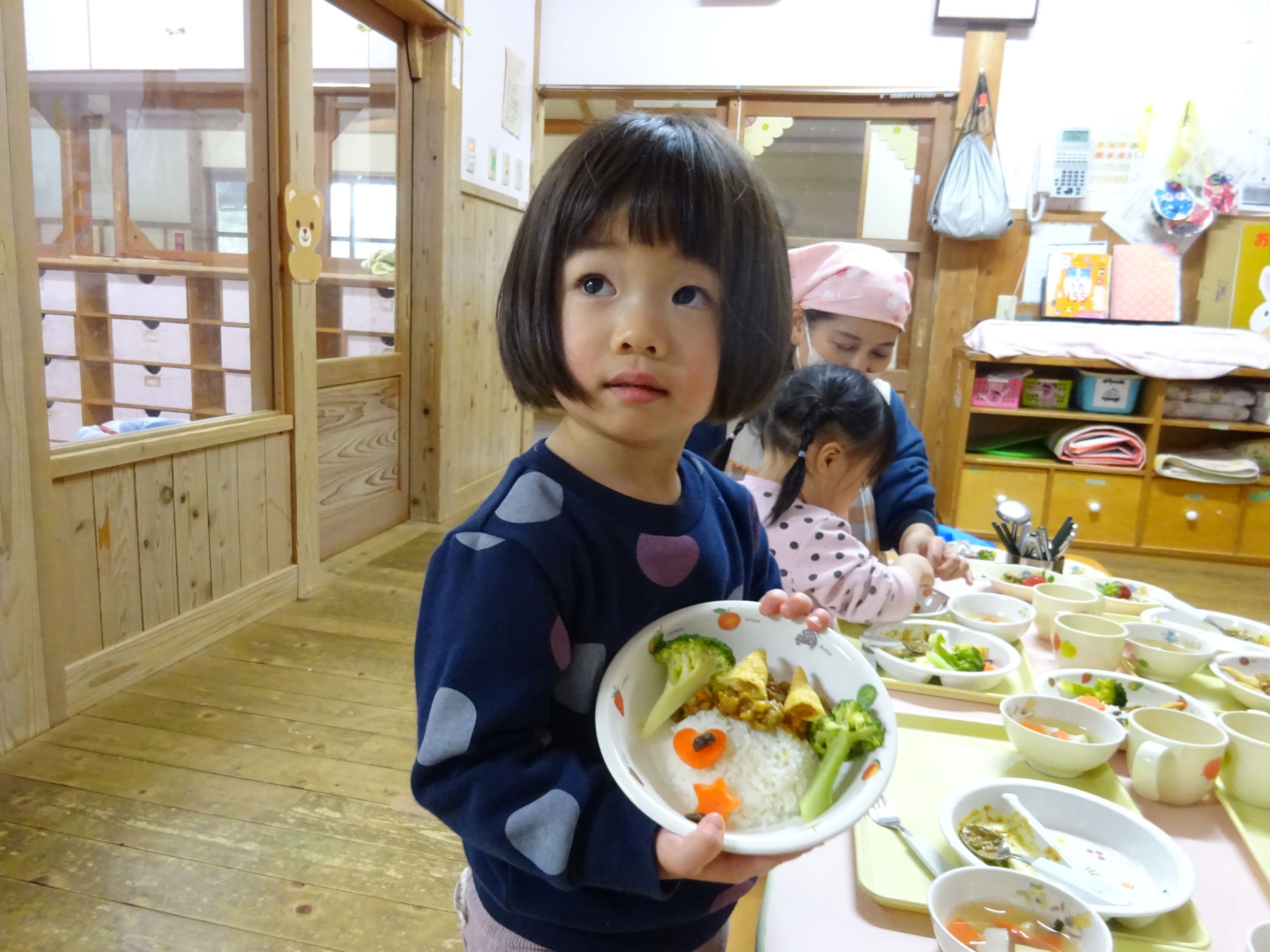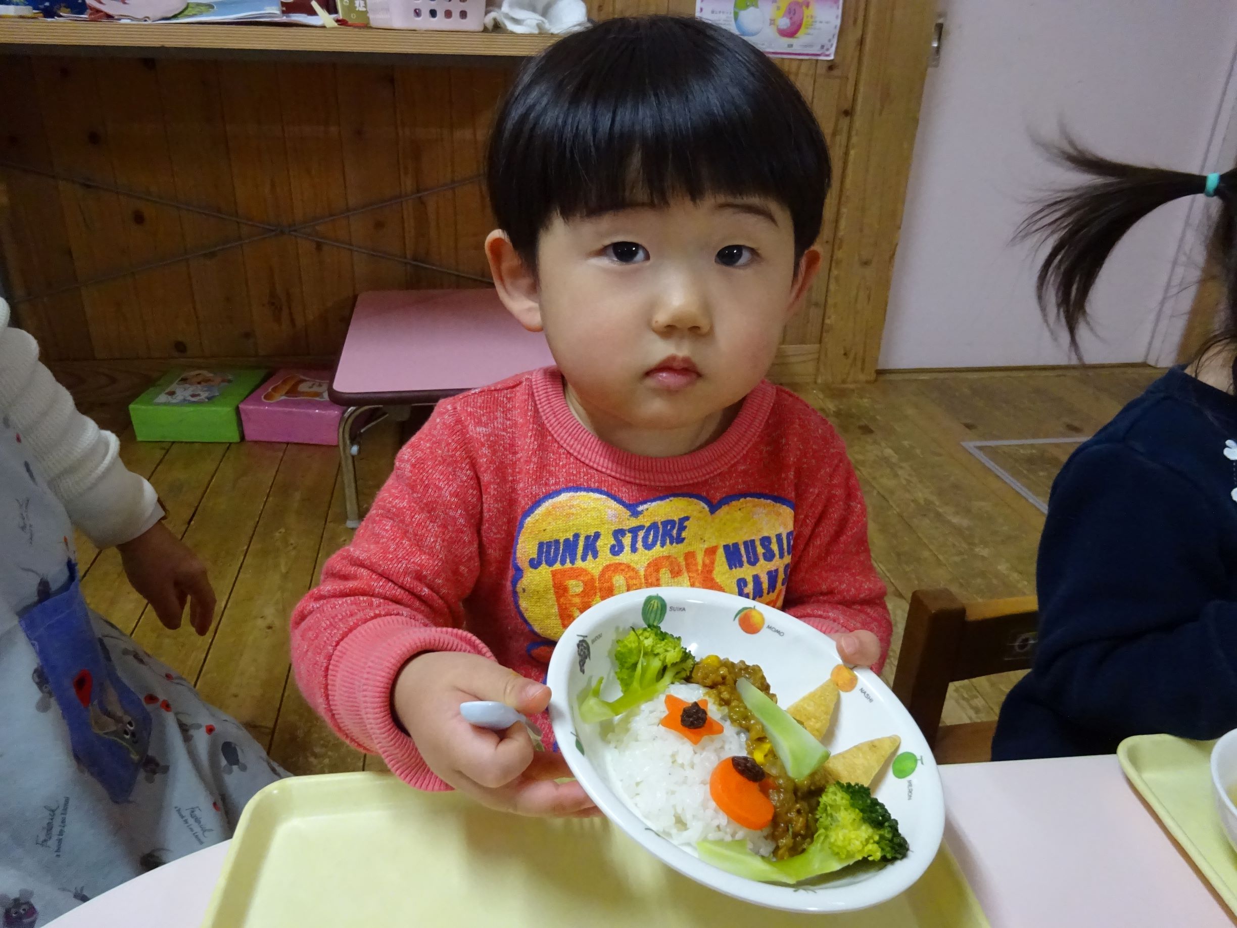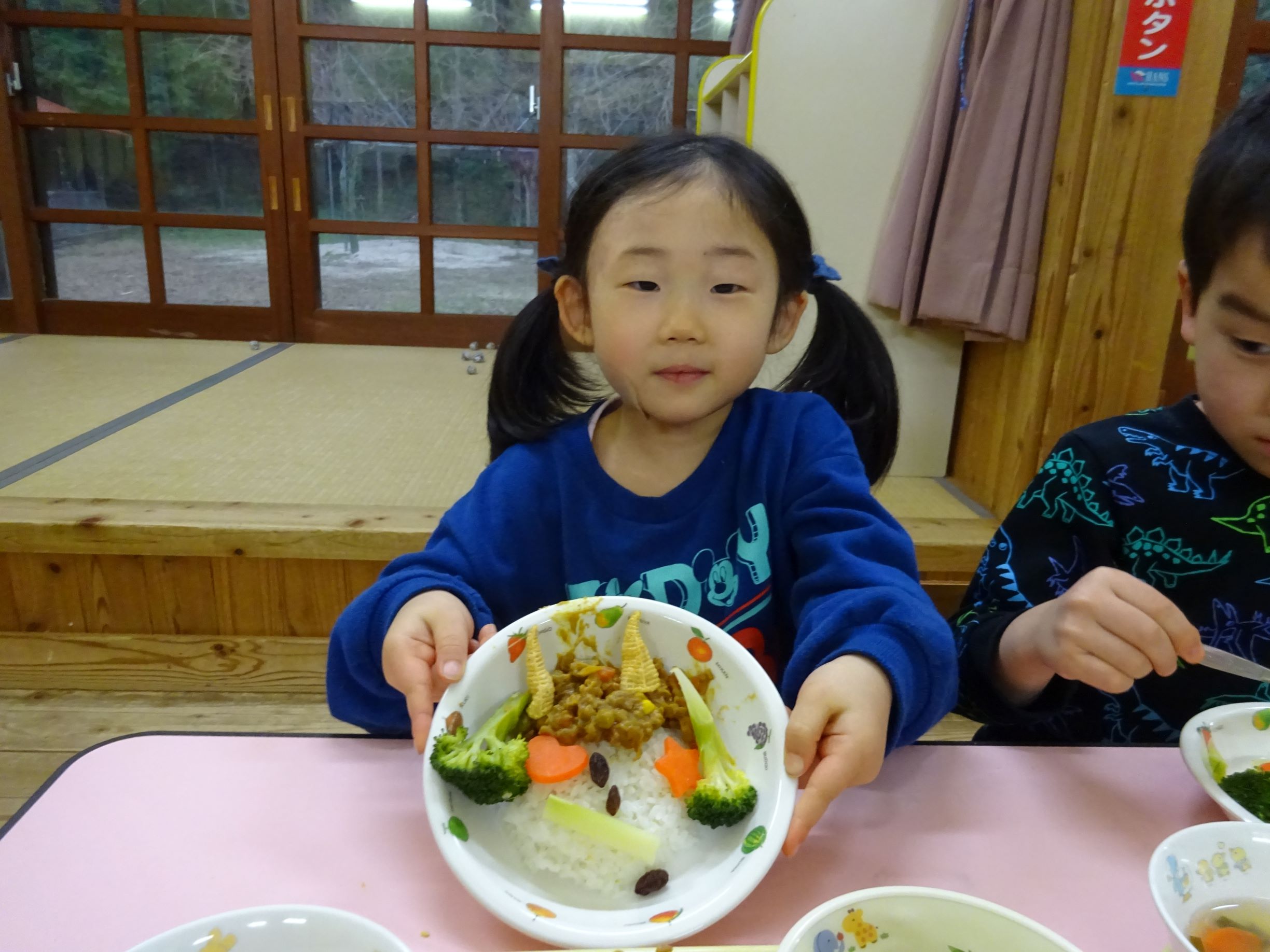 ゆめほし組 給食は鬼っ子ご飯で自分で鬼の顔を作ります。