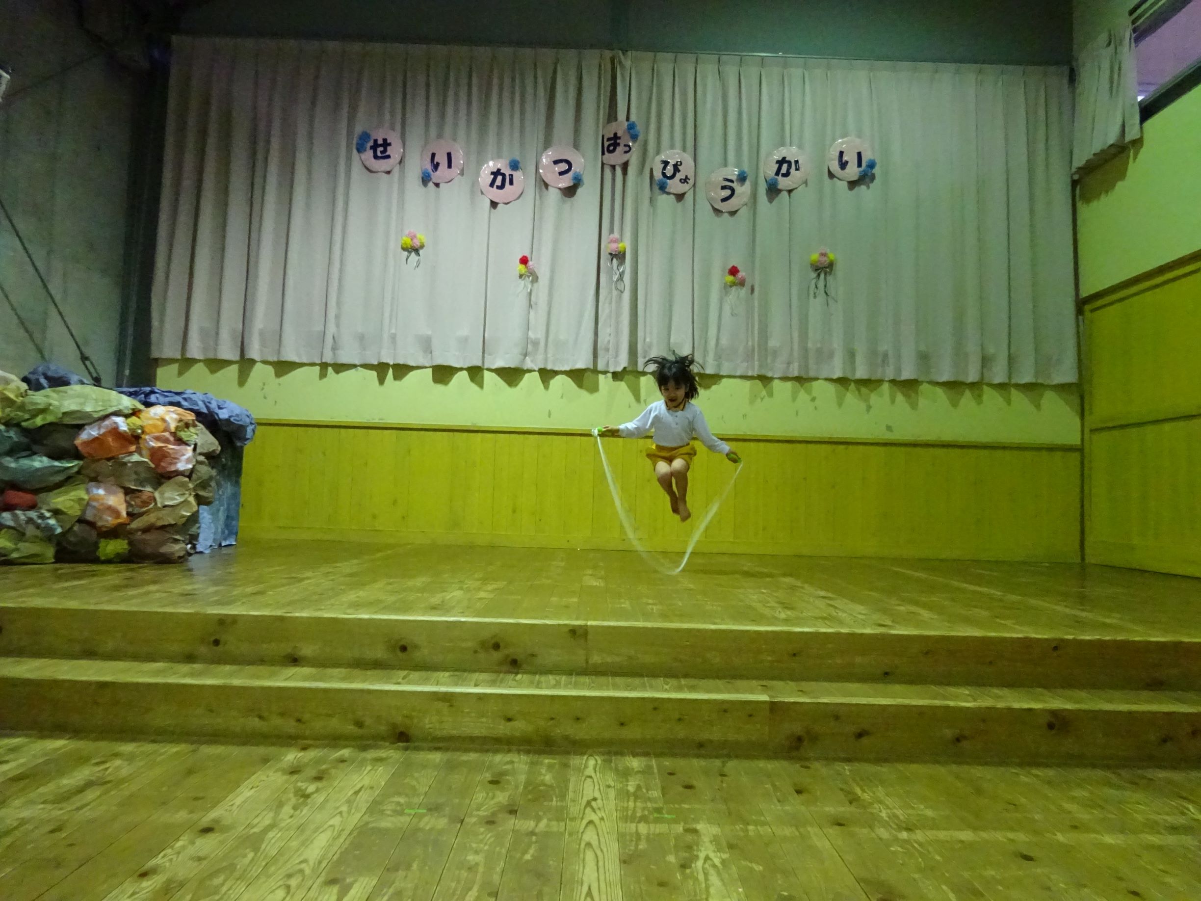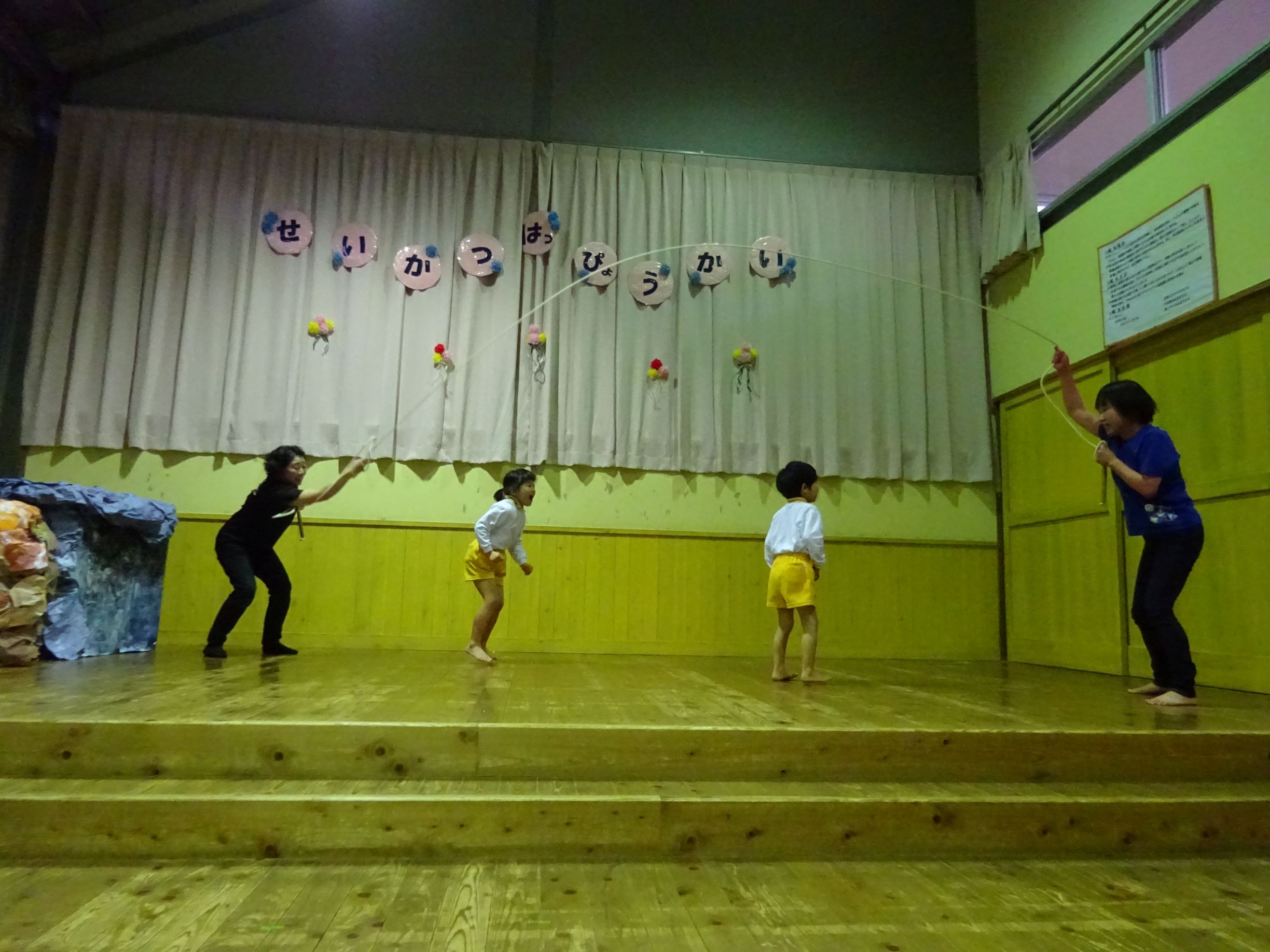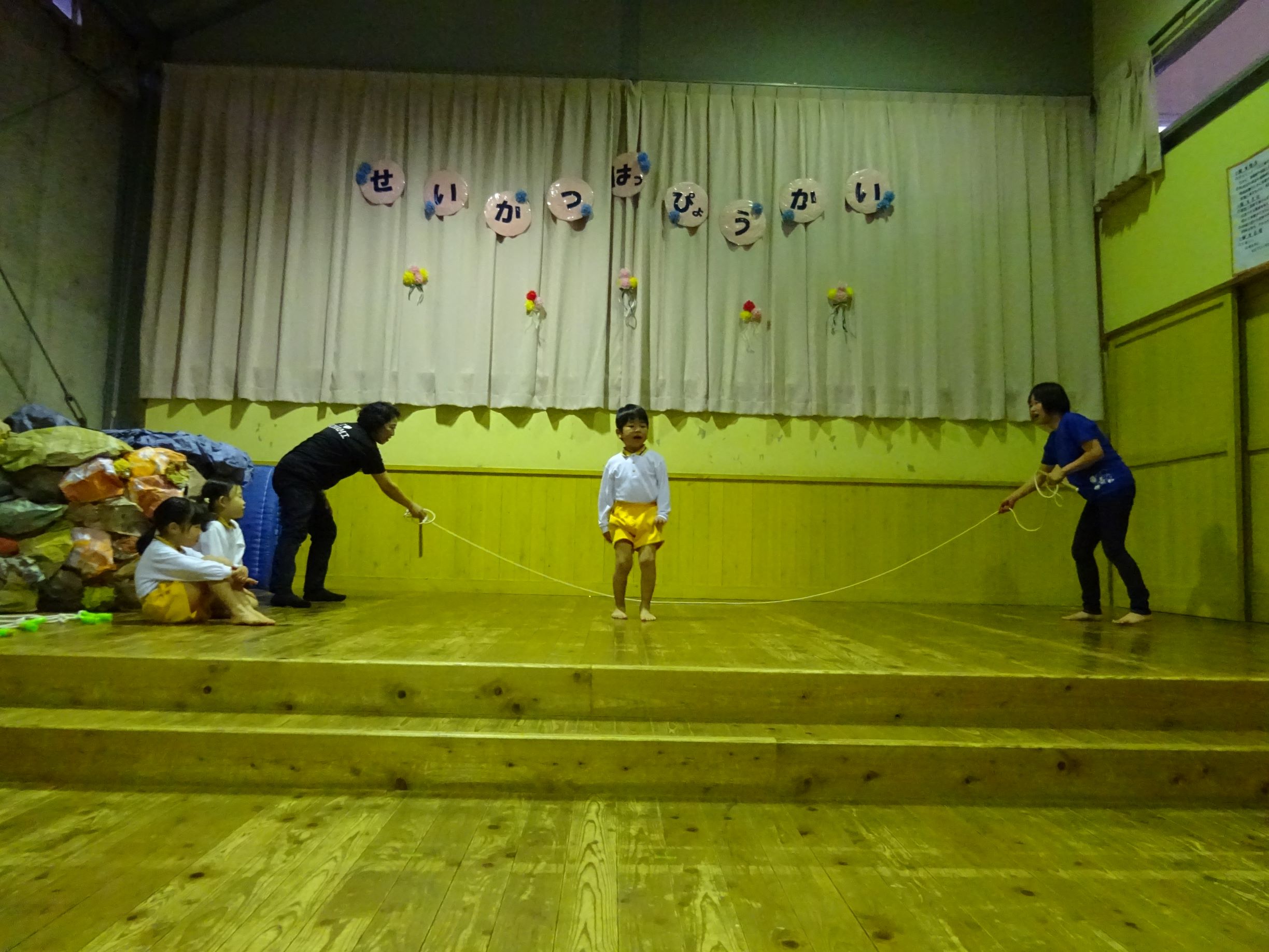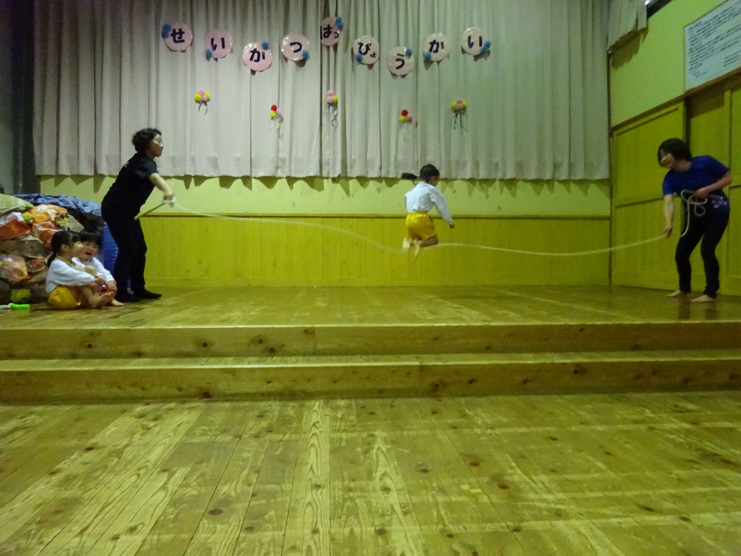 泣き止んで、長縄をしました