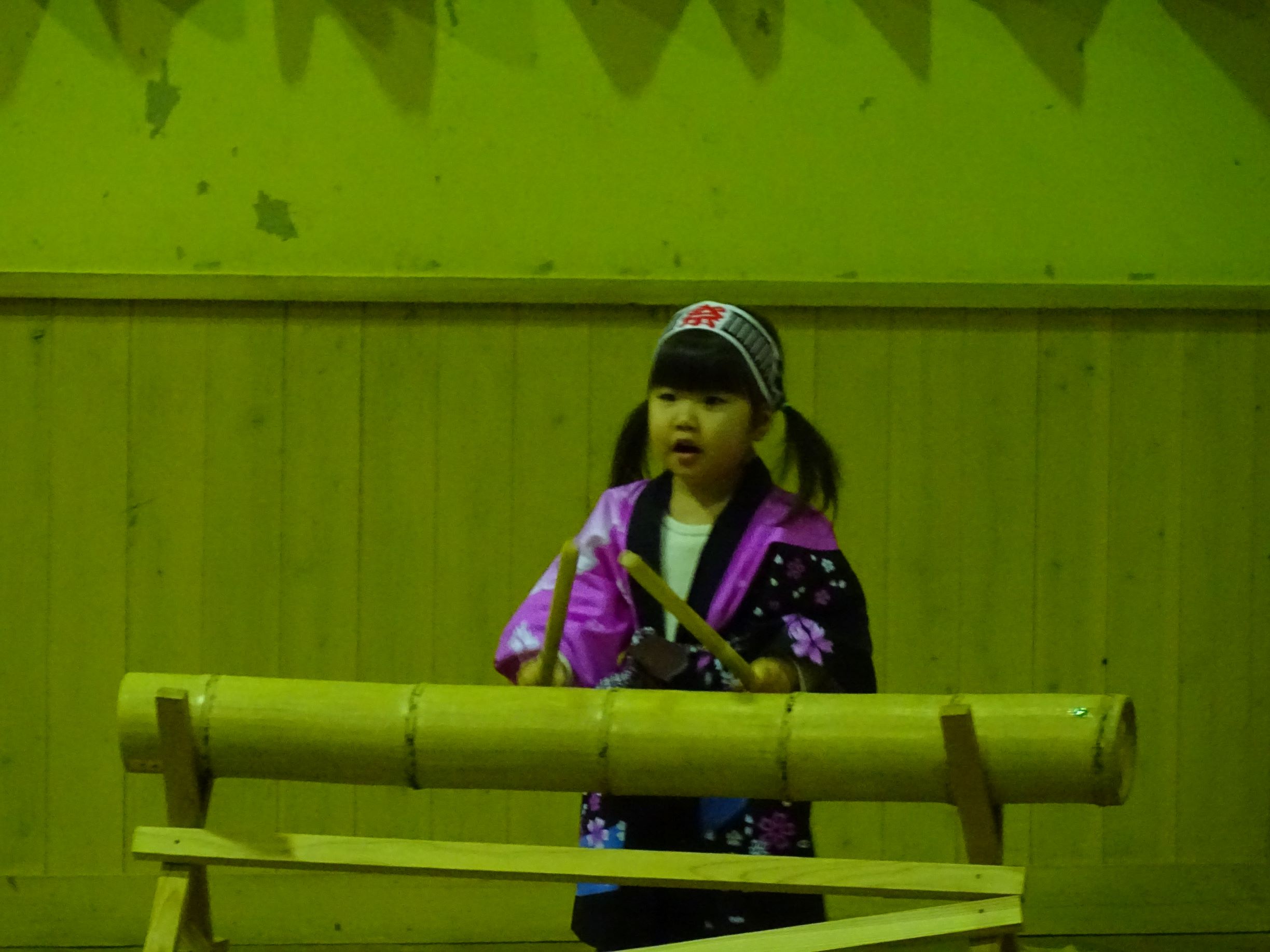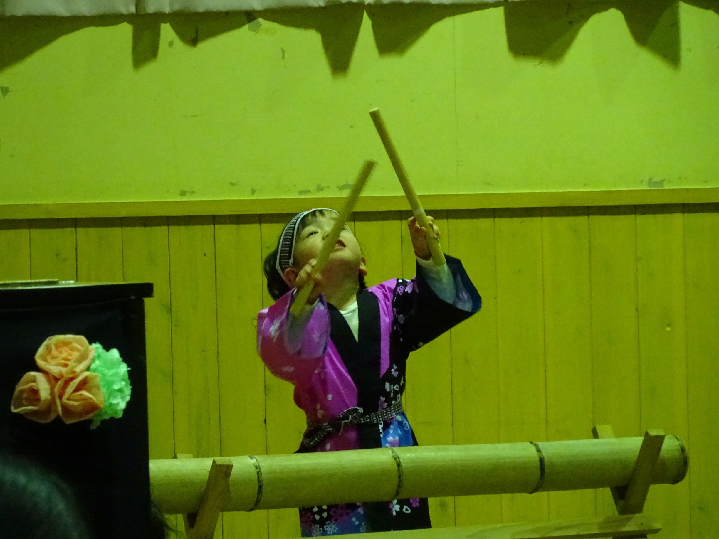 2,3歳児の 憧れ 真似っこ 竹太鼓
