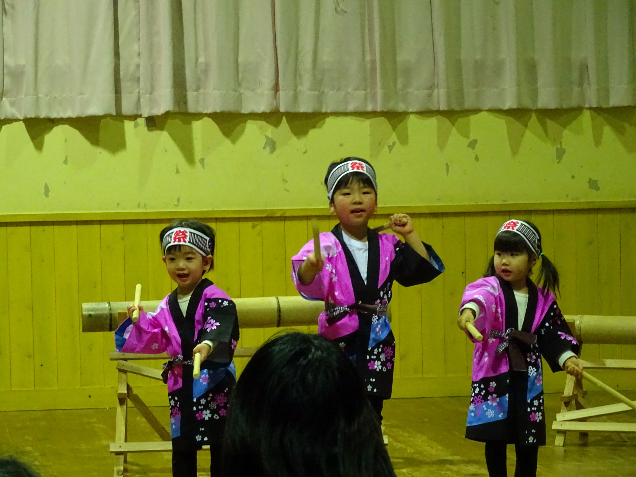 歌あり、体操あり、合奏、銭太鼓に竹太鼓…と盛り沢山の内容で、保護者の方も職員も、子ども達の頑張る姿に胸が熱くなりました。