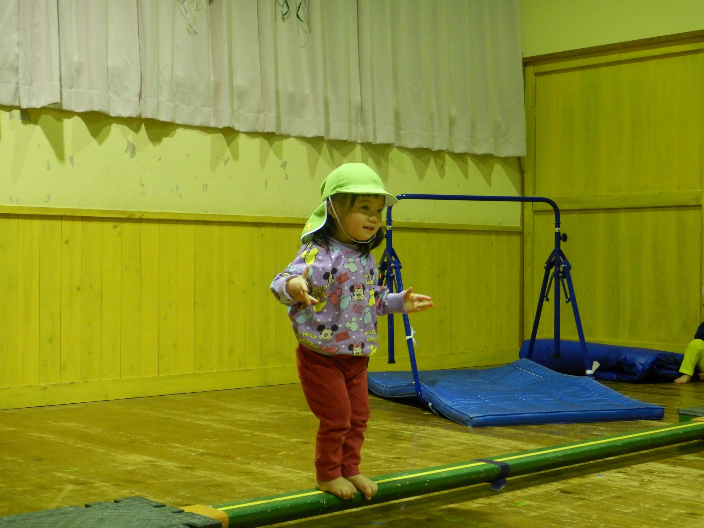 一本橋は慎重に歩き進める中にも、カニのイメージをもって楽しくすすみます