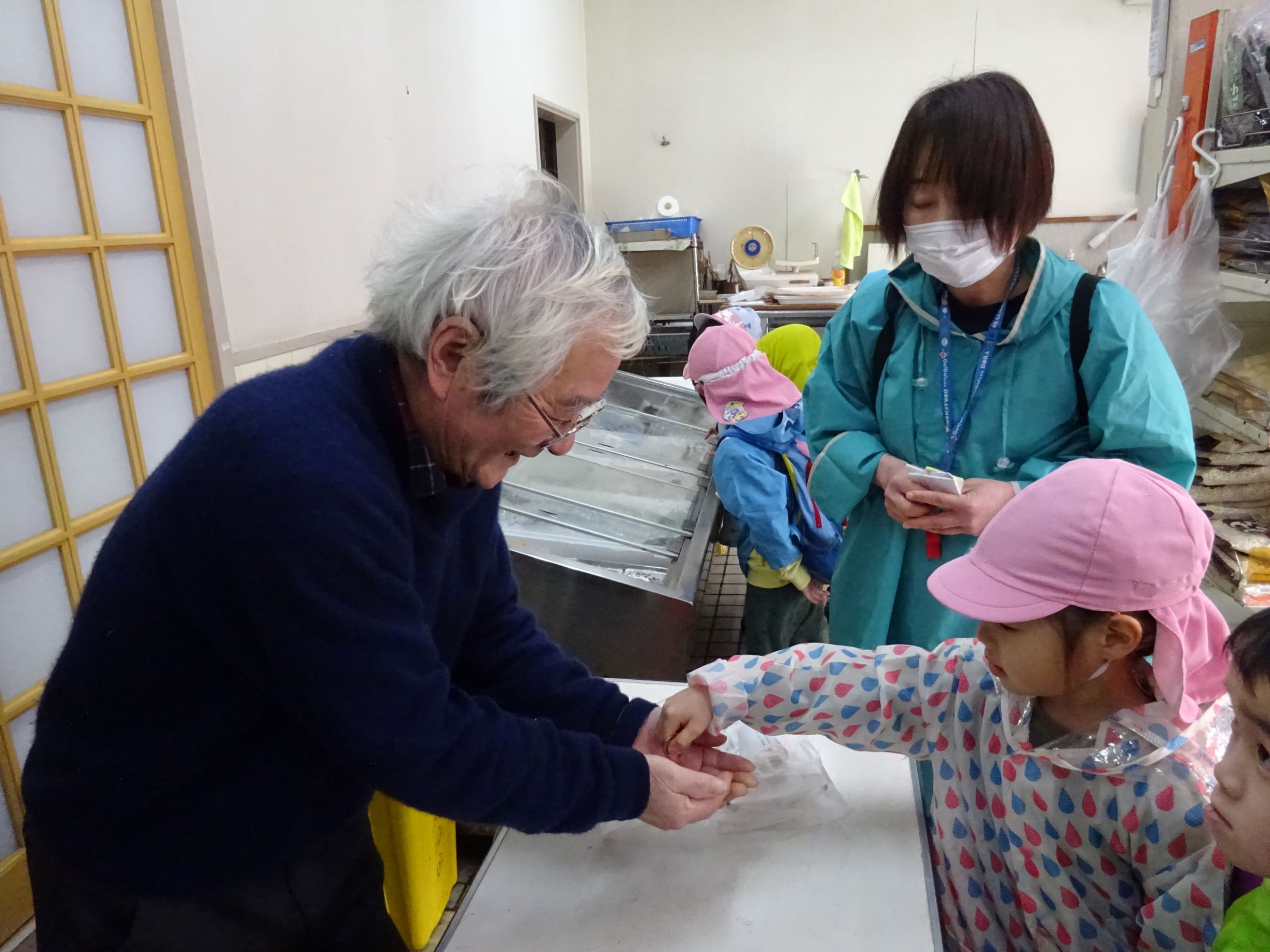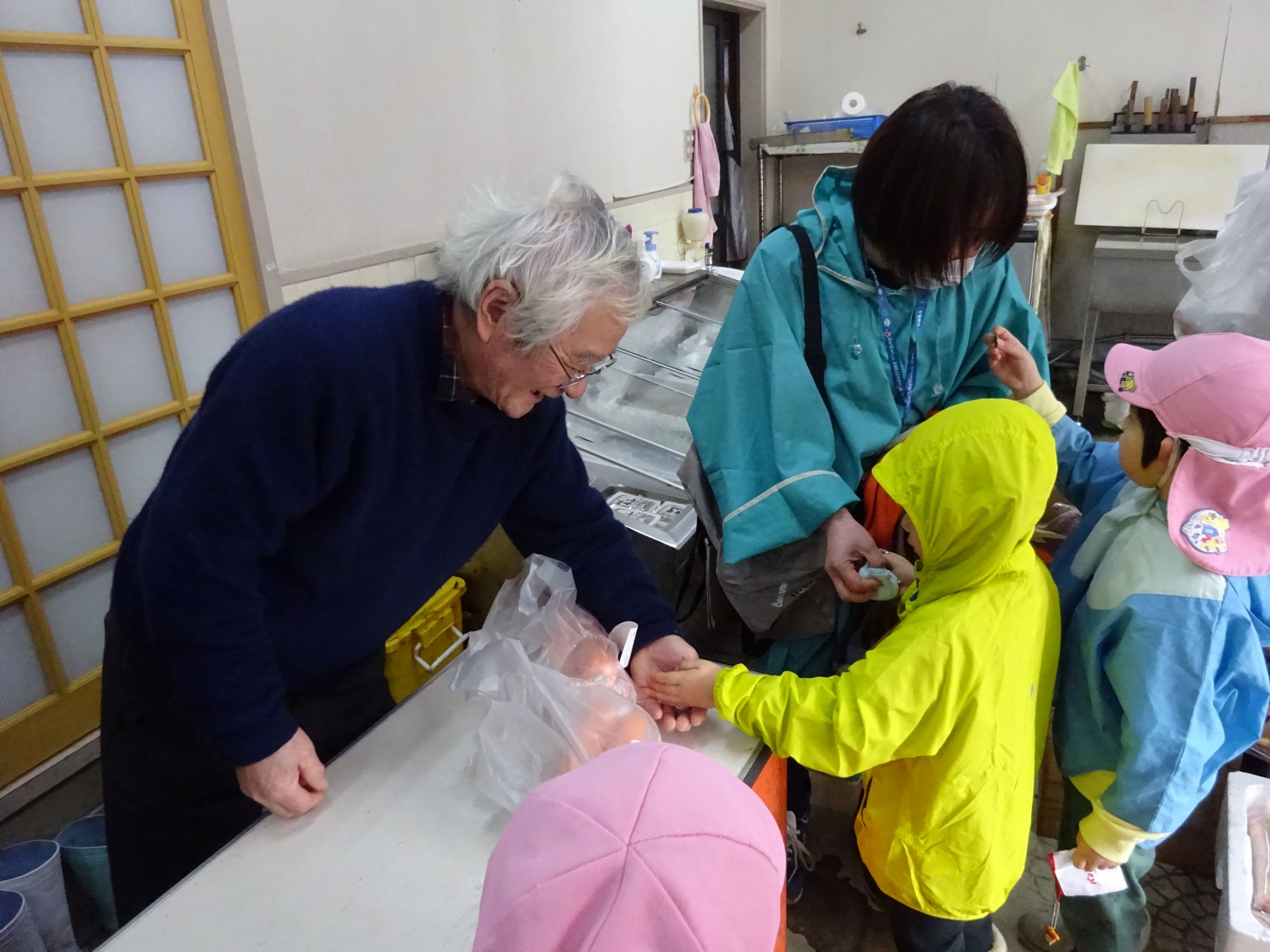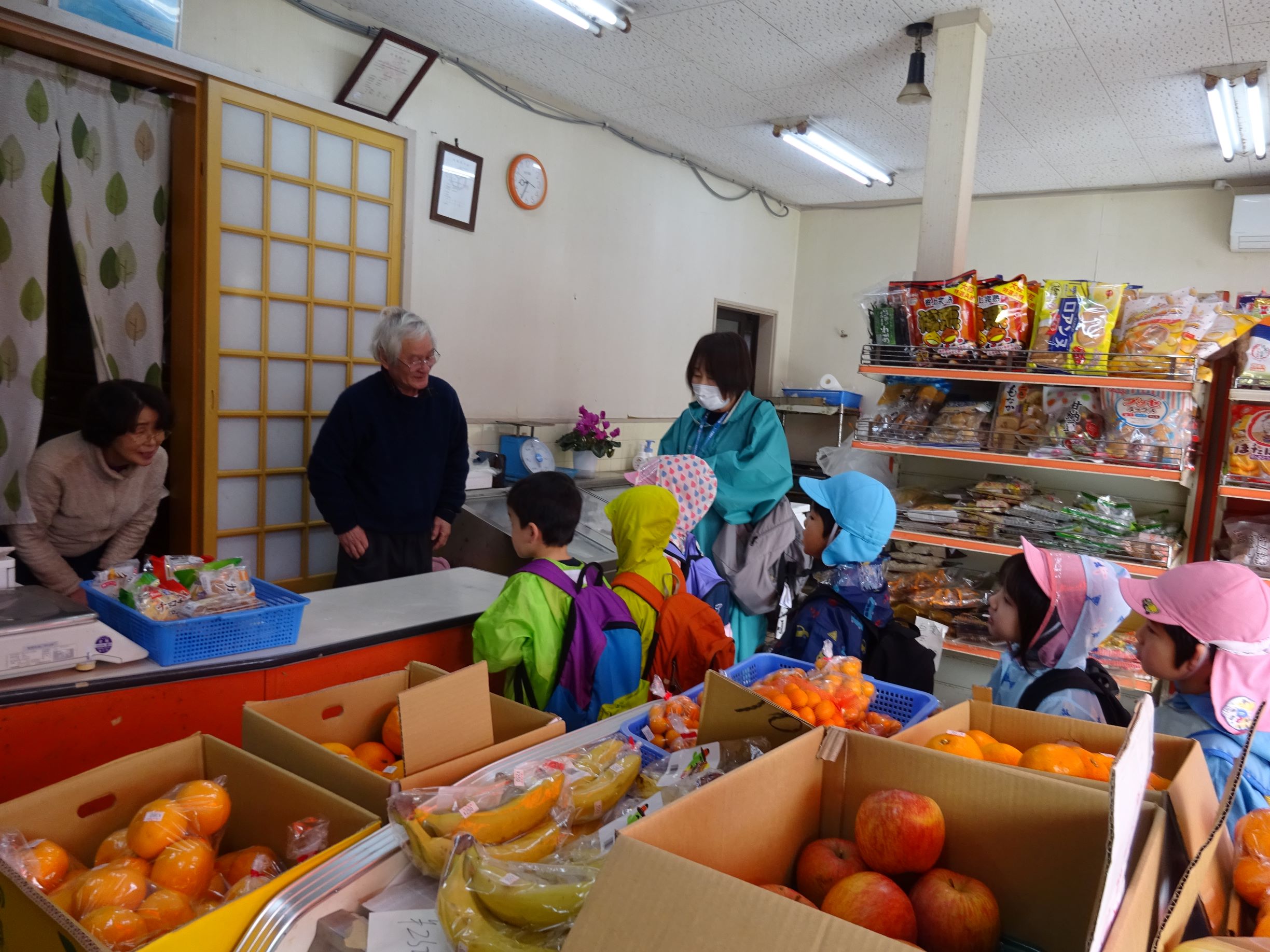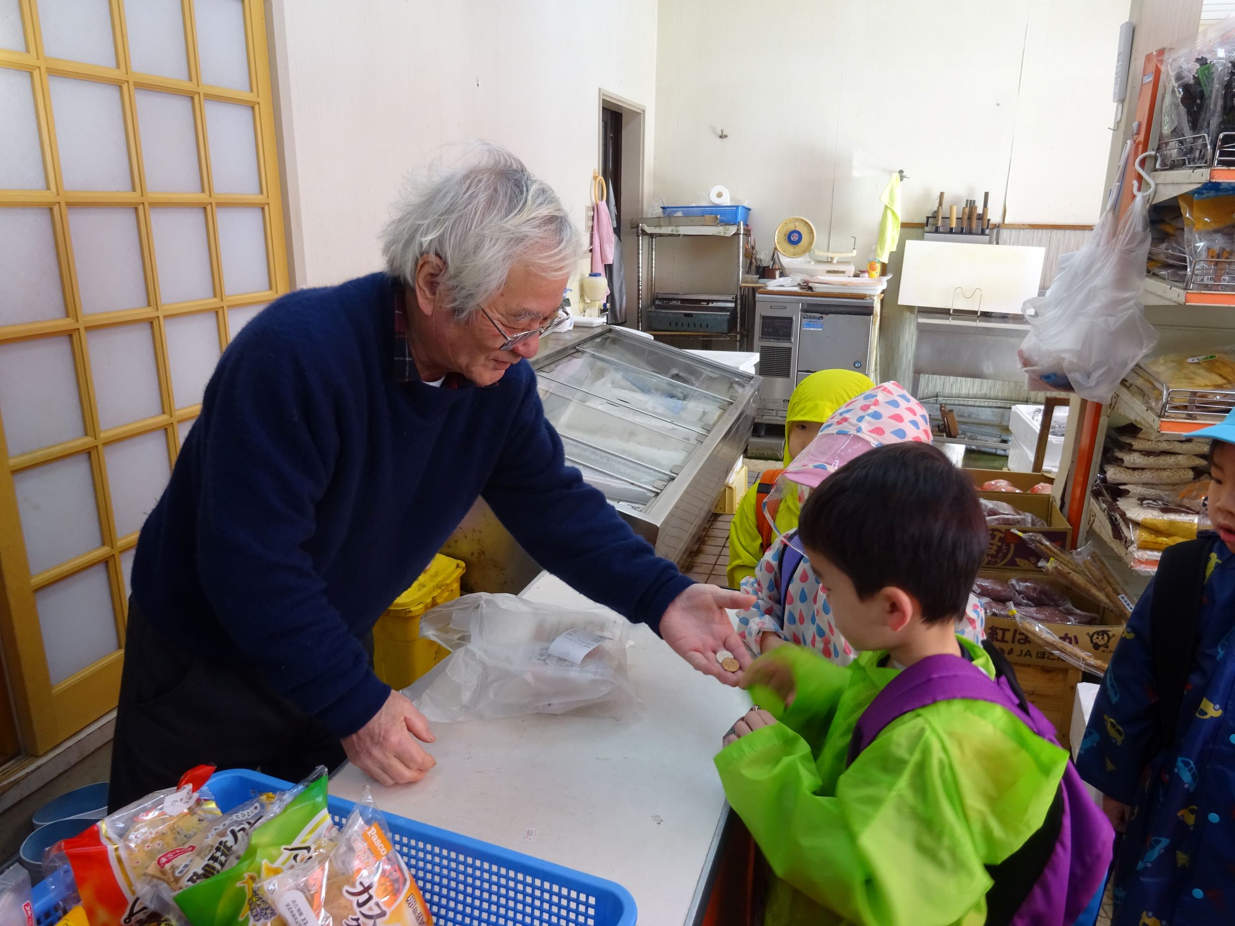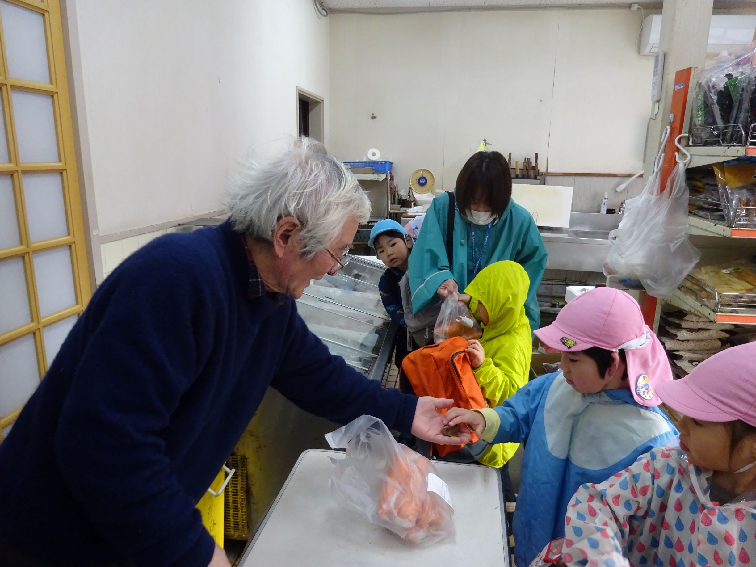 明日はおでんの日。楽しみにしていた子ども達でしたが、給食室の先生から「おでんの具材がなくて・・・買って来てくれない?」とお願いをされました。おでんの具材って何だろう?何を買って来ればよいかな?などを皆で話し合い、買う物を決めました。3,4歳児は津森商店に行きました。津森商店のご夫婦が温かく迎えて下さり、子ども達も安心して買い物が出来ました。5歳児はバスを乗り継いで、まるごうに行きました。自分の買う物を「あっ、あった!」と言って見つけ、嬉しそうにかごに入れていました。買って帰った物は先生方に見てもらい、「ちゃんと買えたね、ありがとう」「皆すごいね」と言ってもらい、とても嬉しそうでした。明日のおでんが楽しみです。