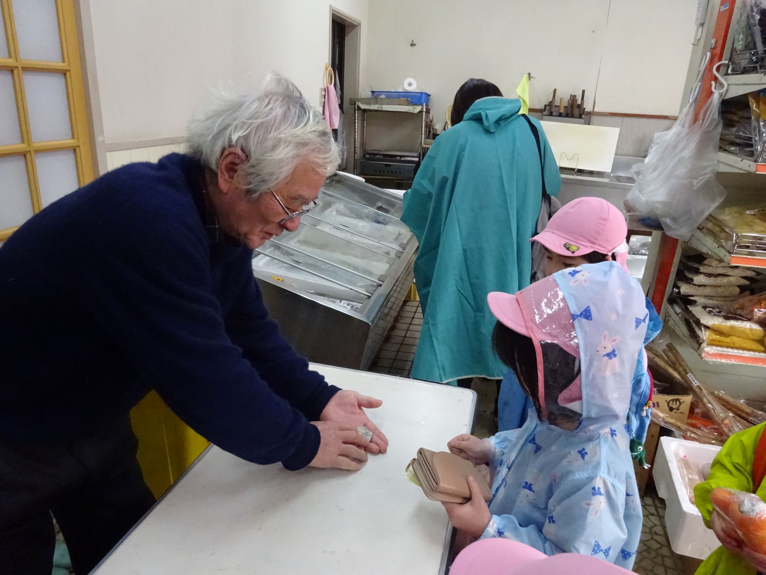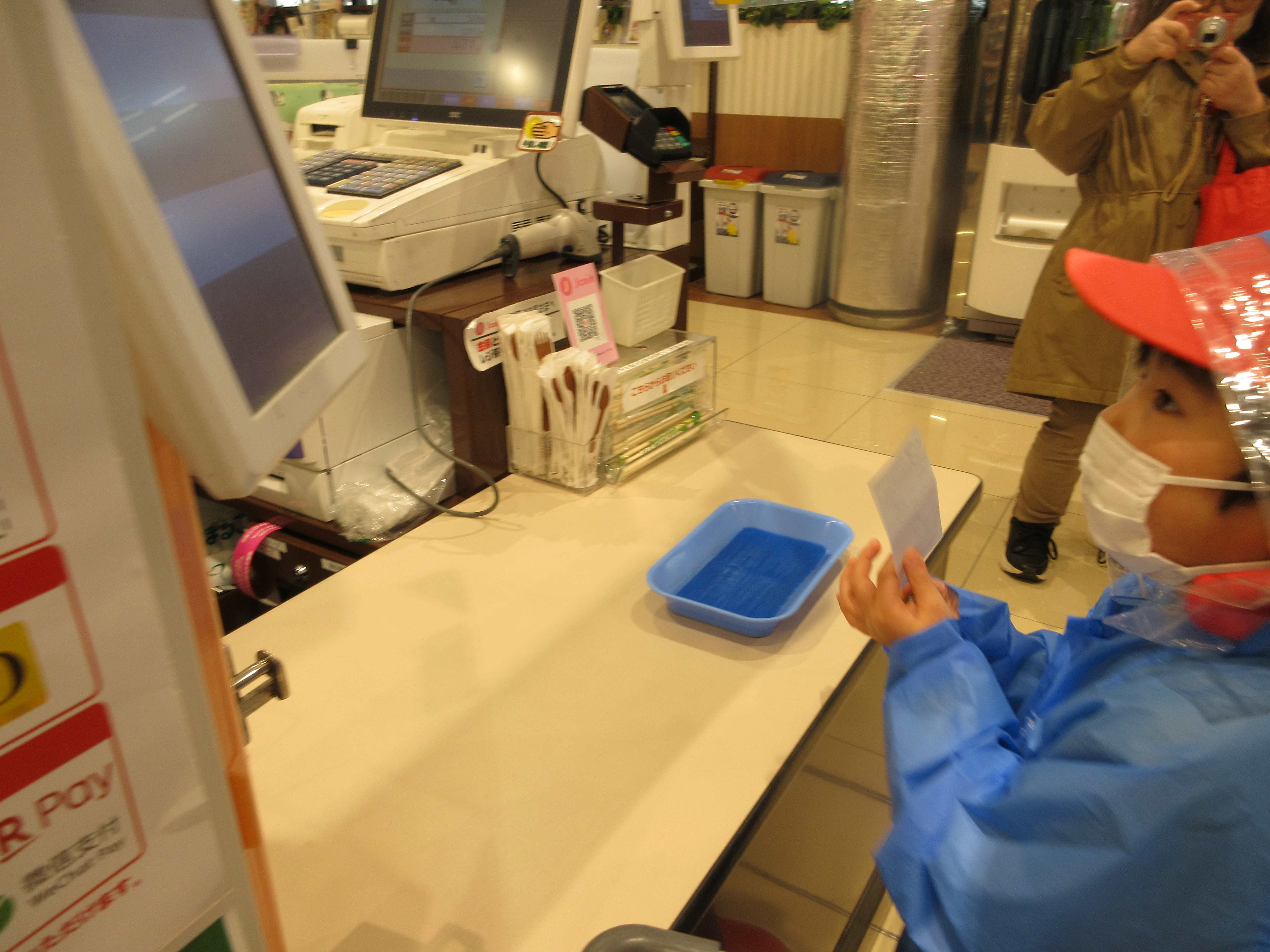 お店の人にお金を渡します