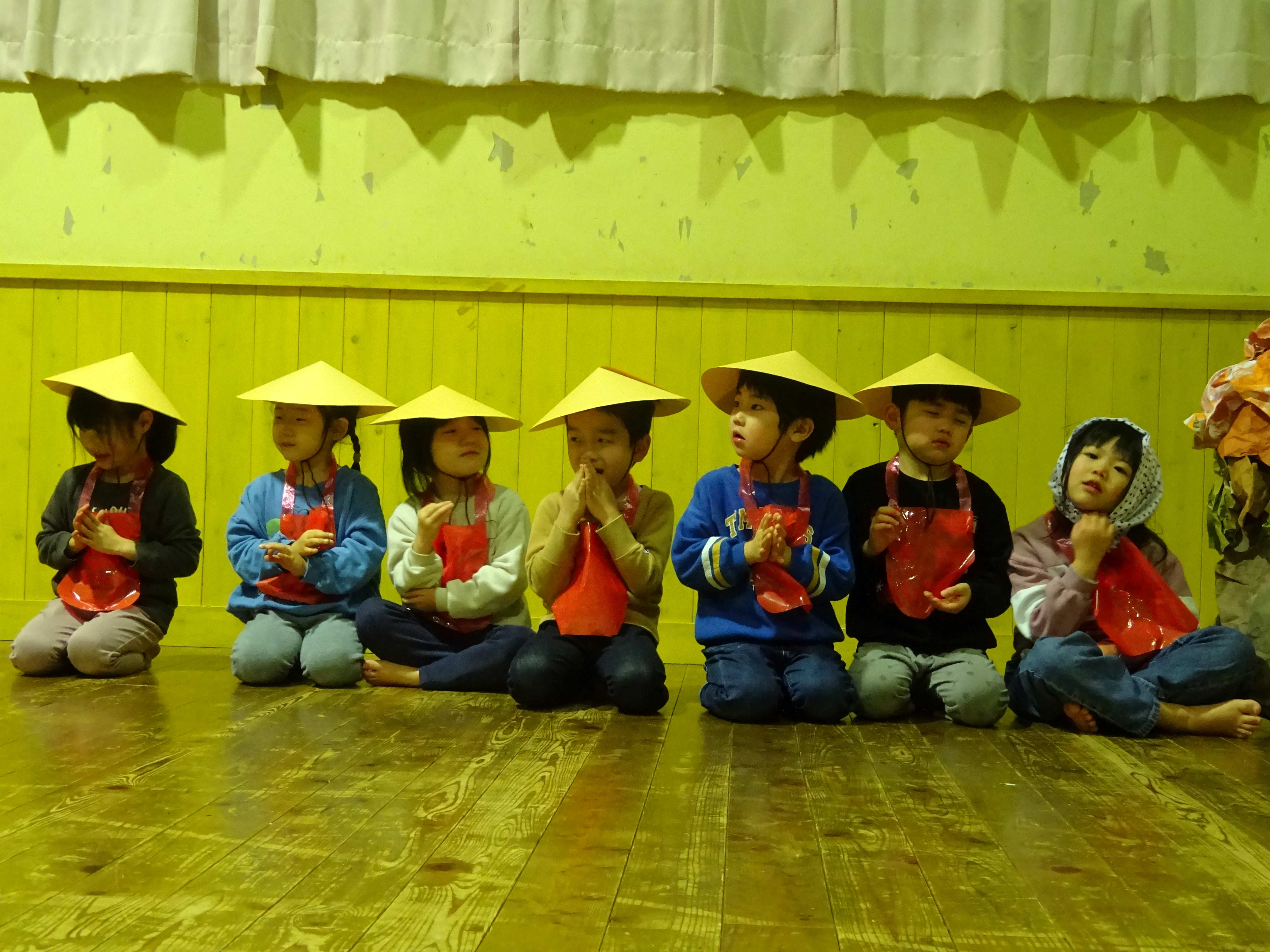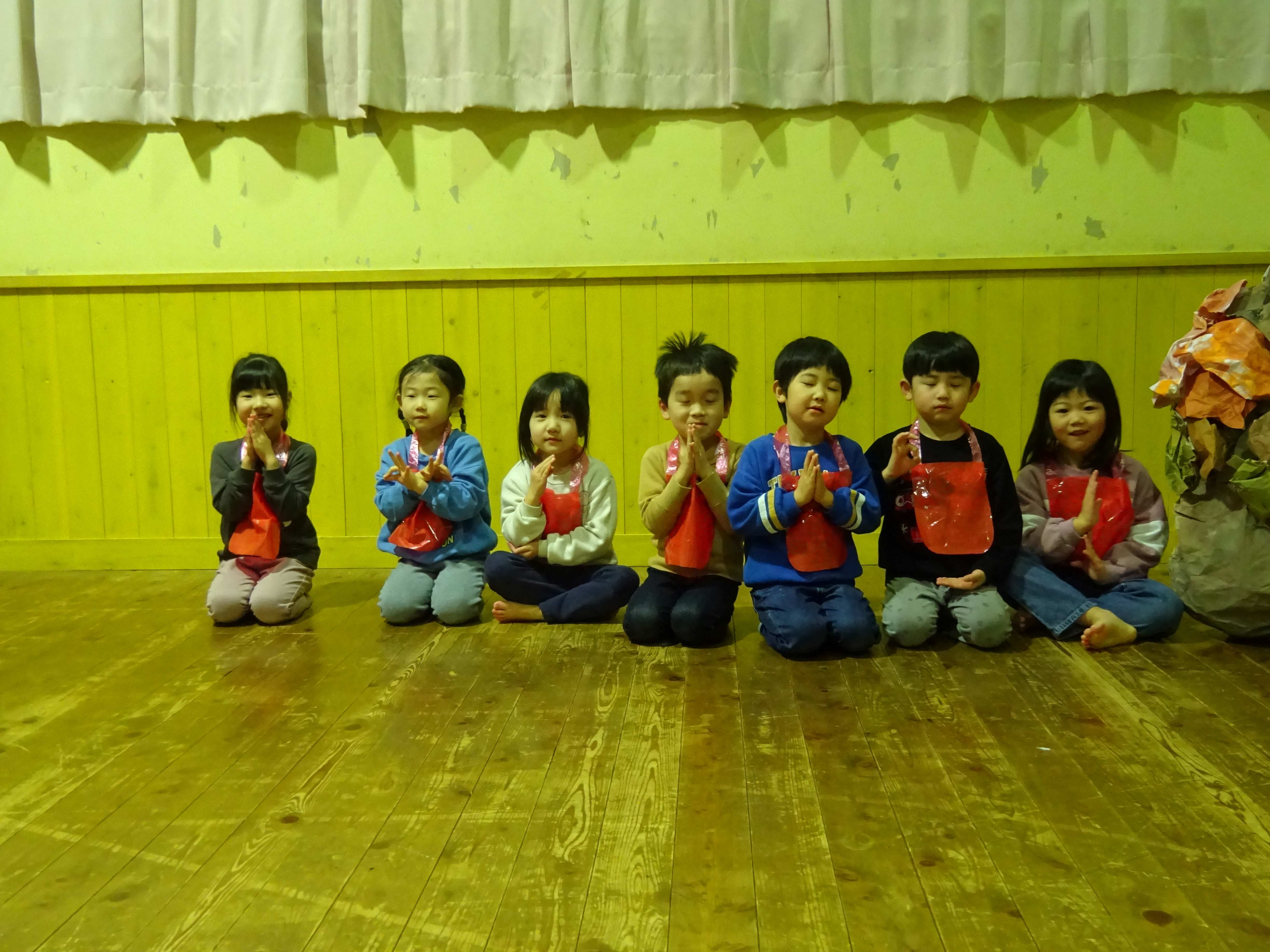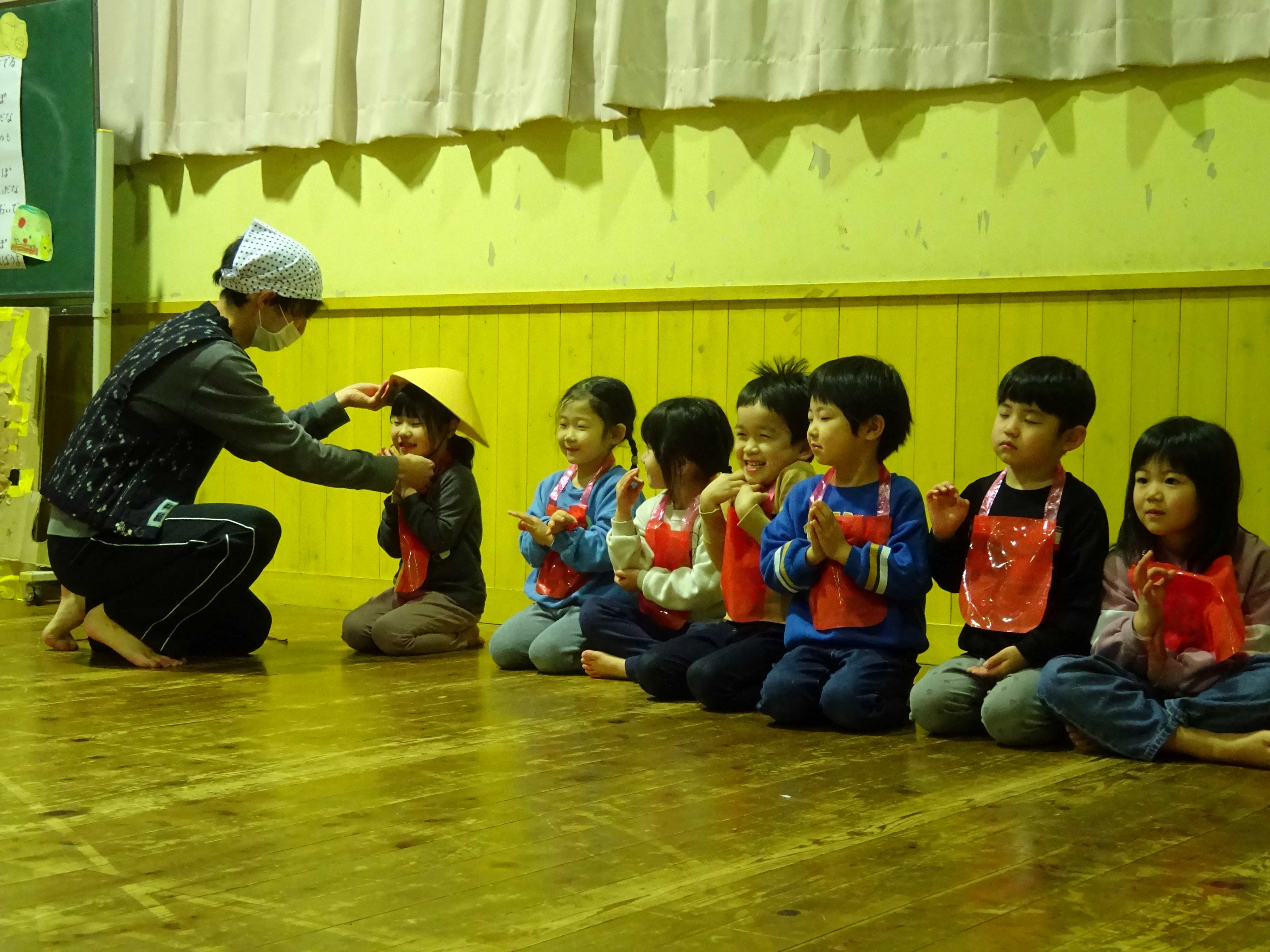お楽しみ会では、幼児組がお地蔵さんになって登場した「かさじそう」の劇や、皆で踊りを踊って楽しみました。