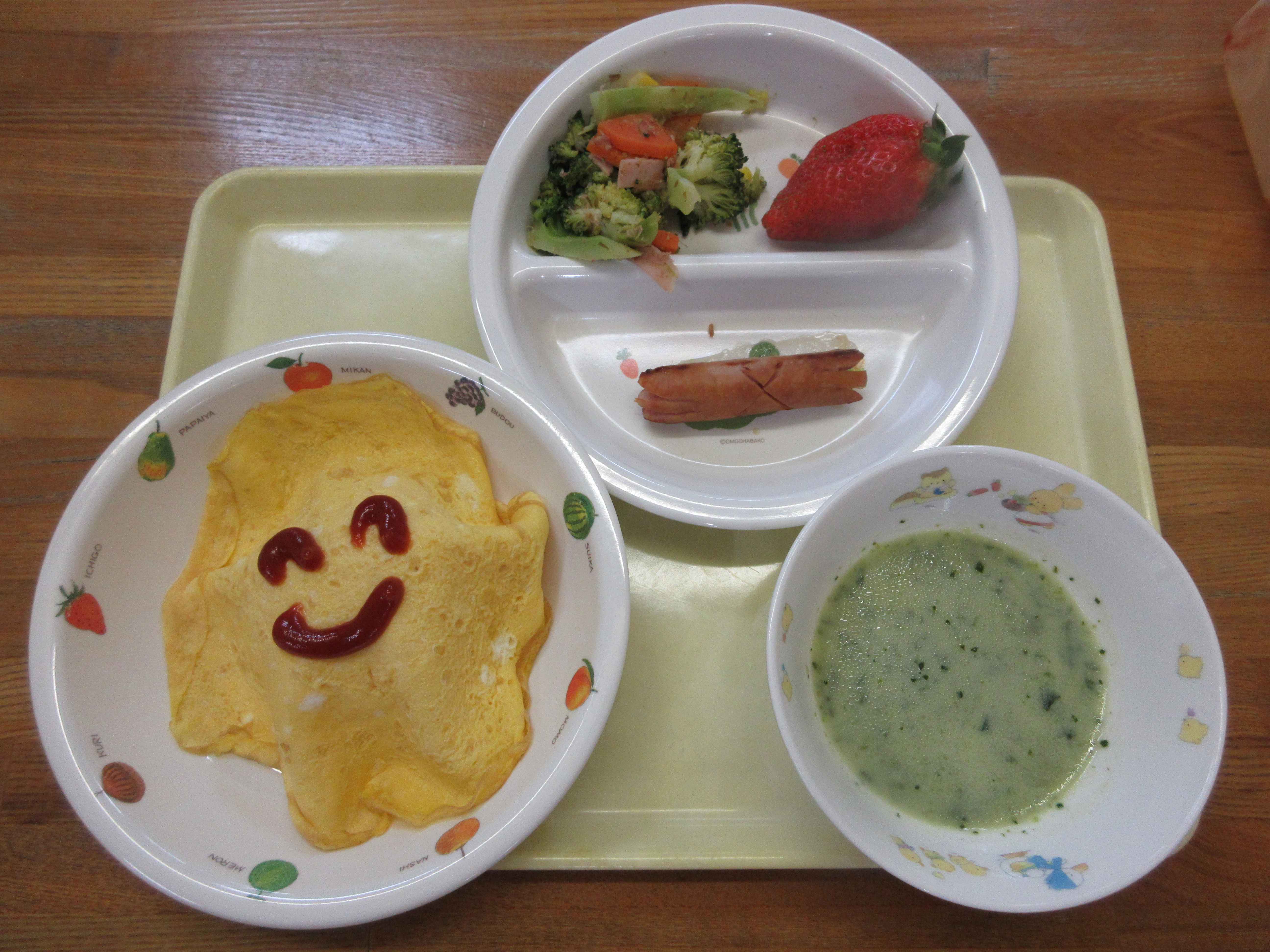 給食は、にこにこオムライスなど、誕生日メニューでした。