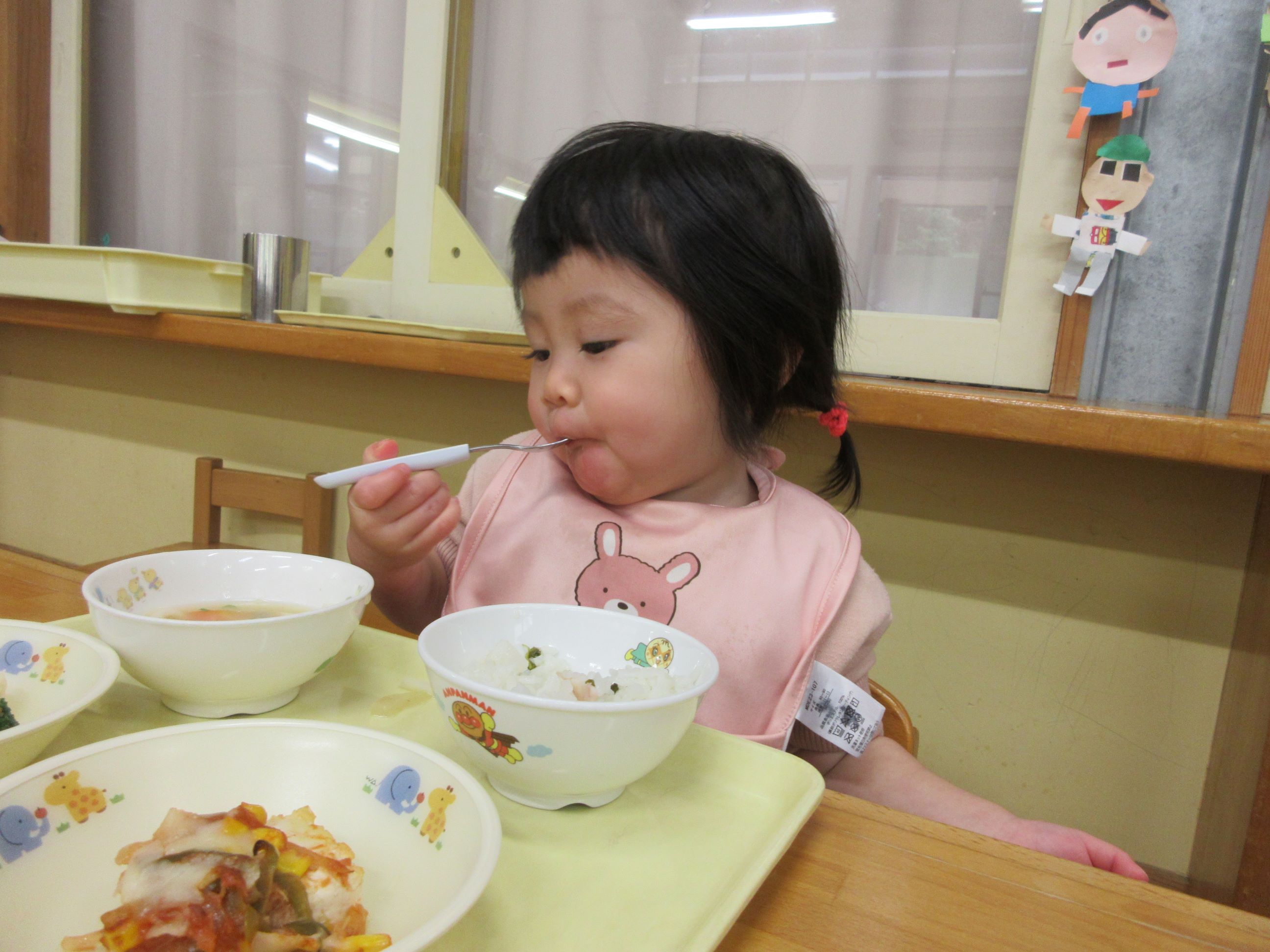 給食で食べましたが、どの子も1番に食べ始めました。自分達が作ったご飯が楽しみな様子が伝わってきました。