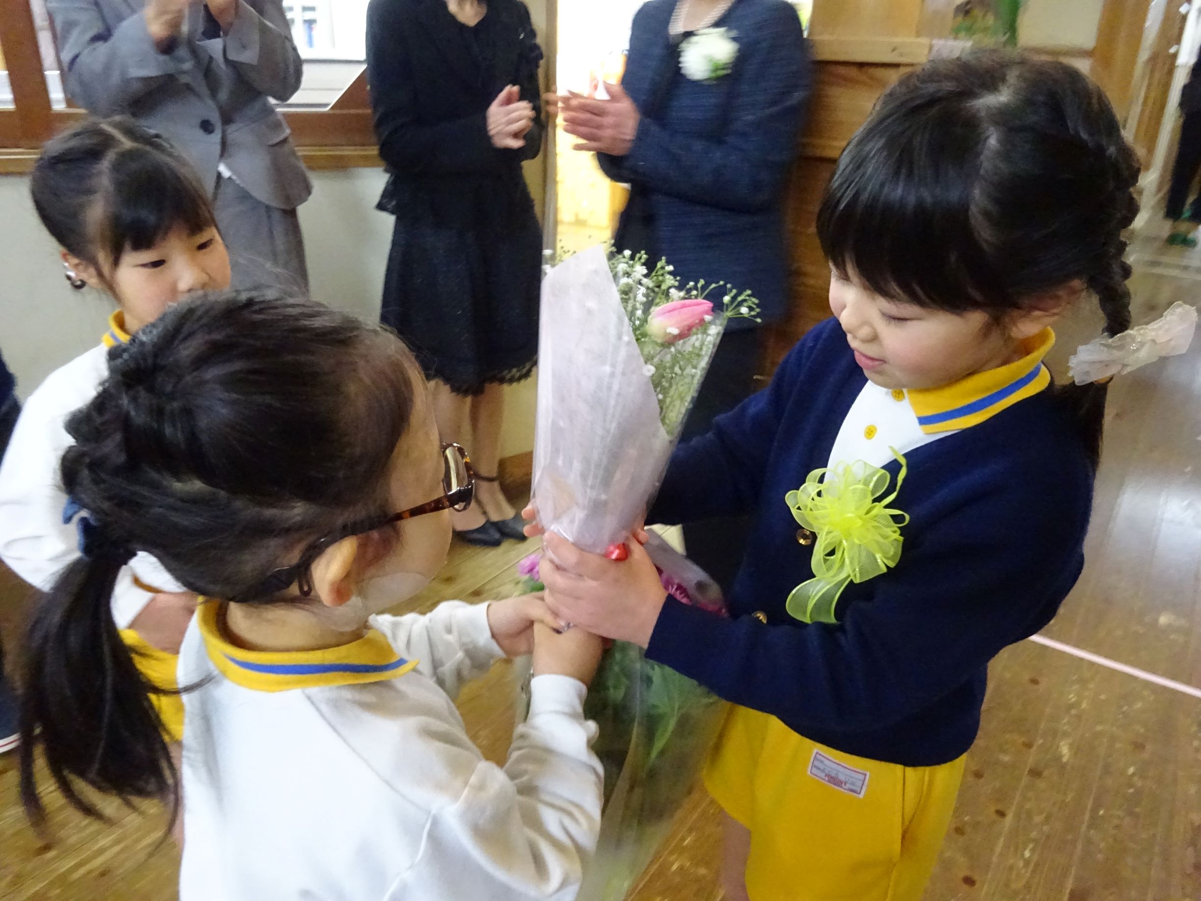 お見送りでは、4歳児さんが抱きつく場面があり、仲良しだったことが伝わってきました。