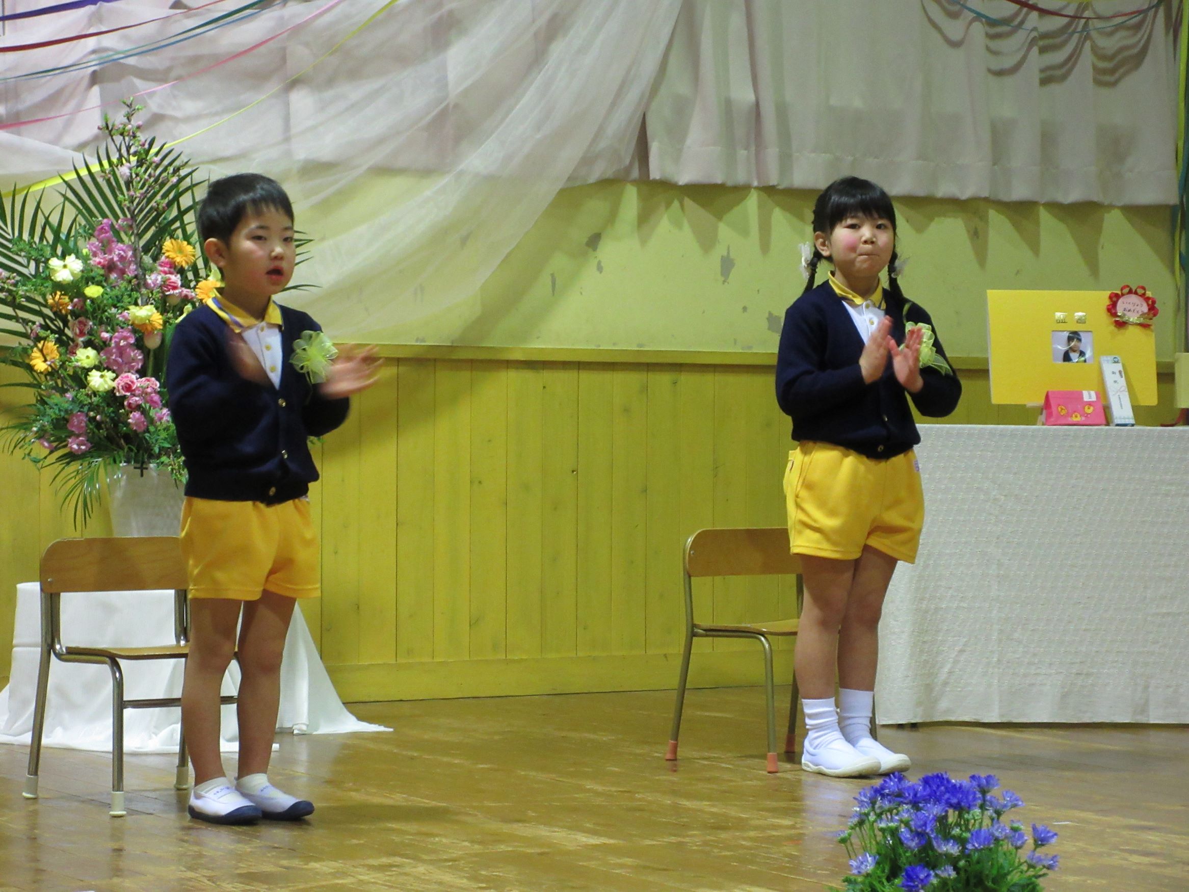 在所児は歌と言葉でお祝いしました。