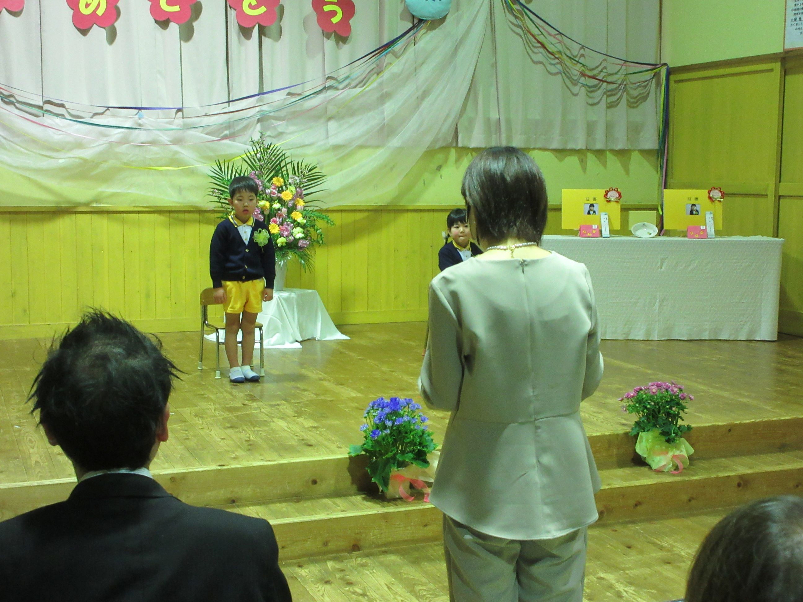 今年度の育了児は2名でしたが、野波保育所らしい、心温かな式となりました。