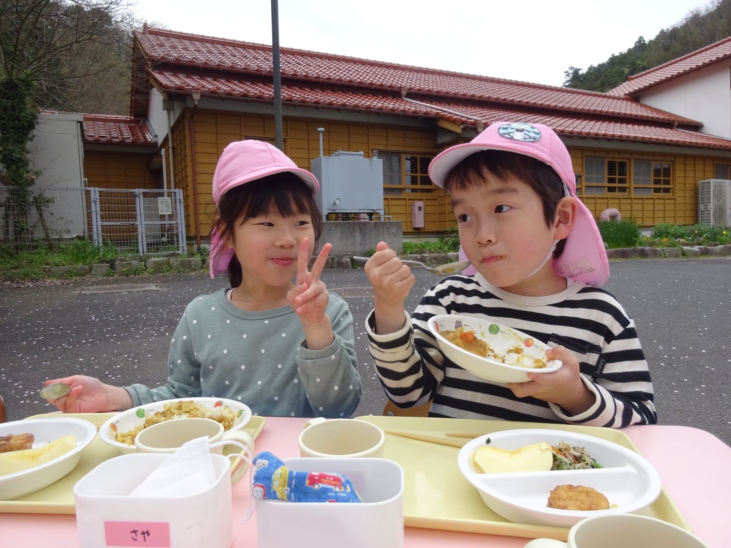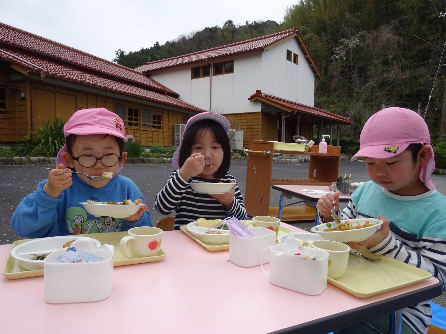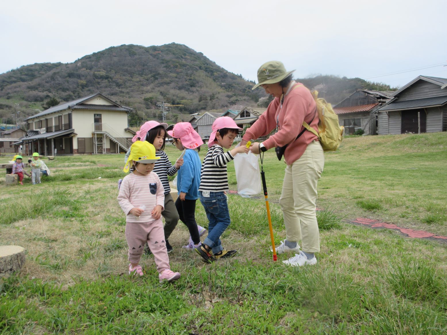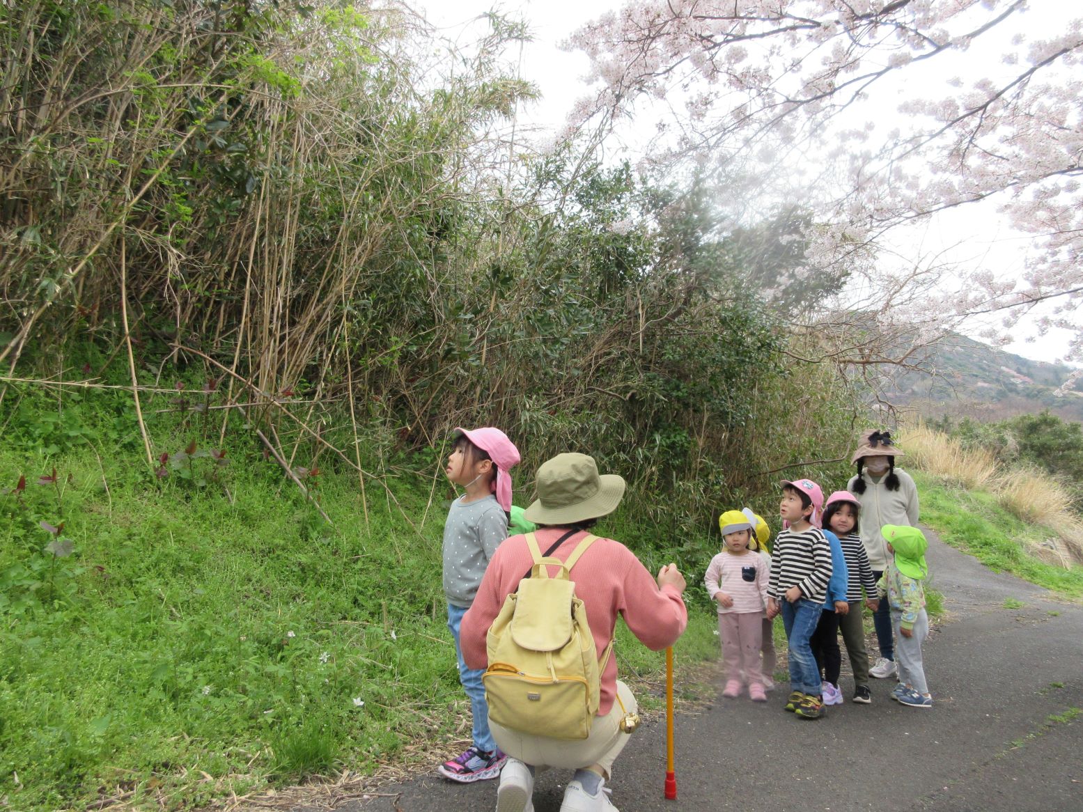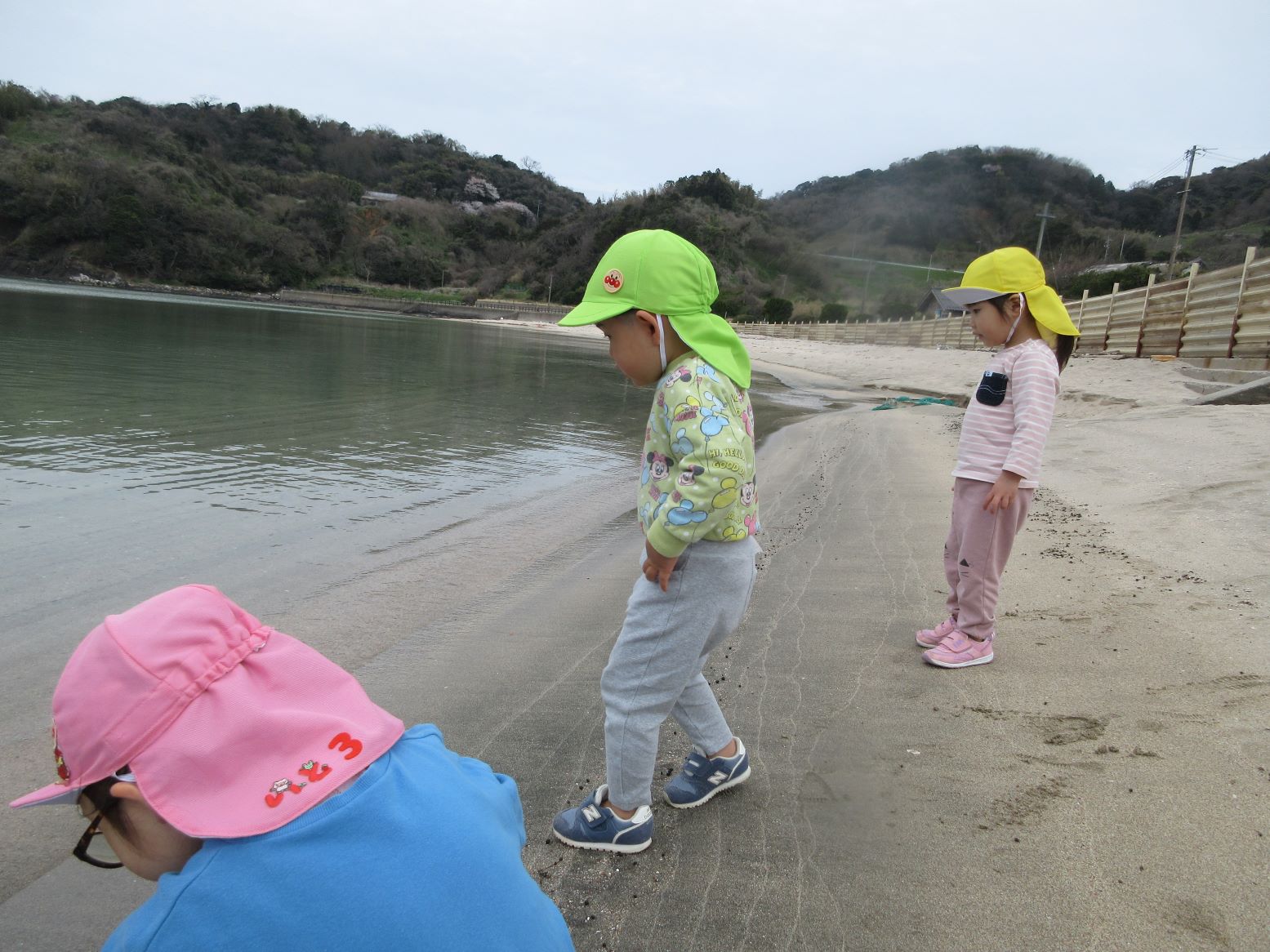 保育所の桜が見ごろを迎えました。今日は天気にも恵まれたので、小波の海まで散歩に出掛けました。道中に春のいいもの(桜、菜の花、野いちごの花、ダンゴムシ、テントウムシなど)をたくさん見つけました。現地で子ども達は貝殻を見つけ拾い集めて、大切にビニール袋に入れ持ち帰りました。そして保育士が何も言わなくても遊びながら海岸に落ちているゴミにも目が向き、ゴミ集めもして帰りました。帰って来たらおなかペコペコ‼桜の木の下で給食を食べました。子ども達にお話を聞いてみてくださいね。