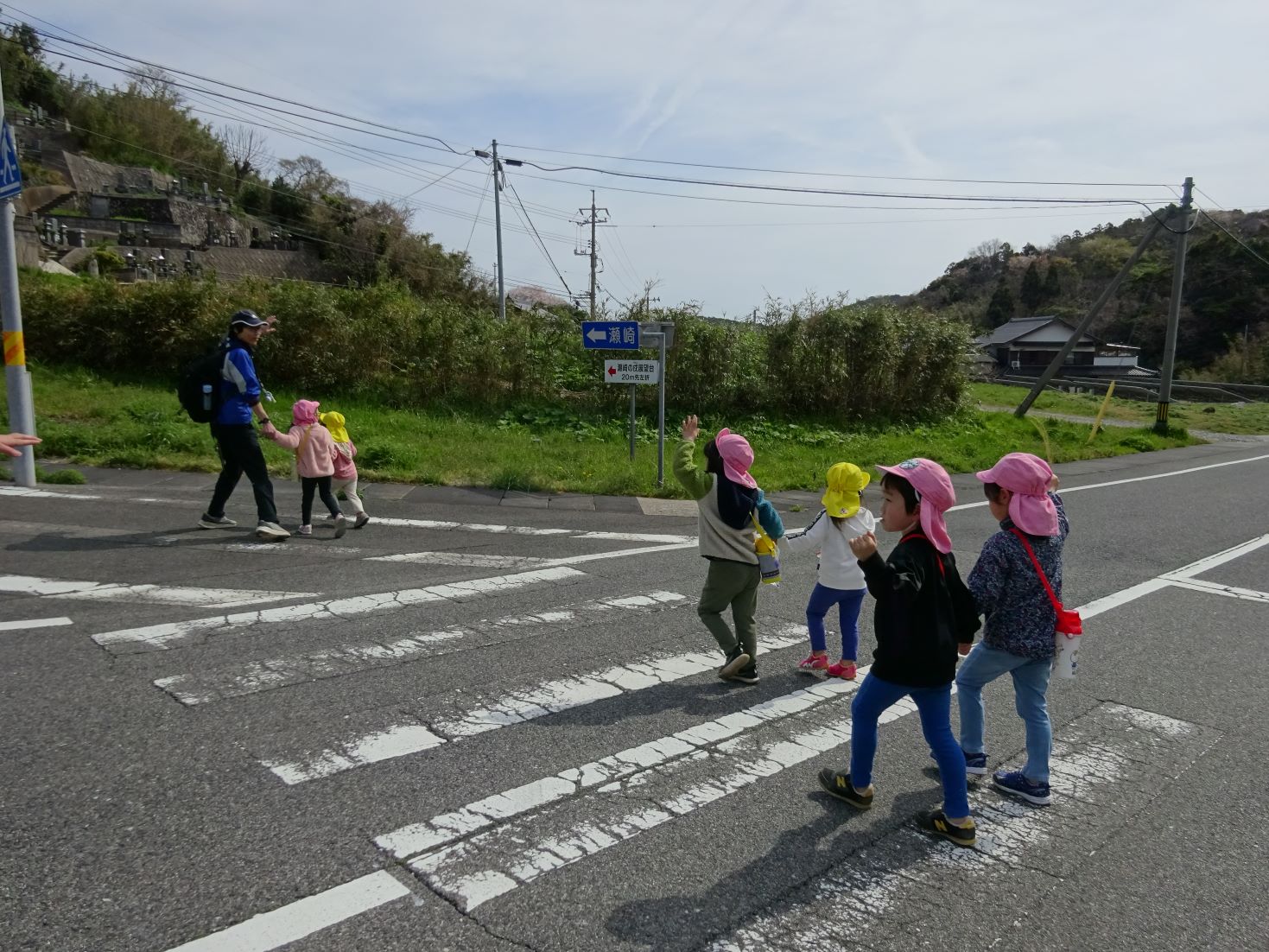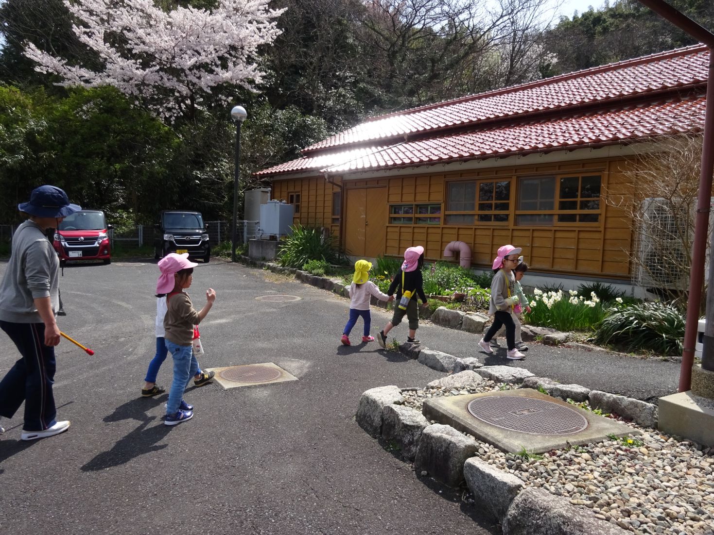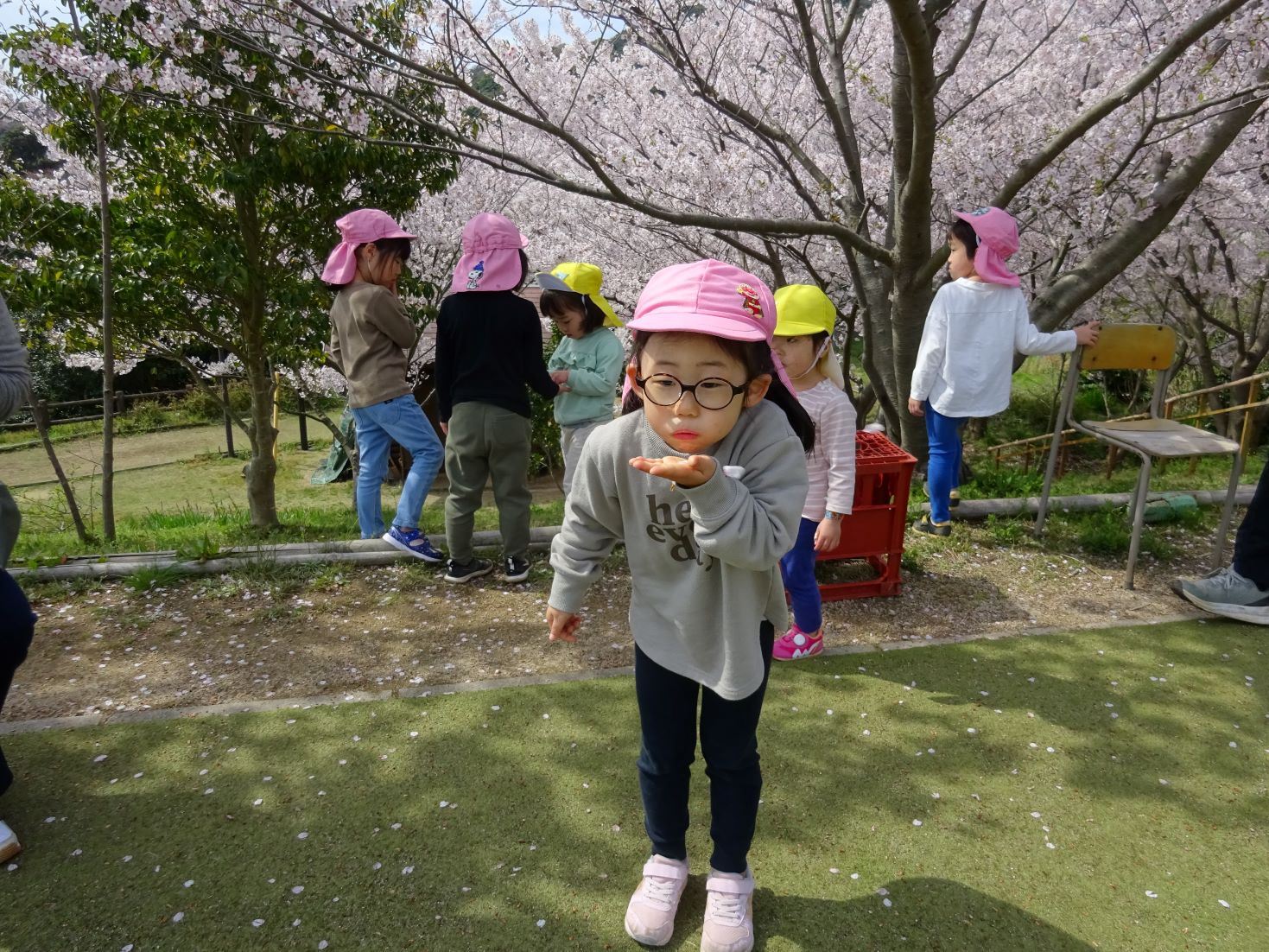 心地よい天気の下、春風を感じながら瀬崎(堂山)公園へ出掛けました。道中はチューリップやお地蔵様にも出会いました。また地域の方からも声をかけて頂き、子ども達はちょっぴり恥ずかしそうに挨拶をしました。現地では満開の桜の木の下で記念撮影をしました。桜の花びらがヒラヒラ舞い、子ども達はキャッチしたり手のひらに乗せて”フ~”と吹いたりしていました。しっぽ取り(鬼ごっこ)や遊具の遊びも楽しみました。帰りは少し疲れた表情を見せる子どももいましたが、保育所まで頑張って歩きました‼この後はおいしい給食をモリモリ頂きました。
