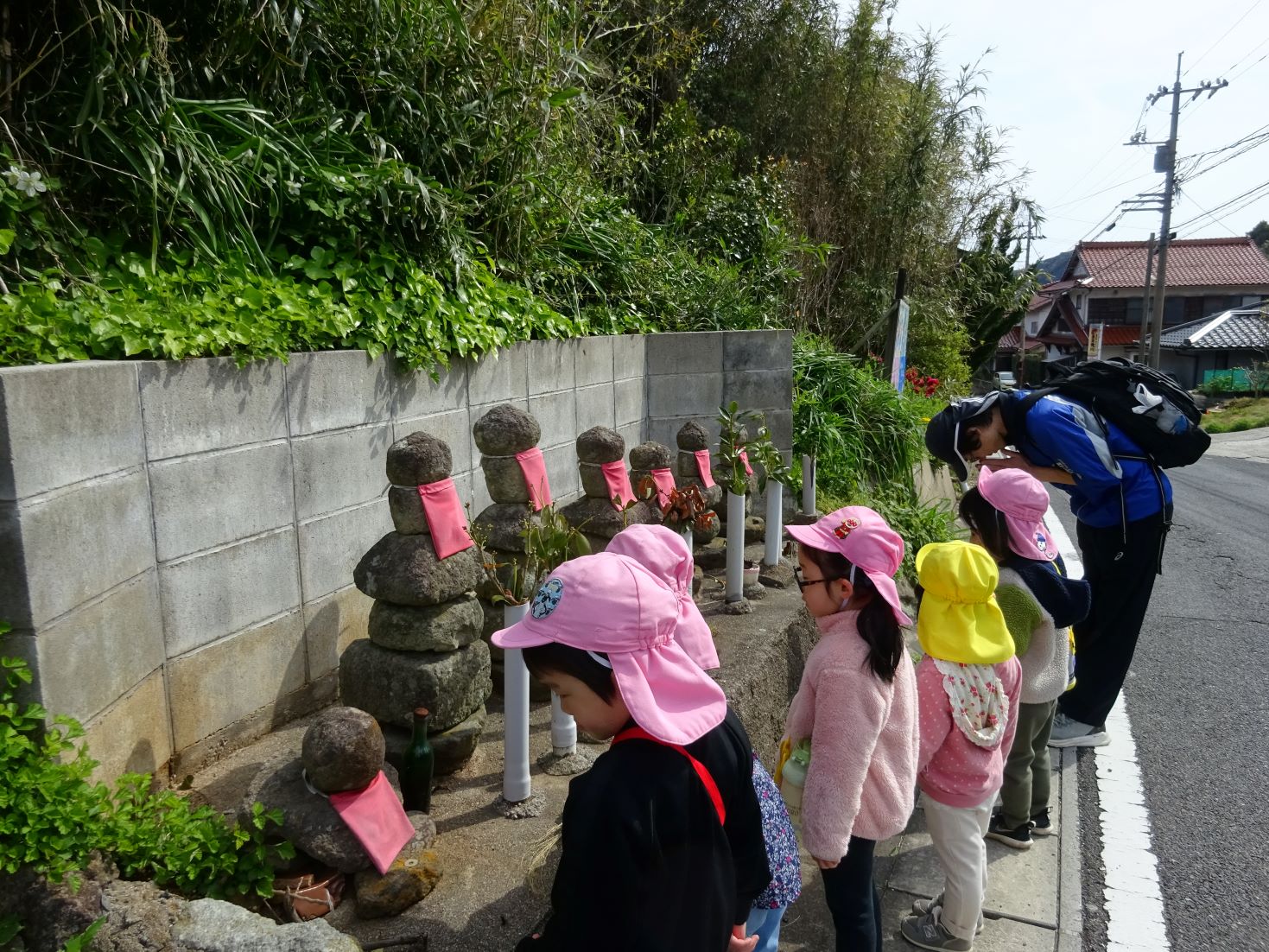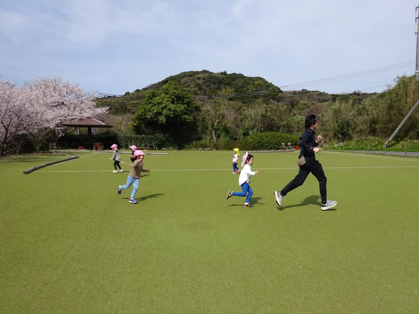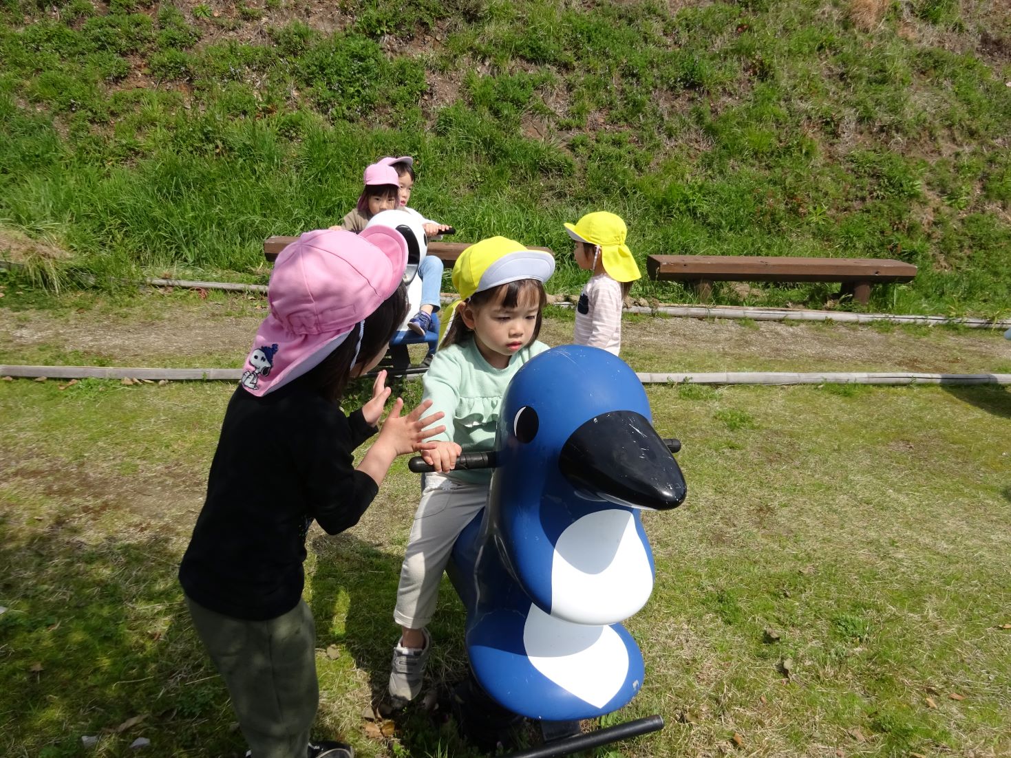 心地よい天気の下、春風を感じながら瀬崎(堂山)公園へ出掛けました。道中はチューリップやお地蔵様にも出会いました。また地域の方からも声をかけて頂き、子ども達はちょっぴり恥ずかしそうに挨拶をしました。現地では満開の桜の木の下で記念撮影をしました。桜の花びらがヒラヒラ舞い、子ども達はキャッチしたり手のひらに乗せて”フ~”と吹いたりしていました。しっぽ取り(鬼ごっこ)や遊具の遊びも楽しみました。帰りは少し疲れた表情を見せる子どももいましたが、保育所まで頑張って歩きました‼この後はおいしい給食をモリモリ頂きました。