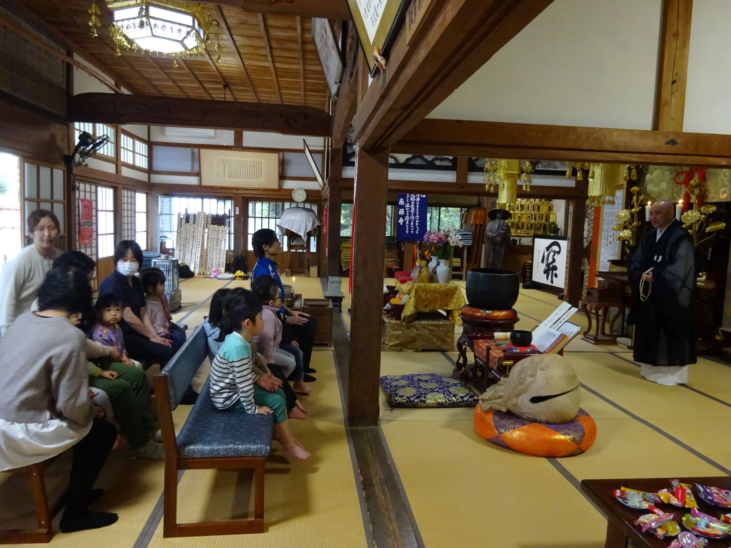 少し緊張した表情で住職さんの話を聞きました。