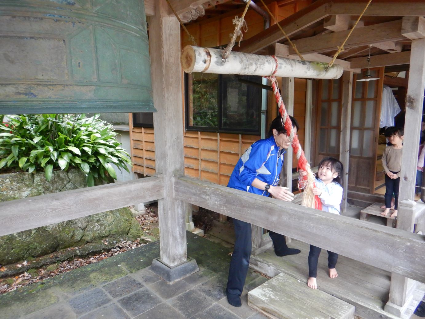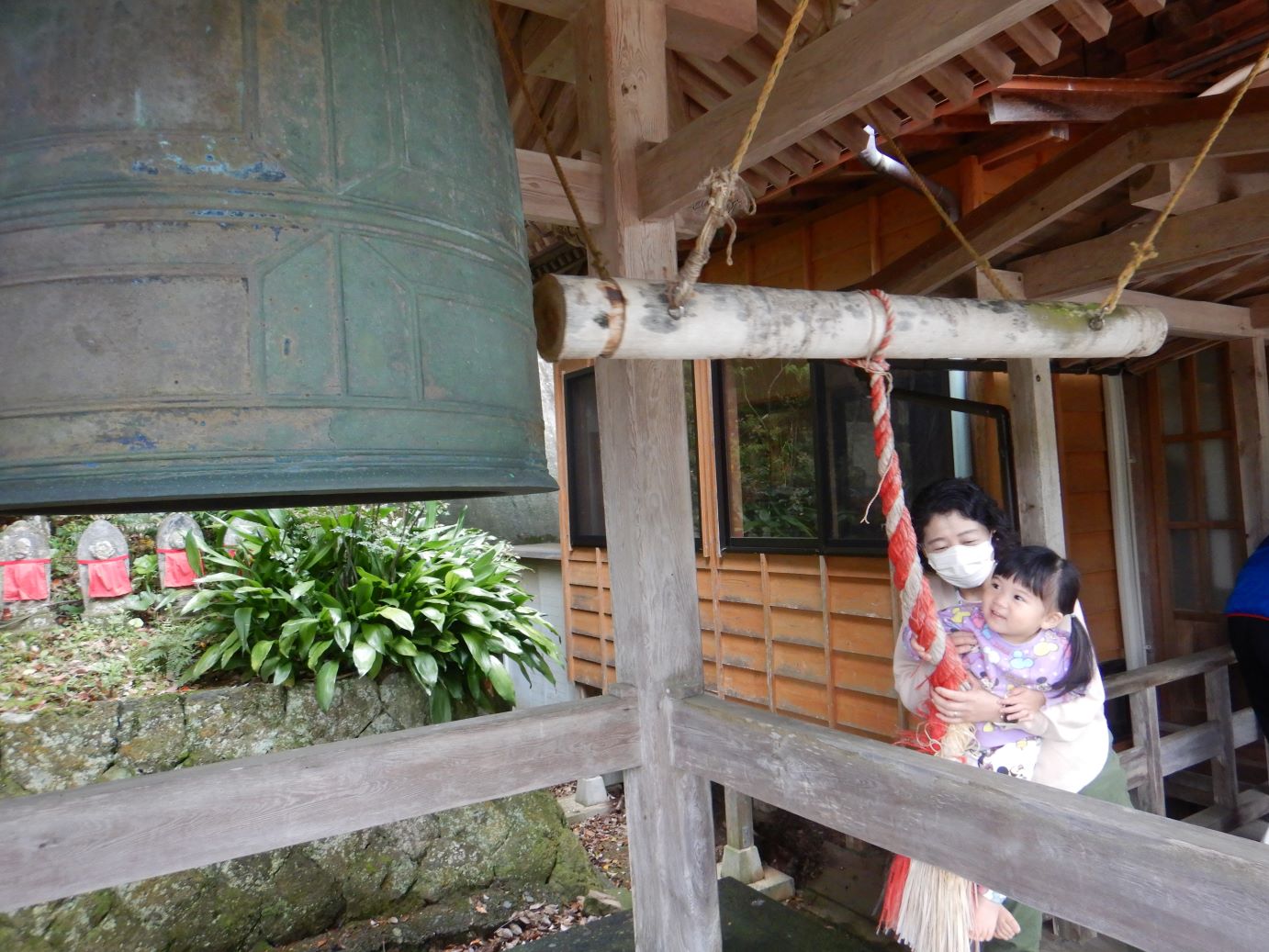 お寺の鐘を鳴らしました。