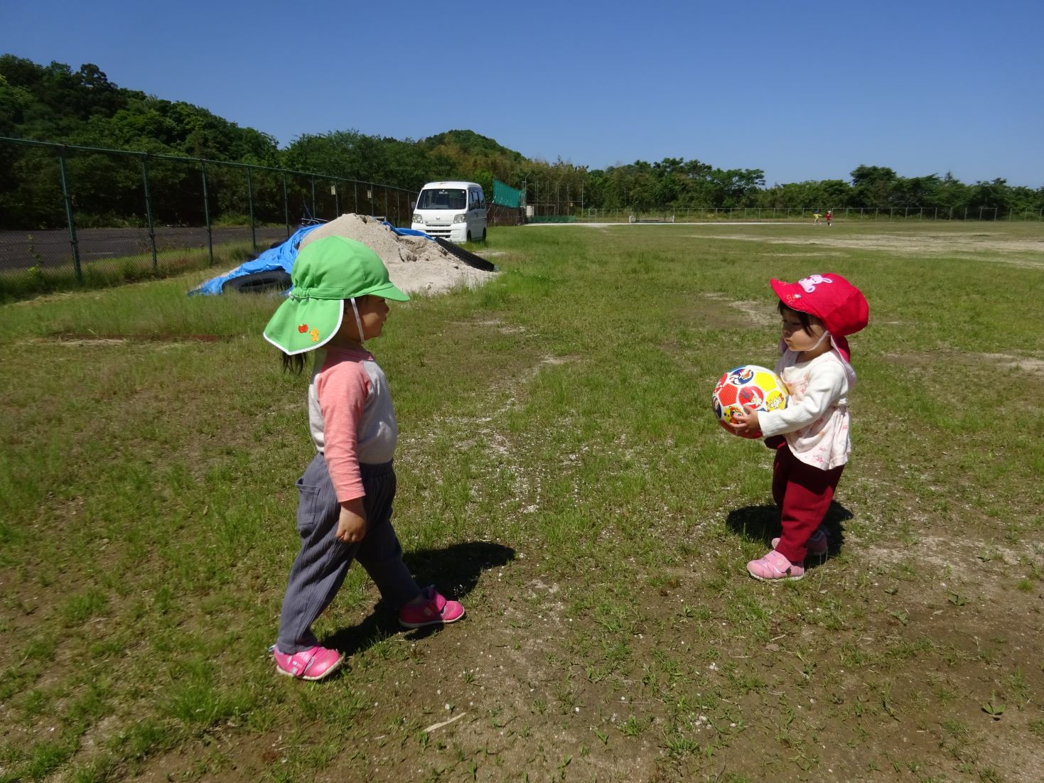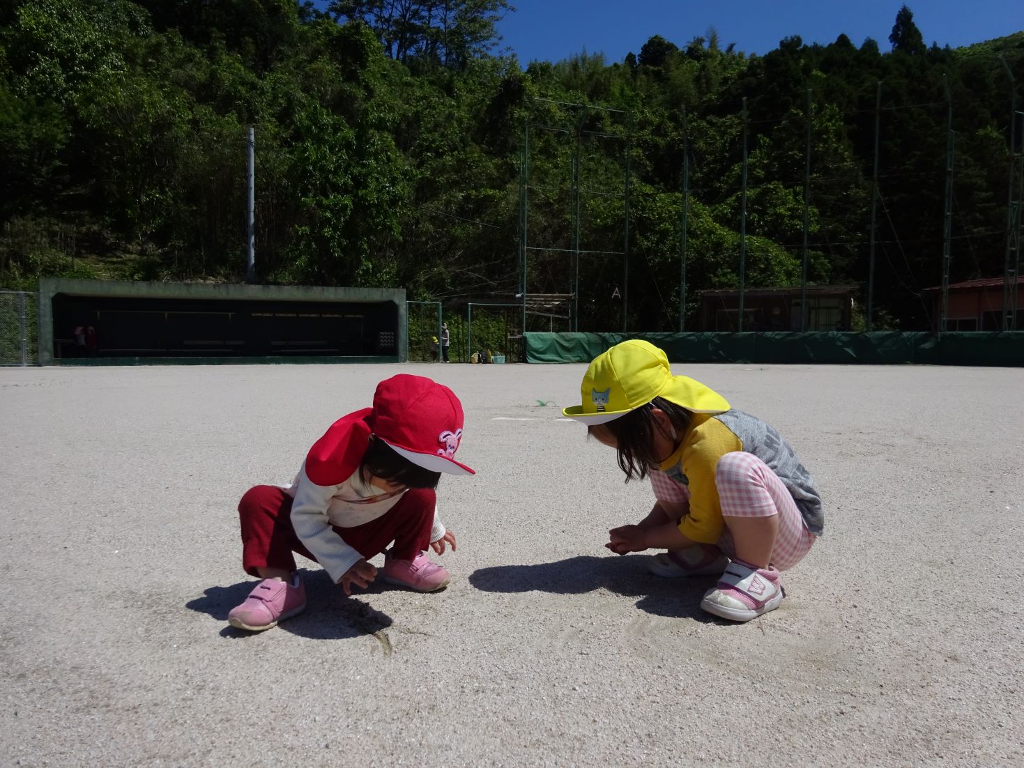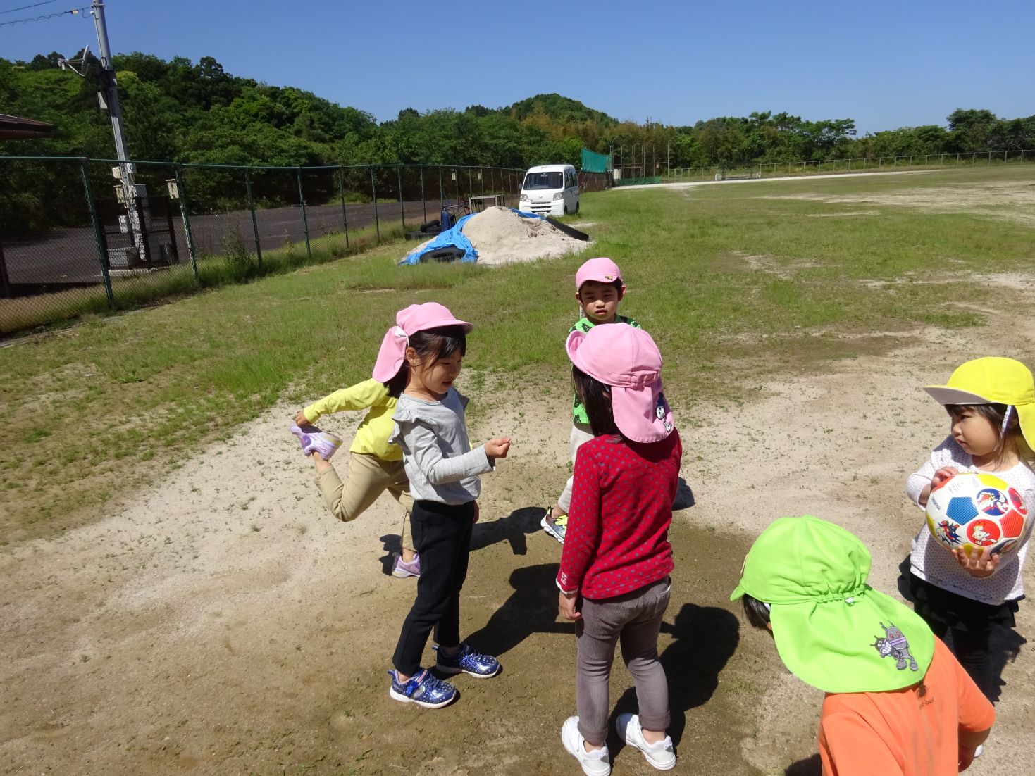 スポーツ広場では、友達を誘って氷鬼やサッカー、バスケット、砂遊び、草花摘み、かけっこをして体を沢山動かして遊びました。