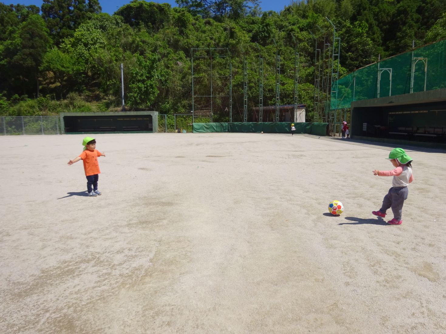 みんなでスポーツ広場へ散歩に行きました