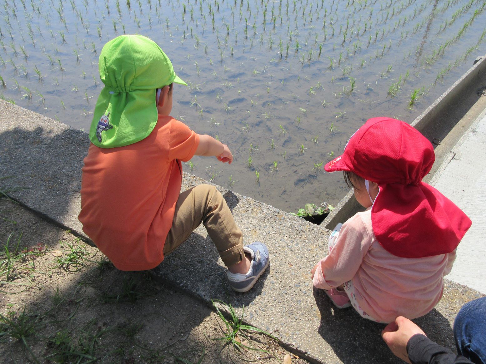 田んぼの中におたまじゃくしを見つけたよ