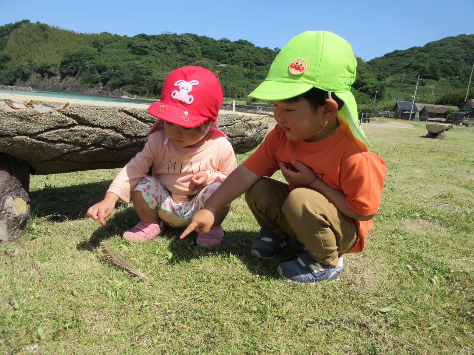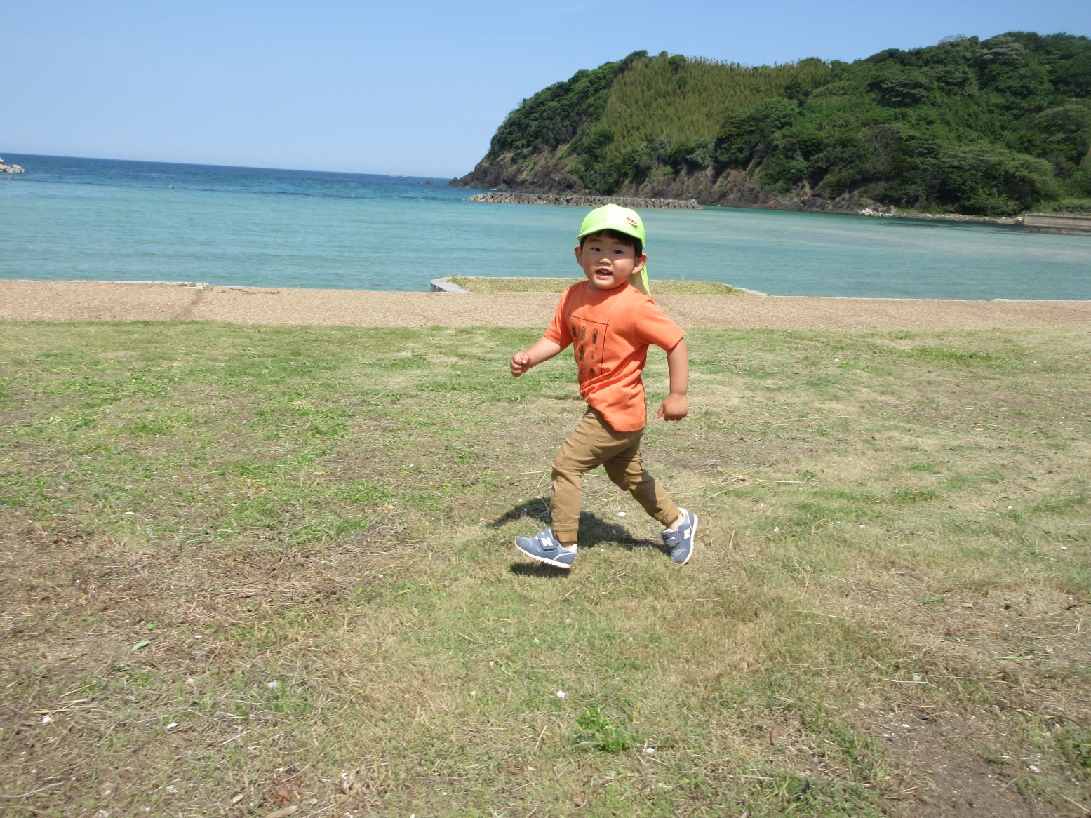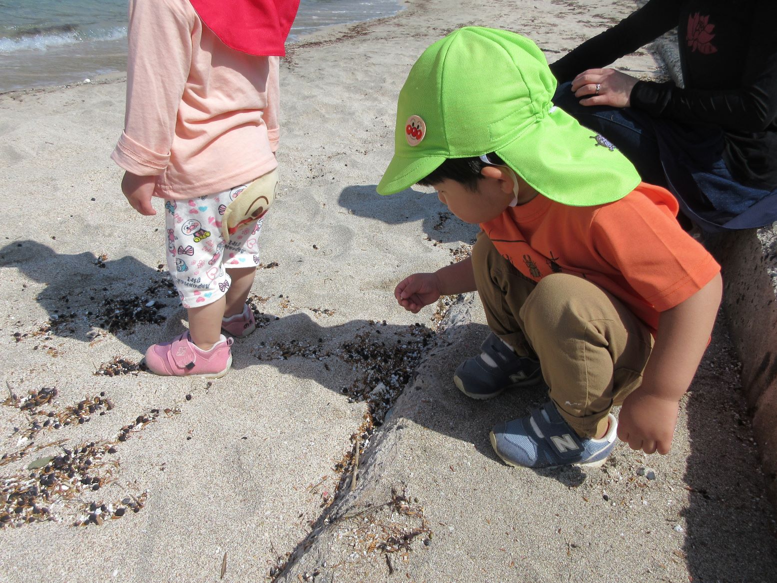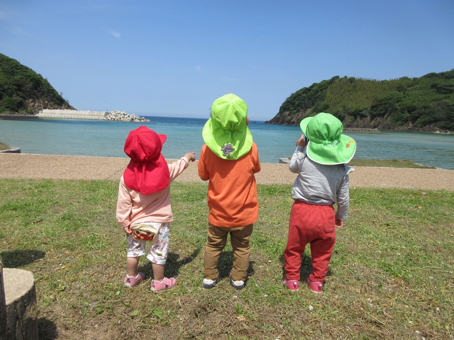 爽やかな風が心地よく、走ったり、だんごむしを探したり、海の水に触れたりして楽しみました。