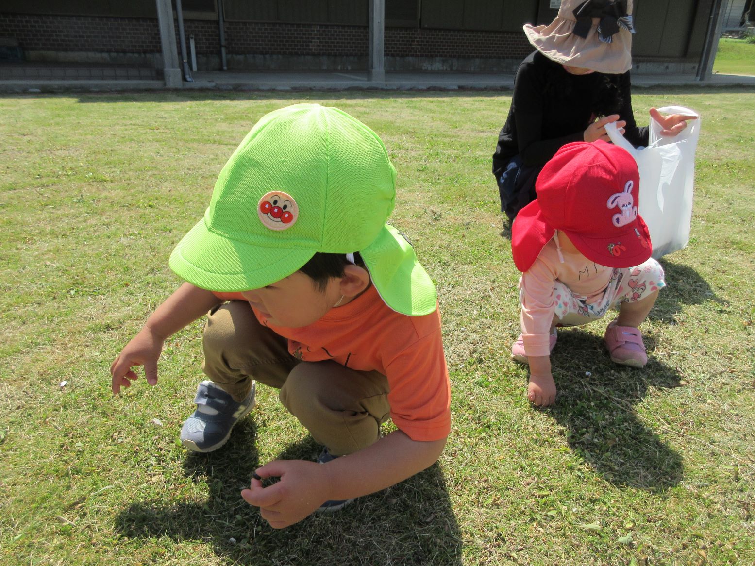 「…… あっ!」ダンゴムシを見つけて、動きがとまってしまいました