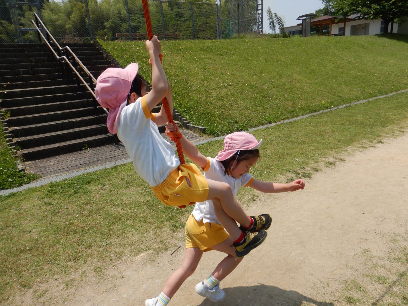 ターザンロープ、しっかり捕まっています