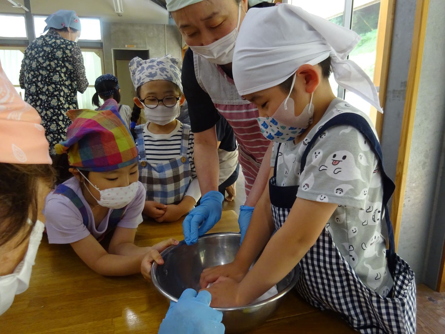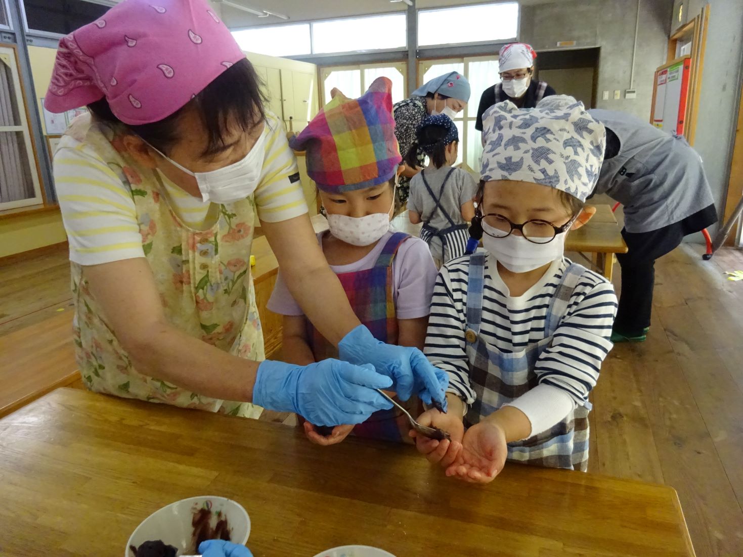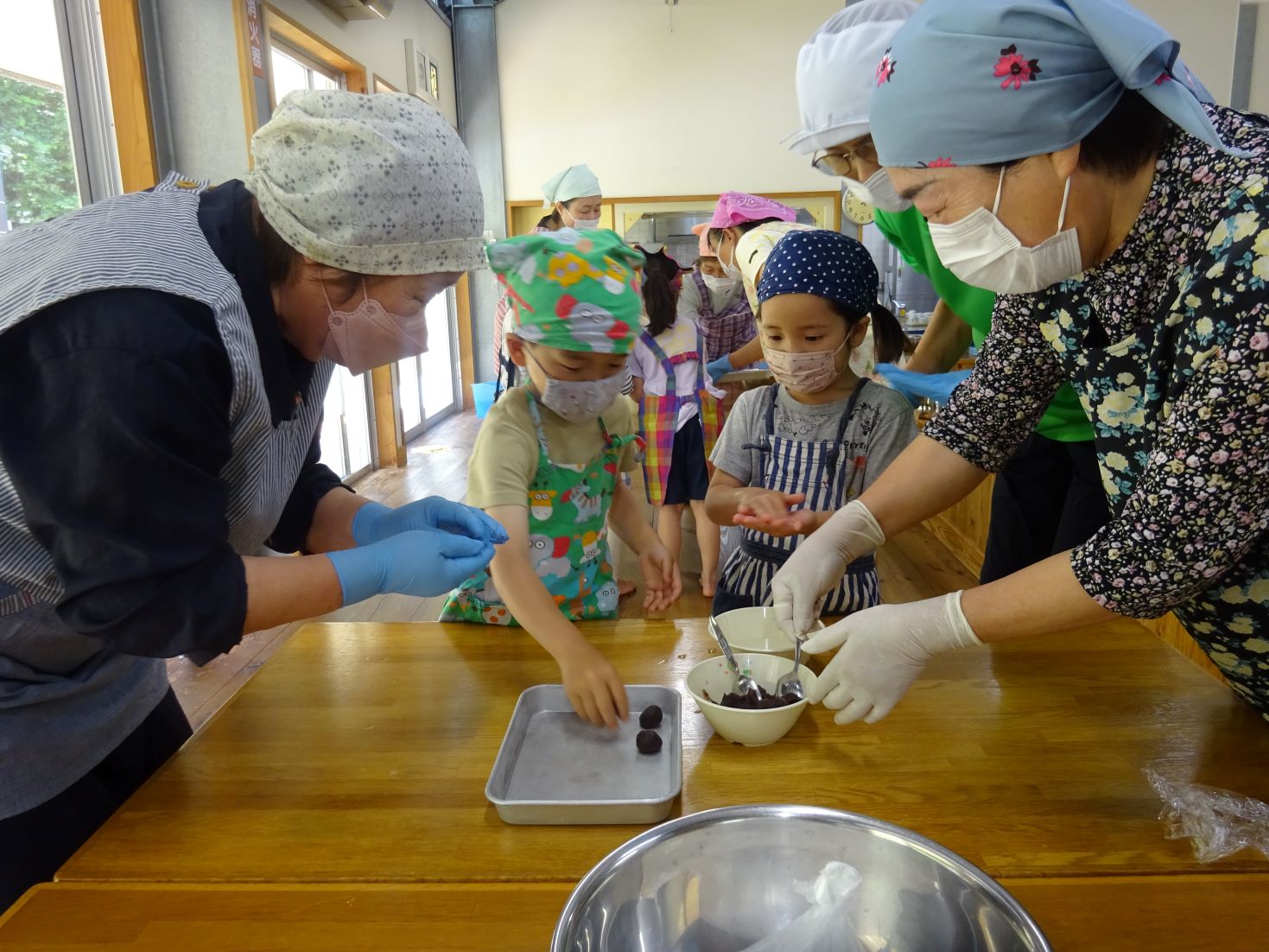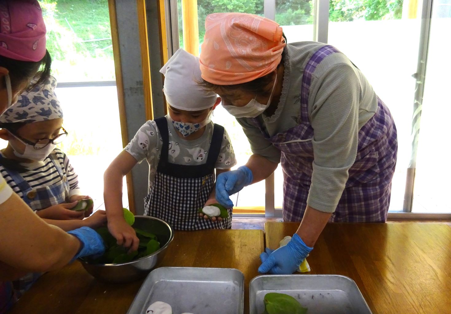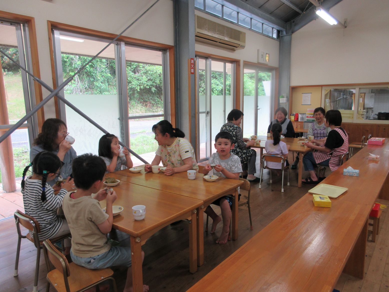 今日は地域講師の方4名にお越しいただき、一緒に柏餅作りをしました。子ども達は目の前で「こうするんだよ」と教わり、嬉しそうに作りました。柏餅が蒸しあがるまでは、地域講師の方々に遊戯室で“歌のプレゼント”を贈りました。子ども達は、蒸しあがった柏餅を見て「わぁ~おいしそうな いろだ~」「いいにおいがする~」と満面の笑顔になり、地域講師の方々と一緒に美味しく頂きました。これからも子ども達が元気で大きくなりますように…☆