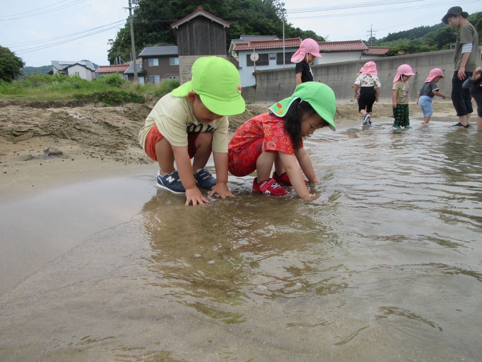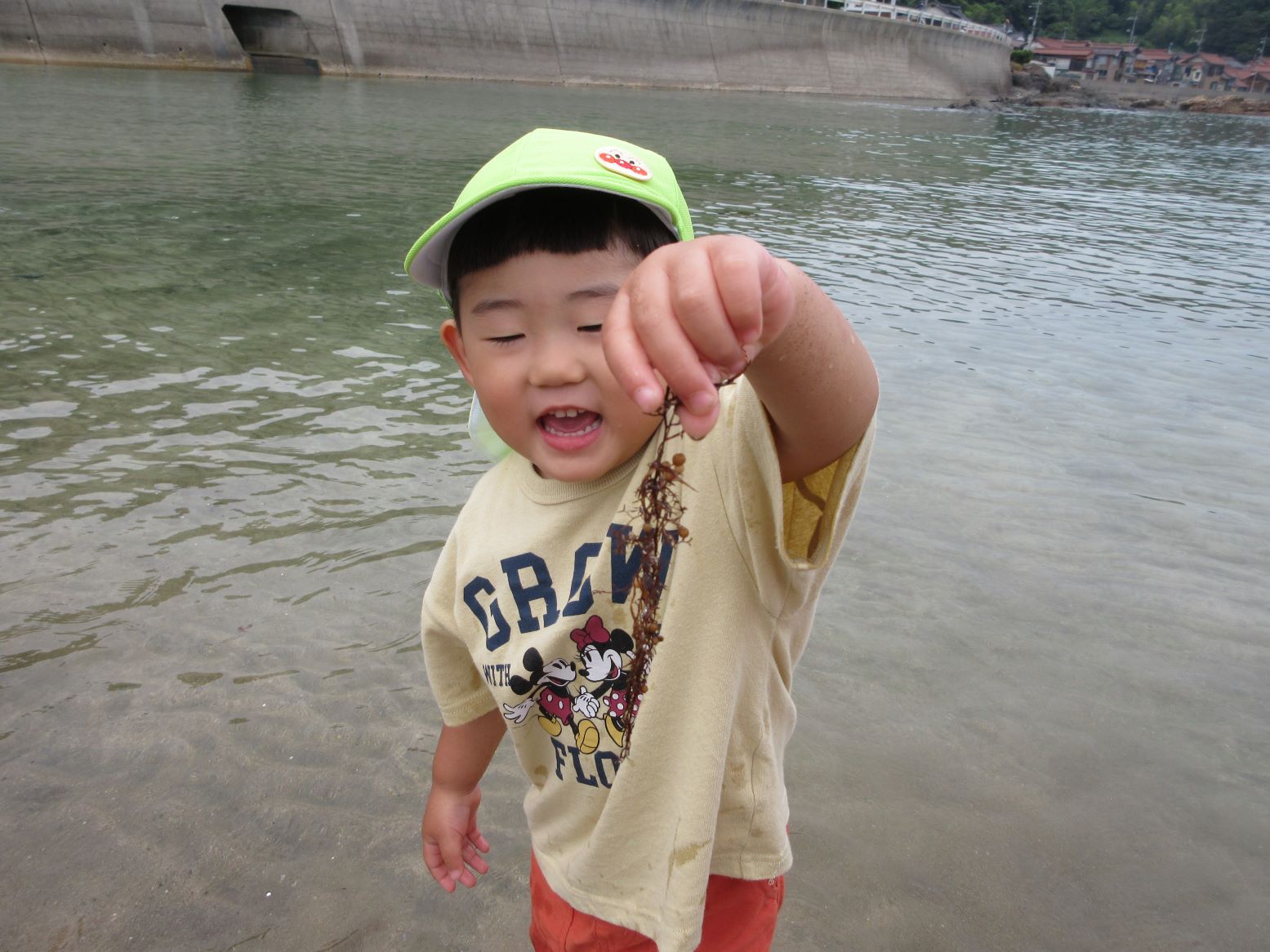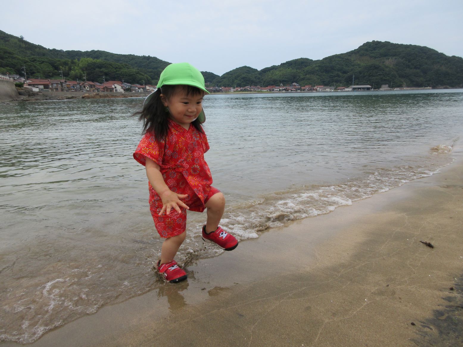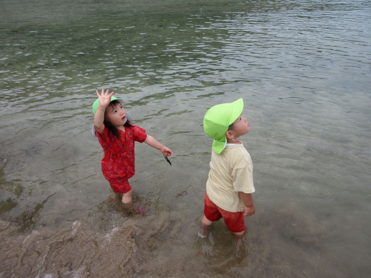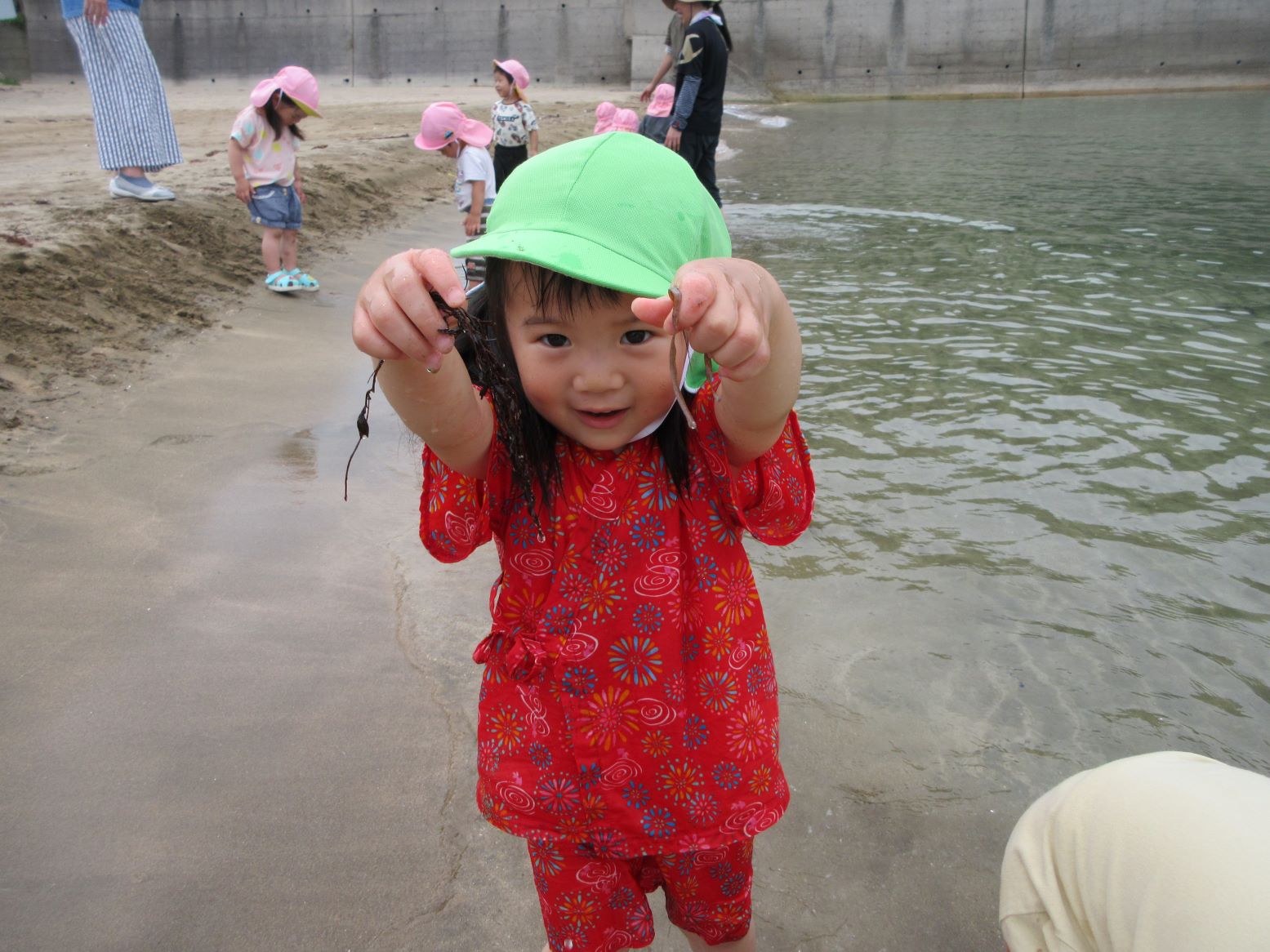 マリン保育所のお友達の真似をして足をつけてみたよ