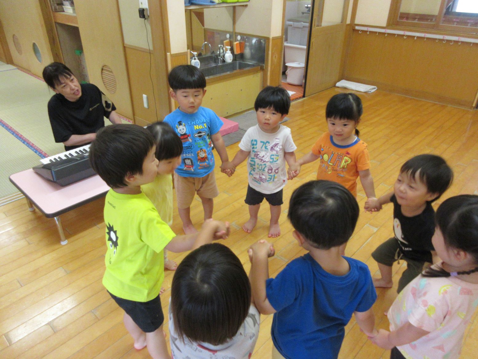お帰りの会では、手を繋いで歌をうたいました