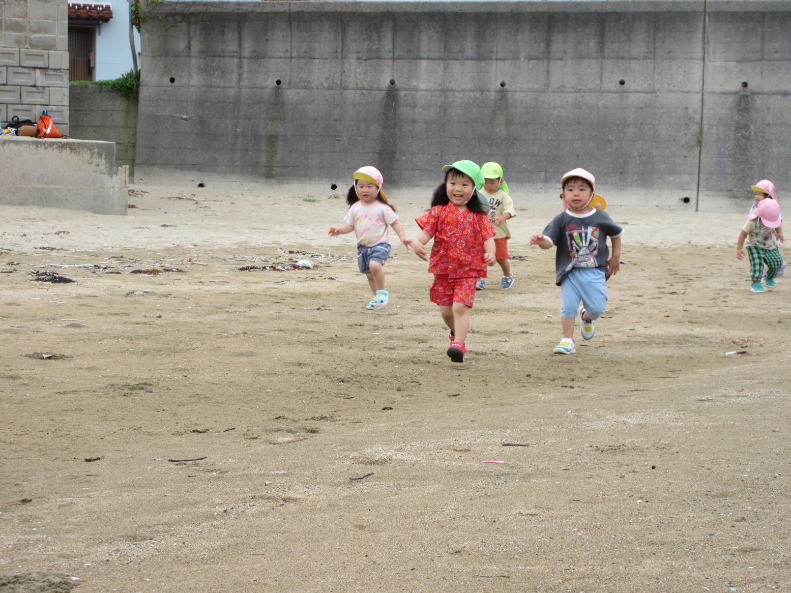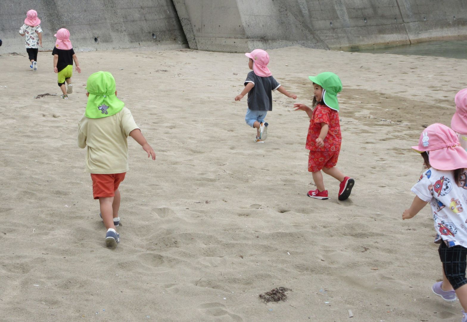 ゆめ組2歳児は、らっこ組さんと小具の浜に散歩に行きました。