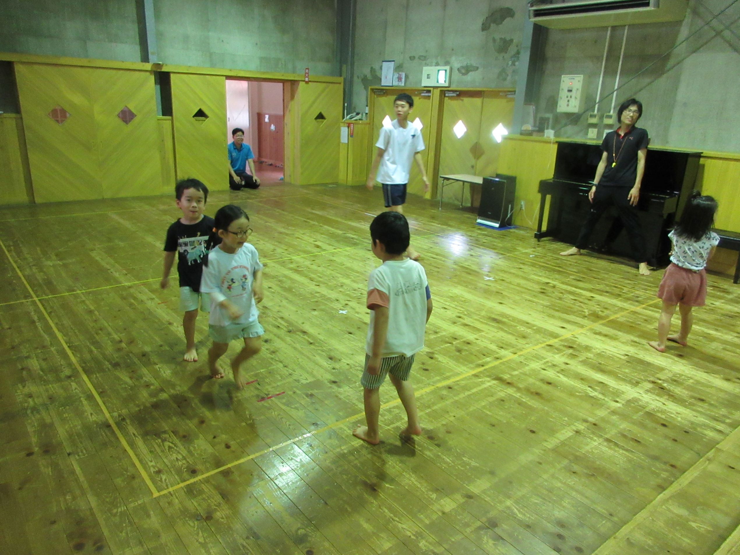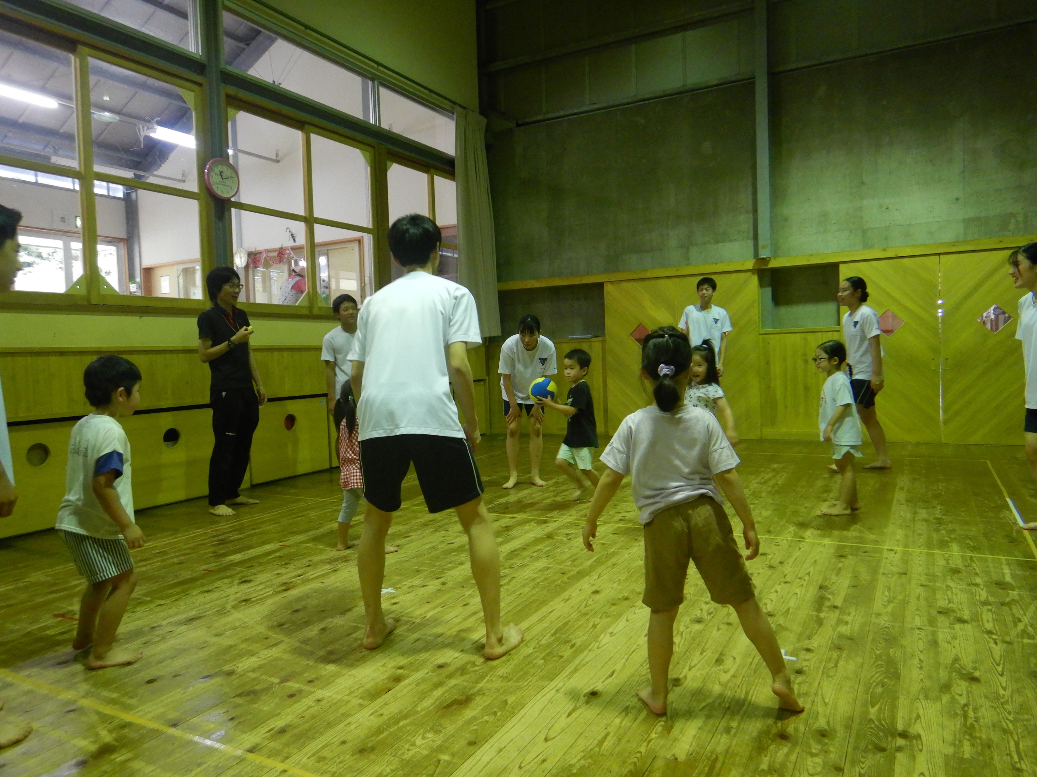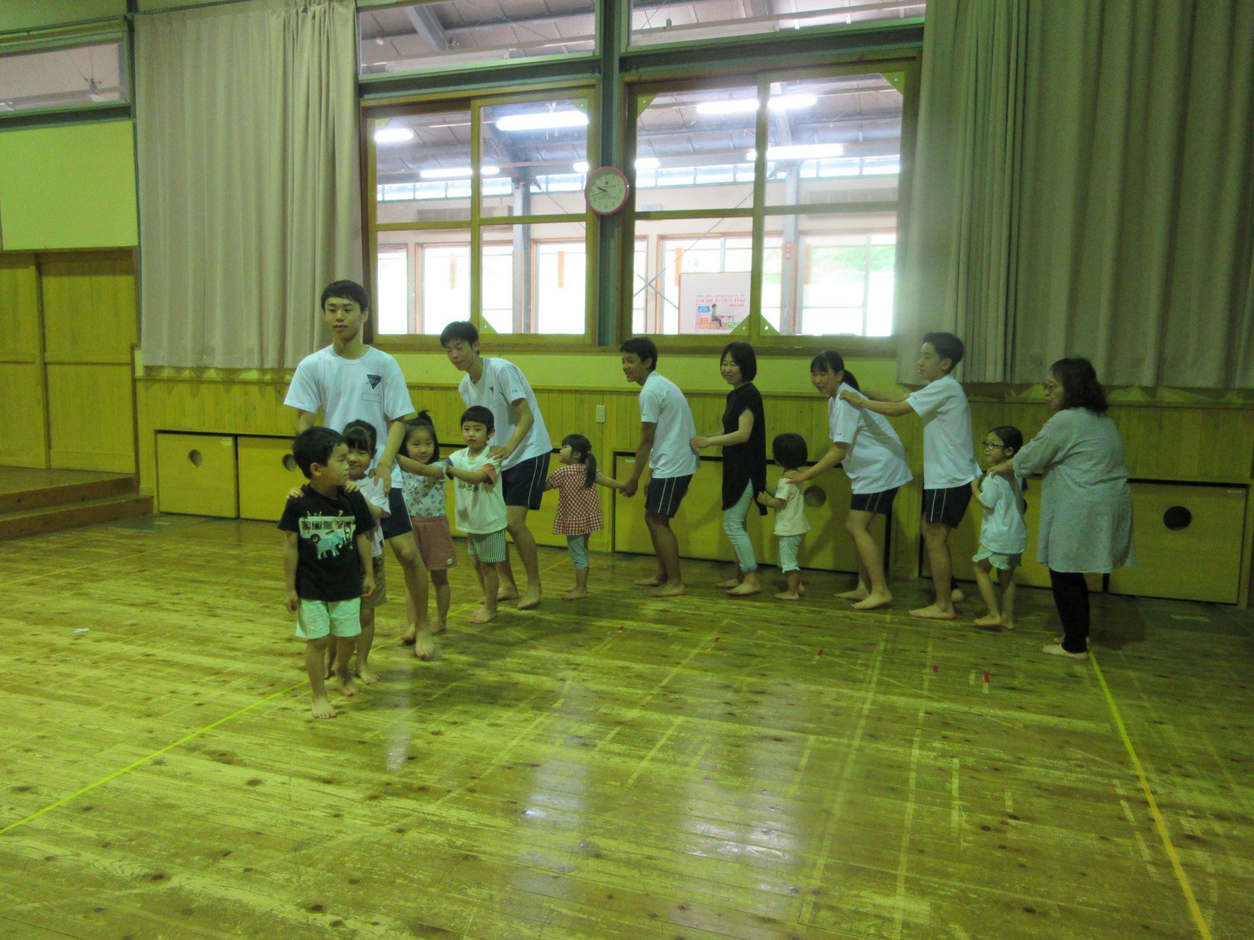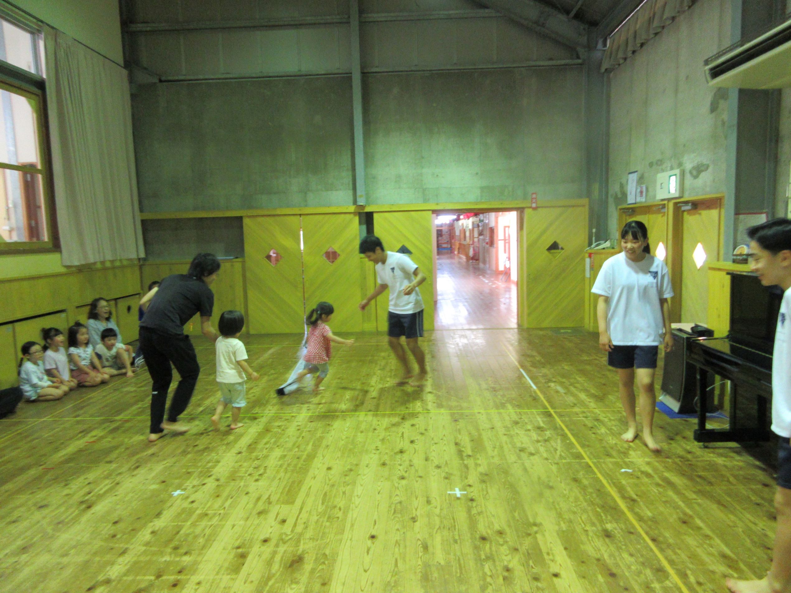 少し照れながら自己紹介をした後、手遊びやジャンケン列車、氷鬼、しっぽとり、ドッジボールなどをして緊張が少しずつほぐれていきました。