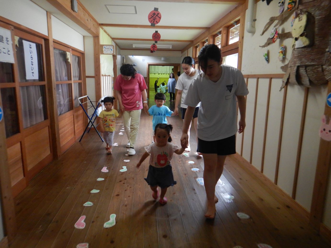 「おへやは こっちだよ」一緒にお部屋まで案内してあげました