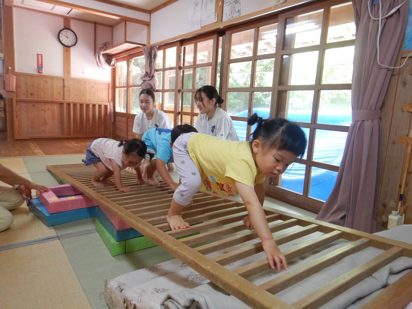 普段の遊びから、梯子のぼりの様子をみてもらうと、「上手だね」「おー速い!」と声をかけてくれました。その声が嬉しくて、