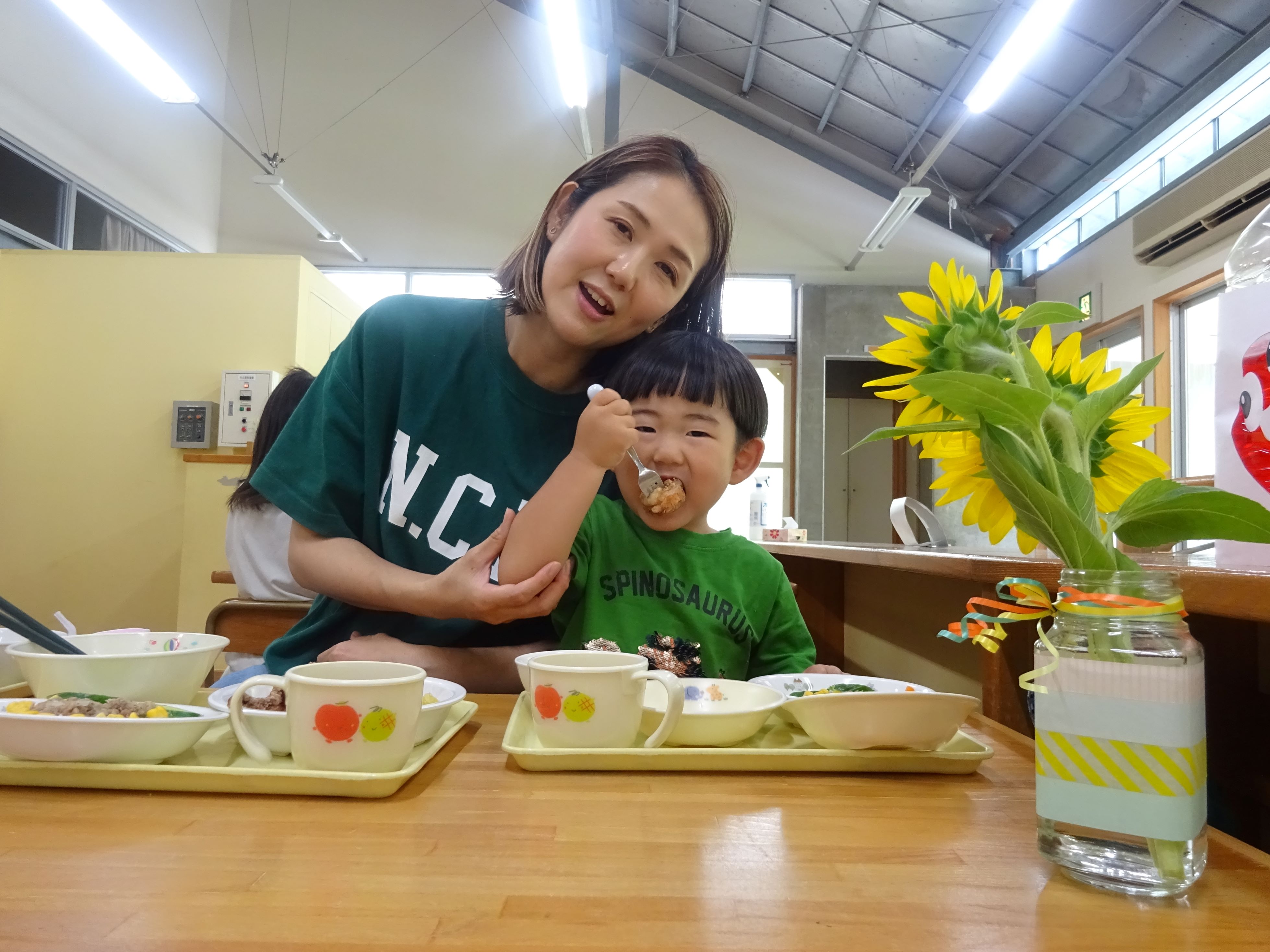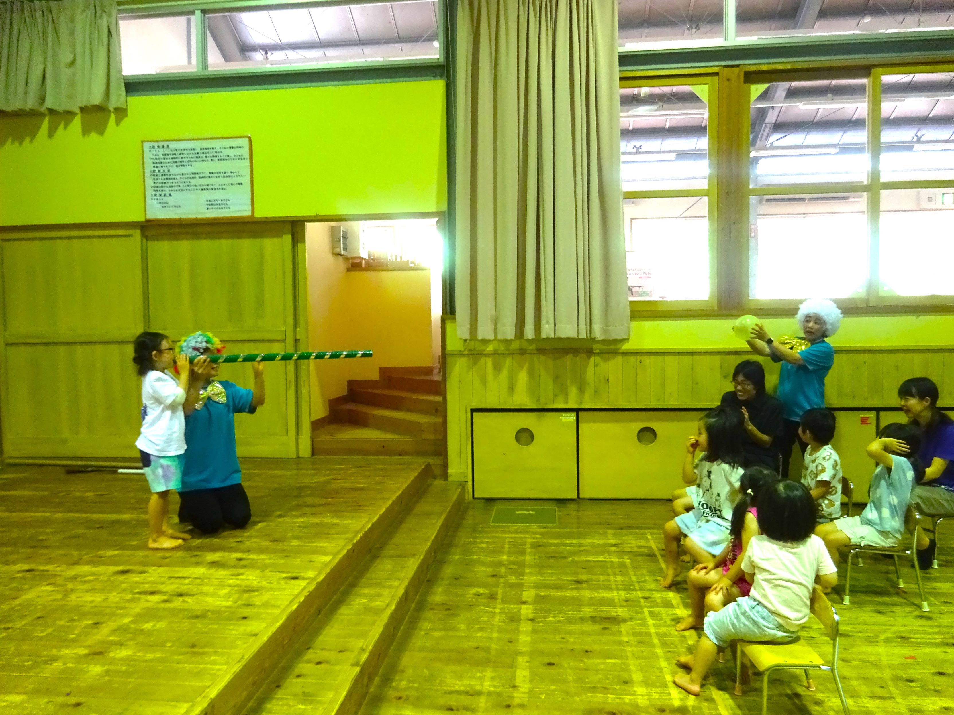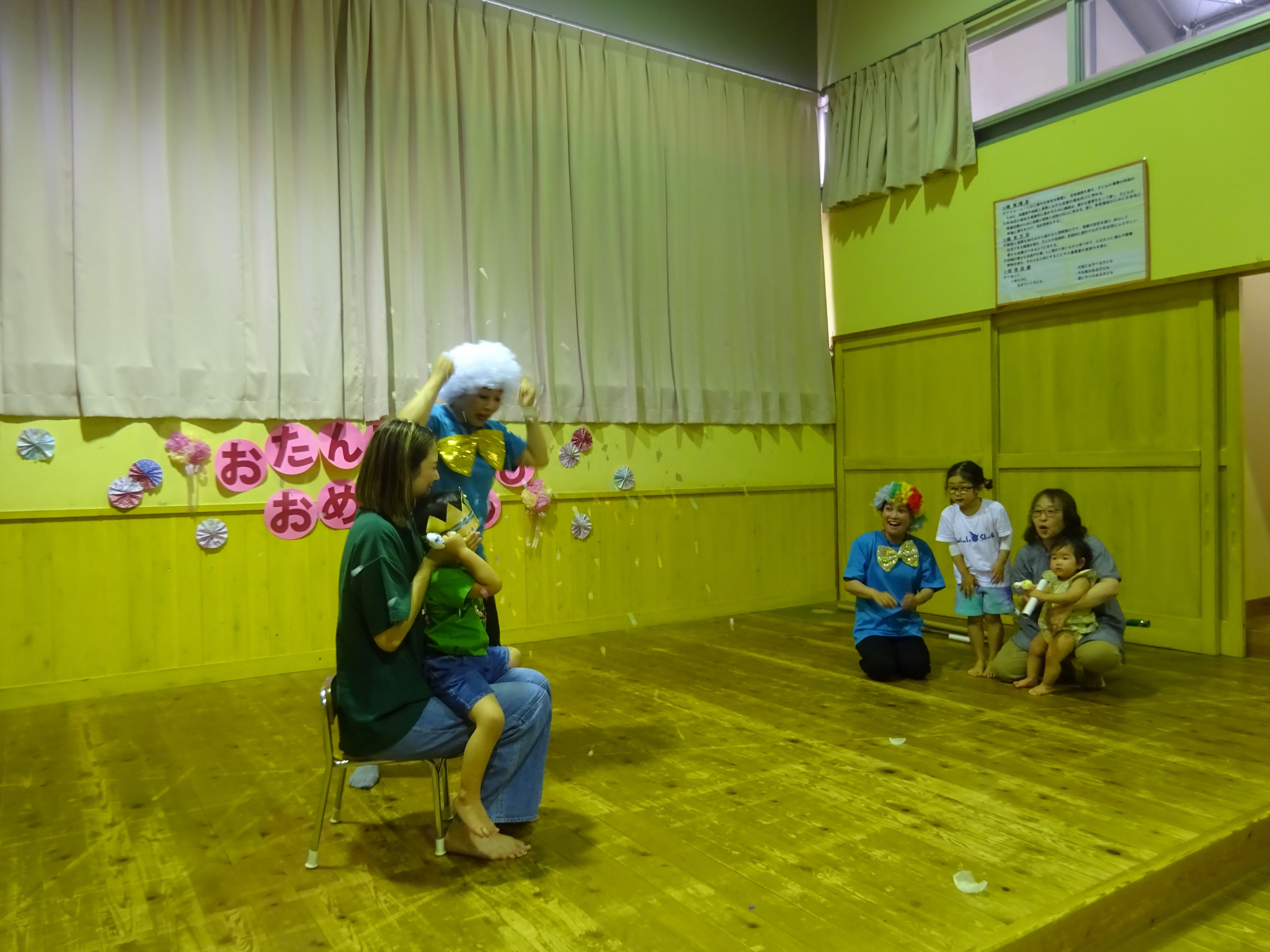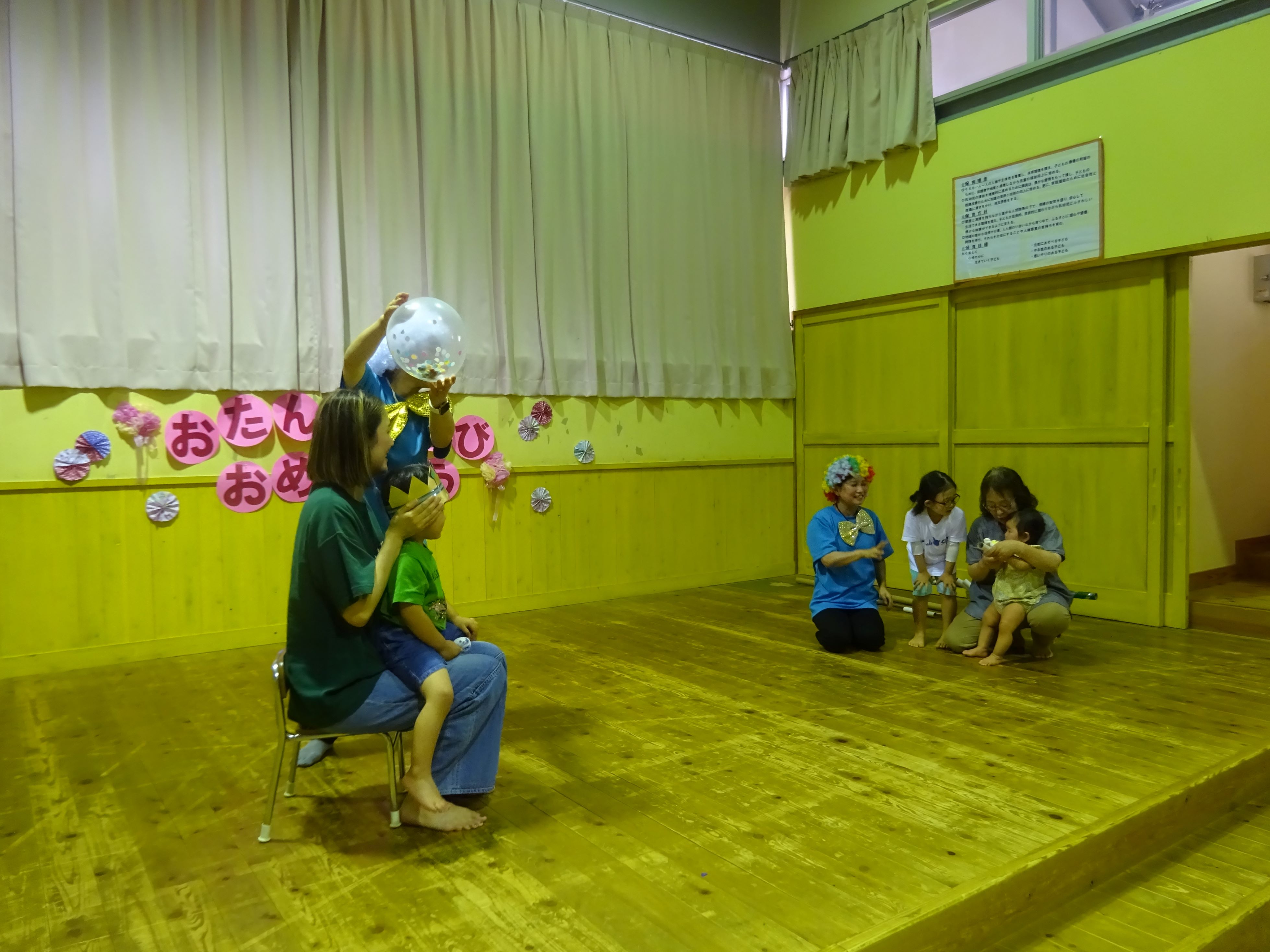 「おたんじょうかいはいつ?」と楽しみにしていた誕生児さん。今日は、お母さんをお招きし、みんなでお祝いをしました。いつもは、恥ずかしがり屋さんですが、今日は堂々とステージの上に上がり、自己紹介や好きなことのお話をうれしそうにしてくれました。三歳になり、お兄さんらしくなったと感じられた姿でした。お母さんから名前の由来や生まれた時のエピソードを聞き、この野波の自然の中で、すくすくと成長していって欲しいというご家族の思いを知り、あたたかい気持ちになりました。