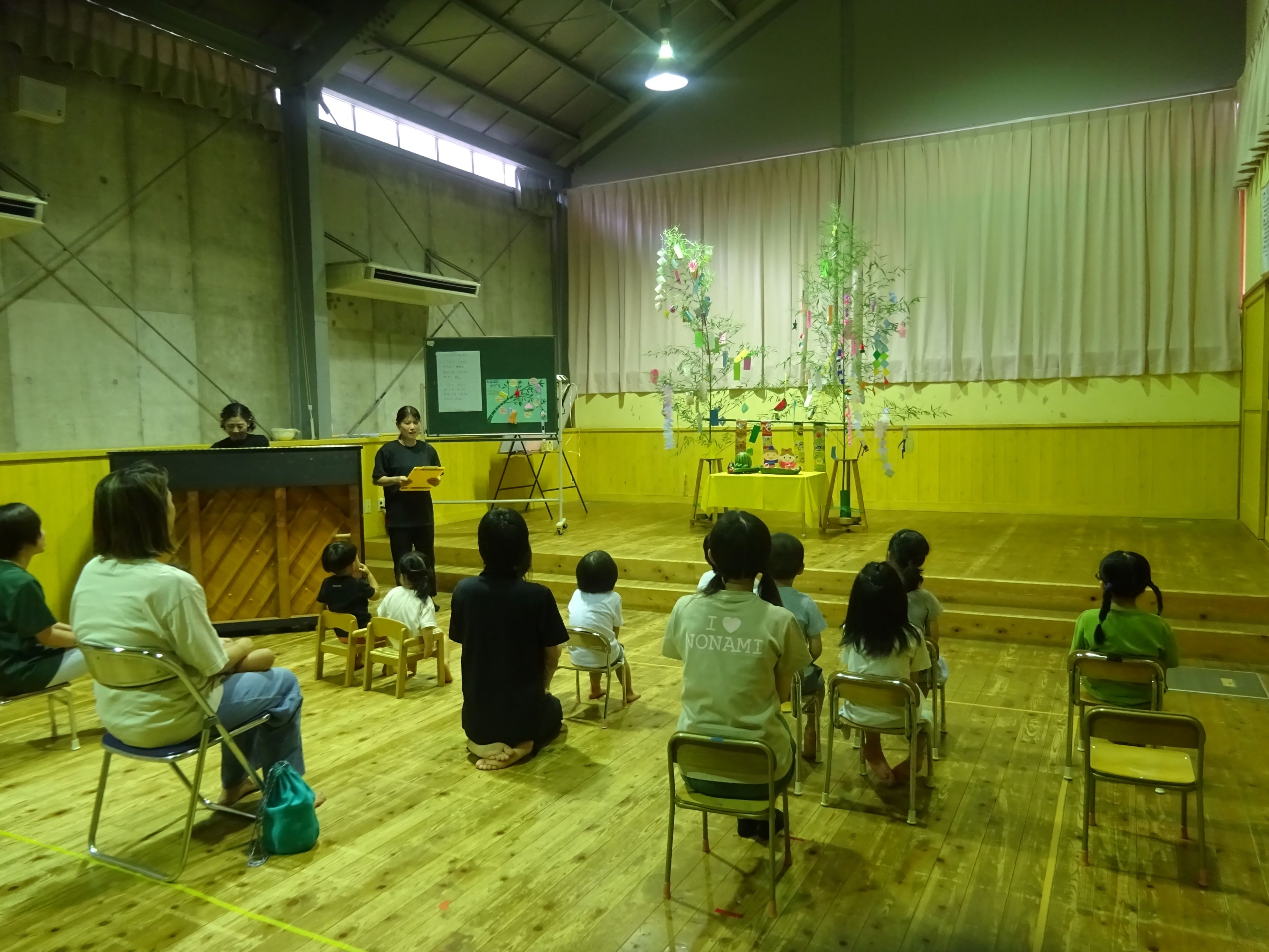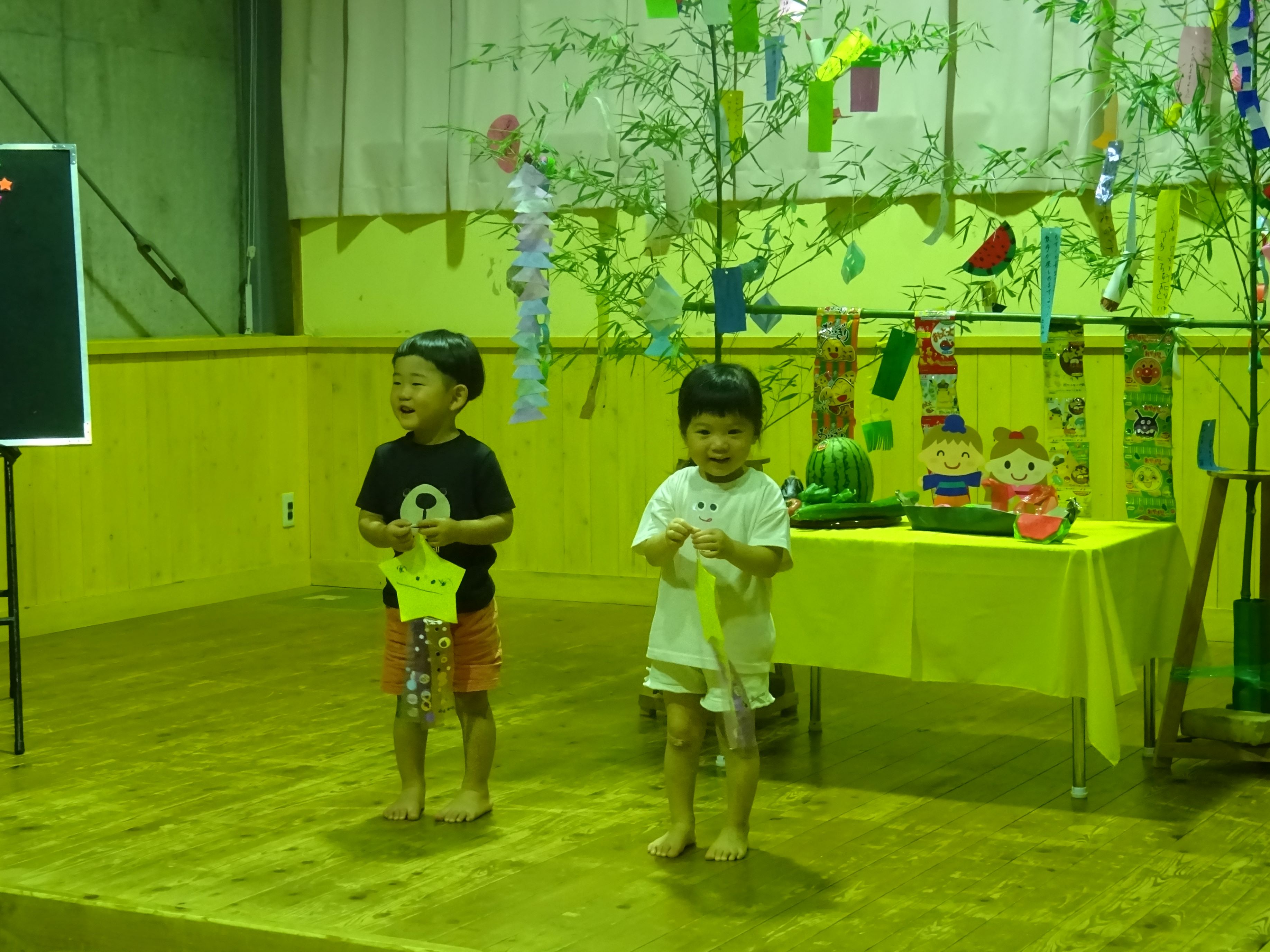 願いが届くように、元気一杯「たなばたさま」の歌をうたい、七夕の行事を楽しみました。