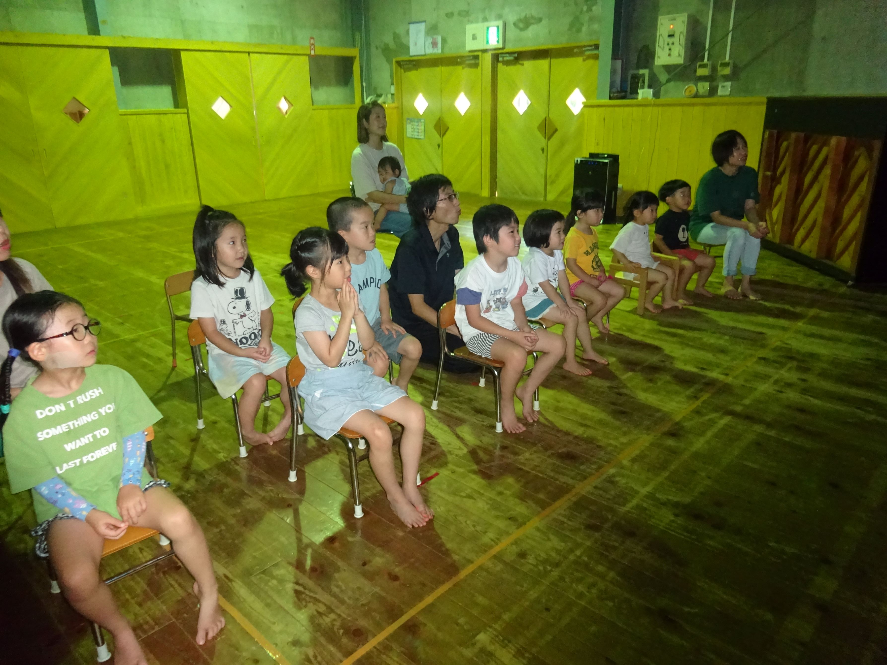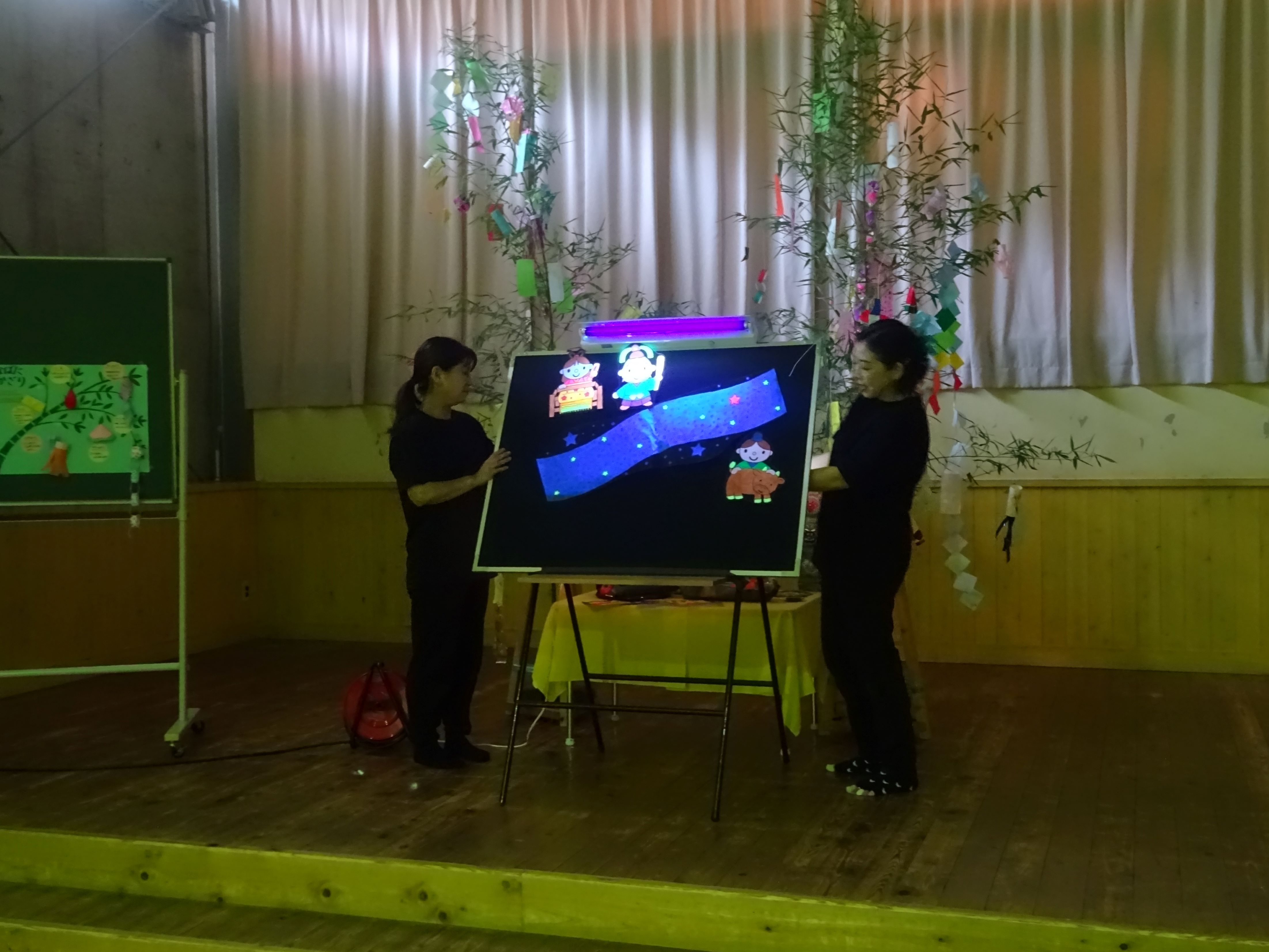 七夕会では、ブラックシアターで「織姫と彦星」のお話を見ました。また、各クラスで作った飾りの紹介や、子ども達、保育所体験で来てくれたお友達の願い事を紹介したりしました。大きくなったらなりたい職業やヒーロー、頑張りたい事、小さいお友達は、家族からの願いなど、それぞれ個性あふれる願い事が書いてありました。
