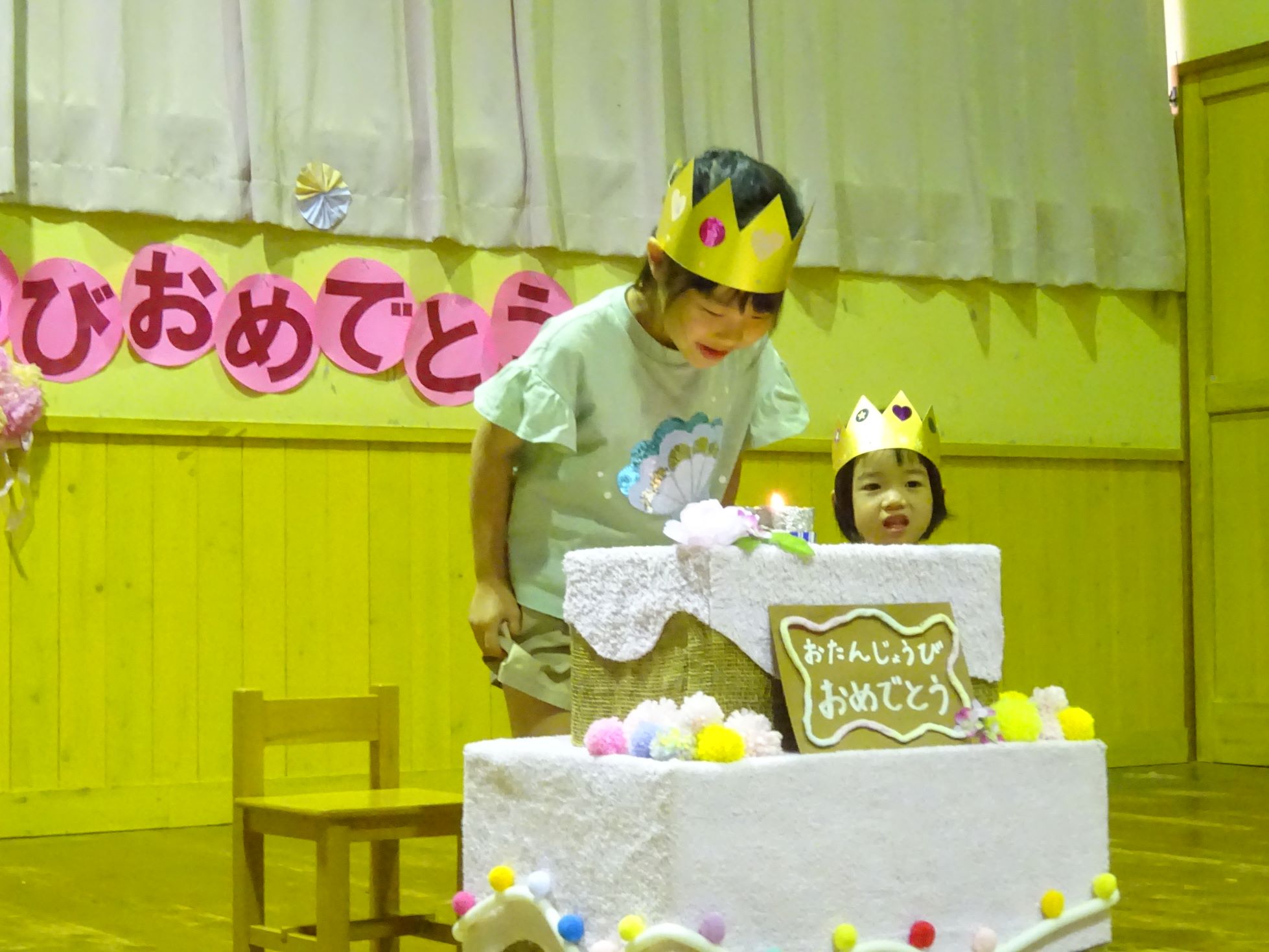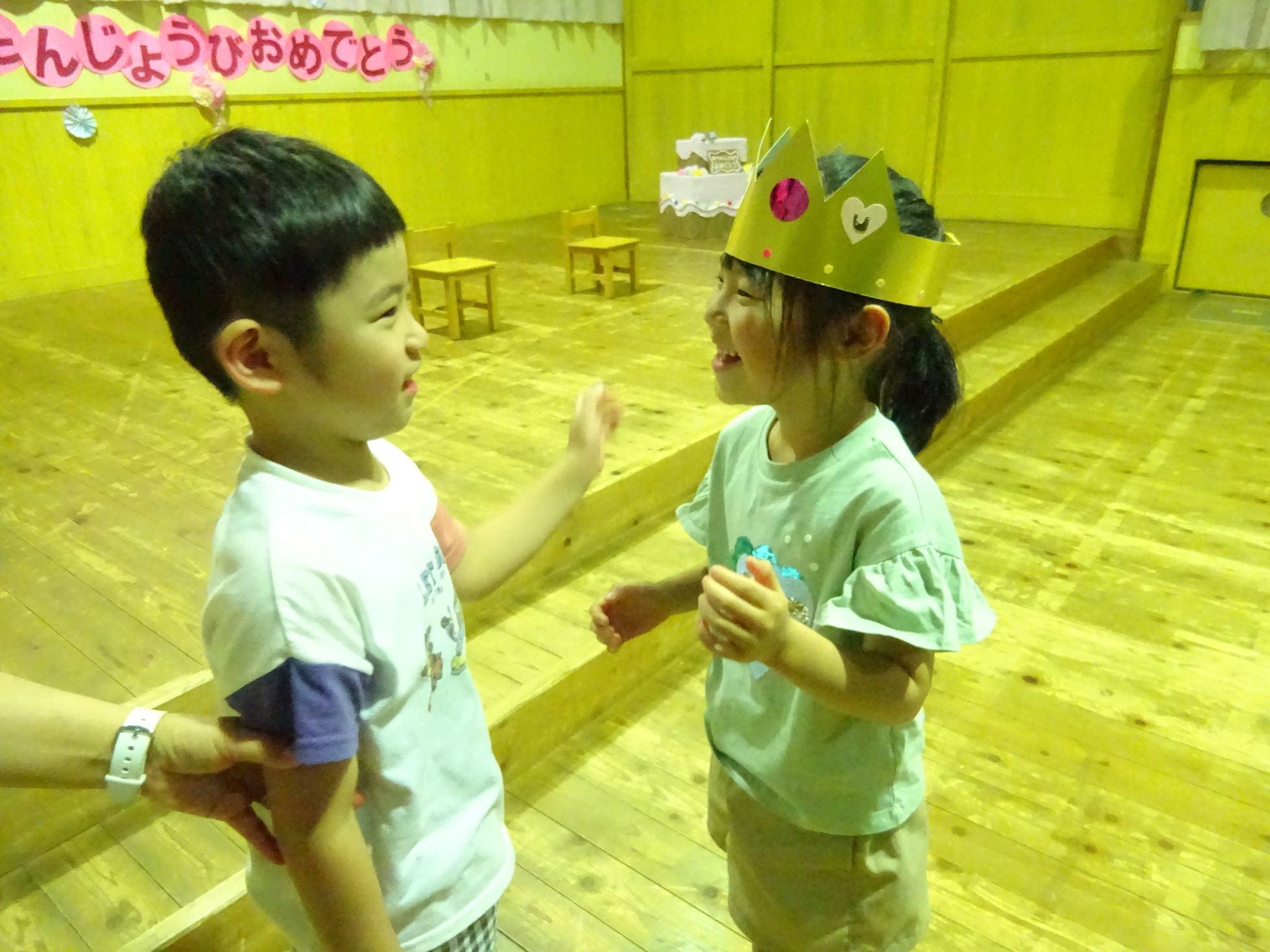 8月生まれ3名のうち、欠席のお友達がいたので、今日は2名のお誕生児さんをお祝いしました。