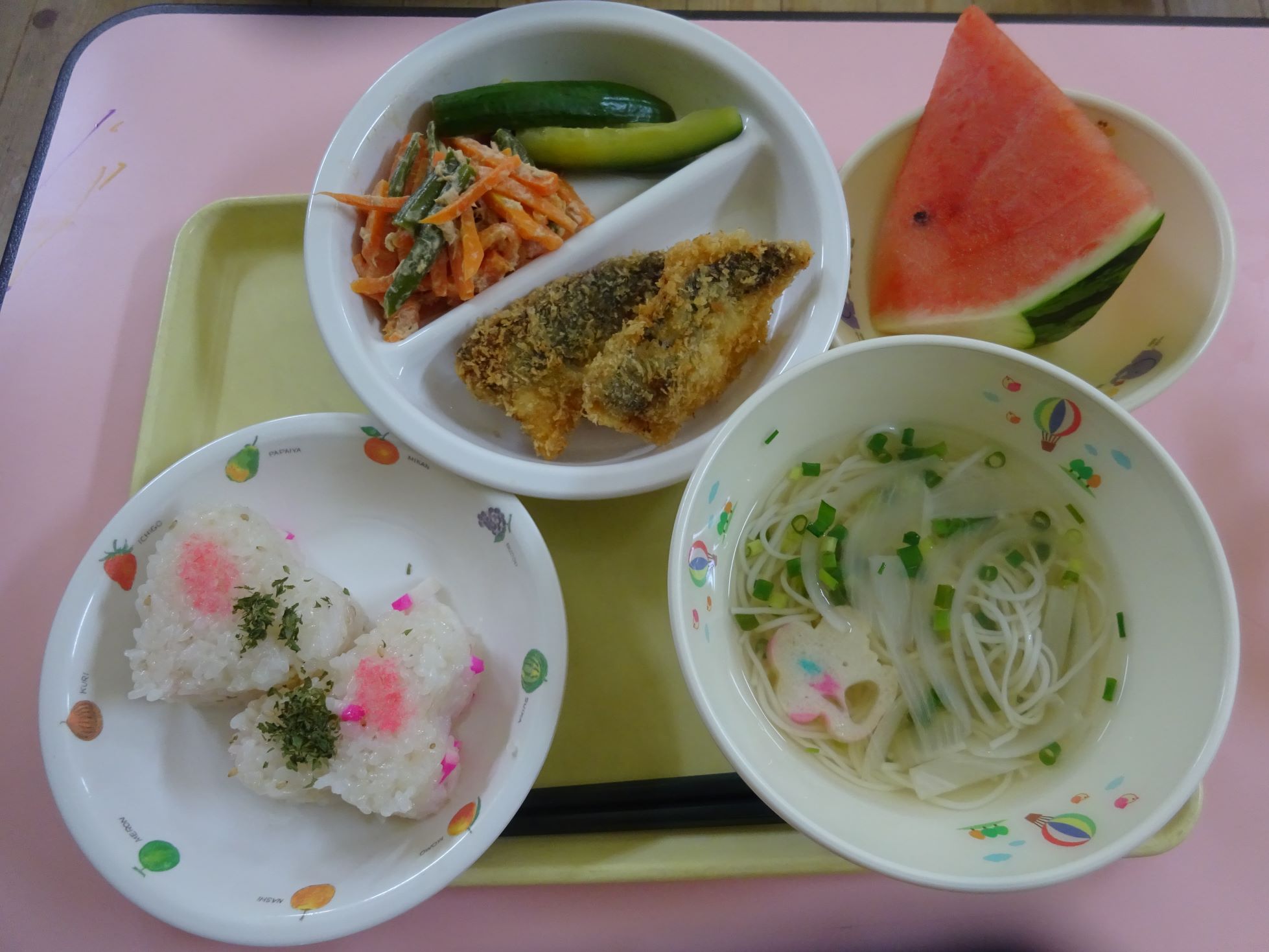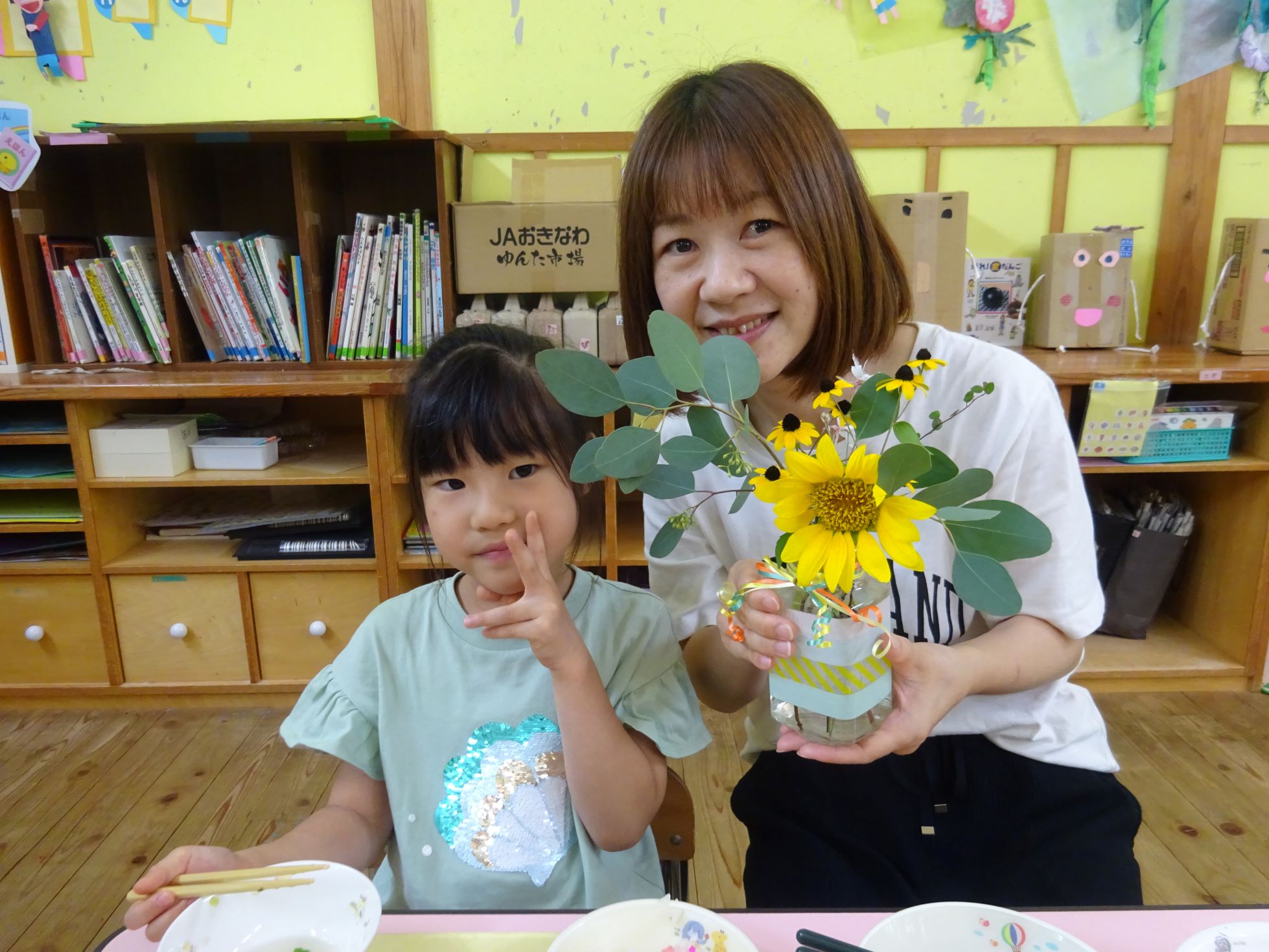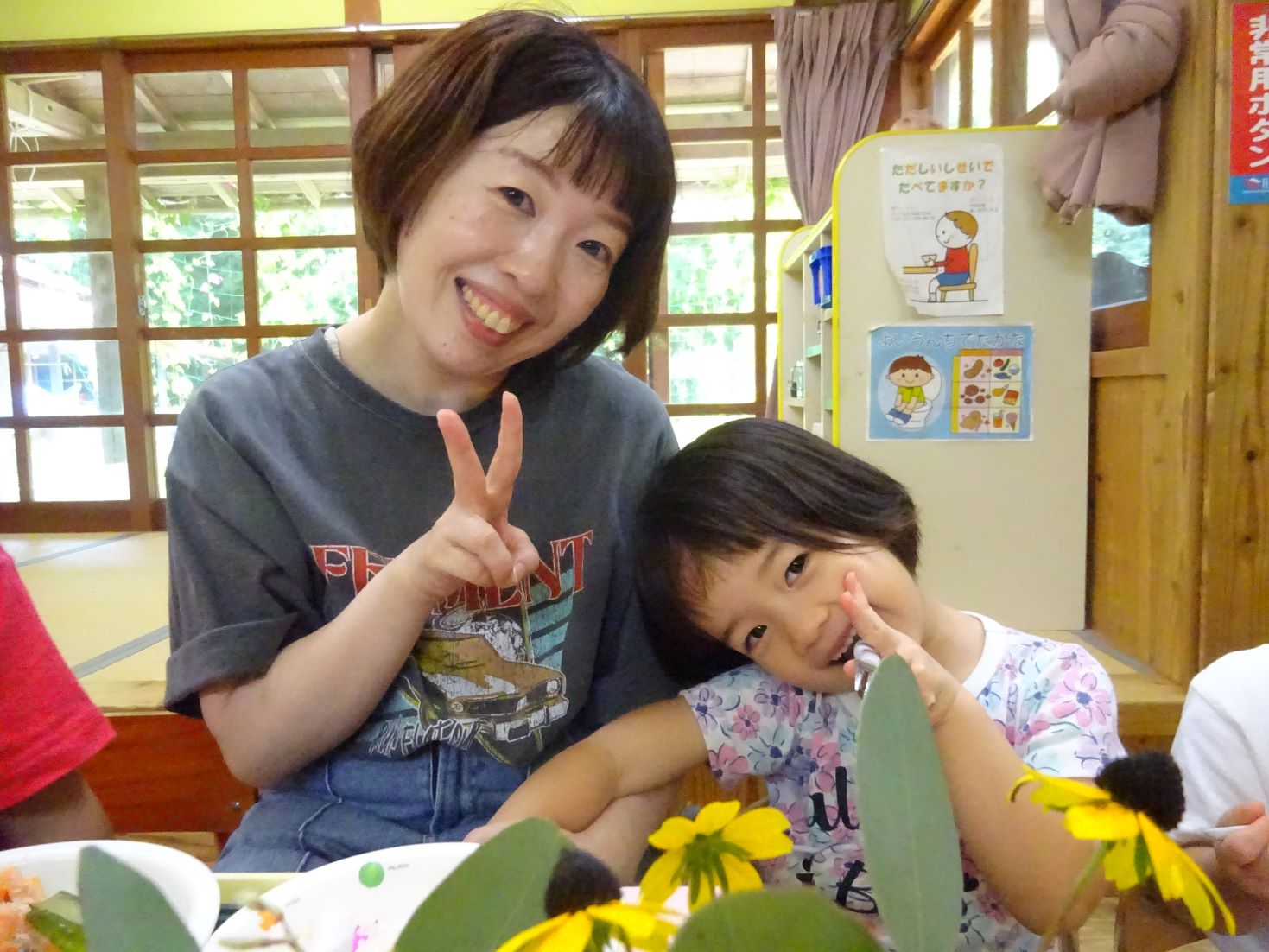 会の後は、お母さんと一緒に美味しい誕生会メニューの給食を嬉しそうに食べていました。