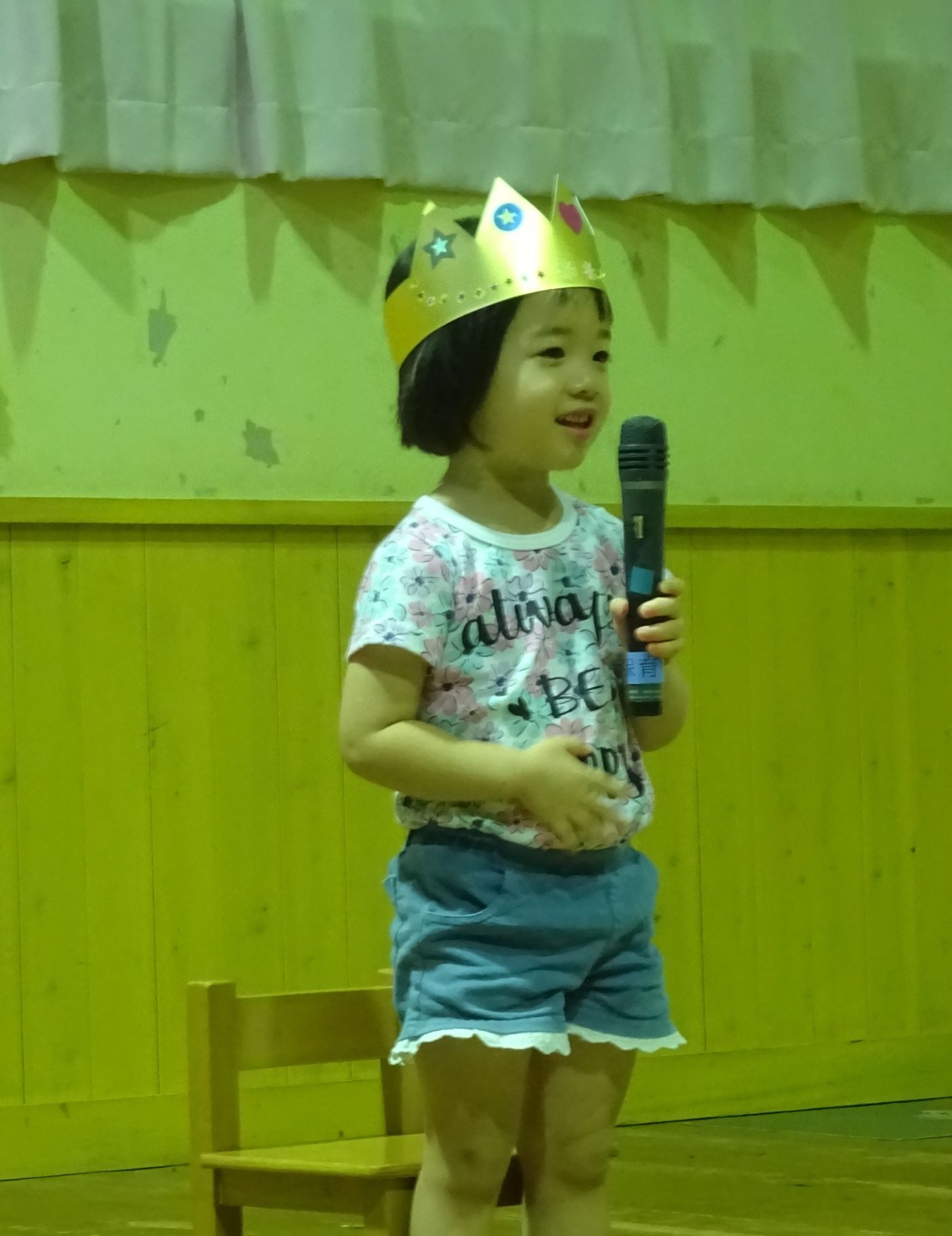 誕生児さんは、自己紹介をはっきり元気よく言ったり、質問には「○○○○です」と、とっても丁寧な言葉で受け答えをしたりしていて、成長を感じることができました。