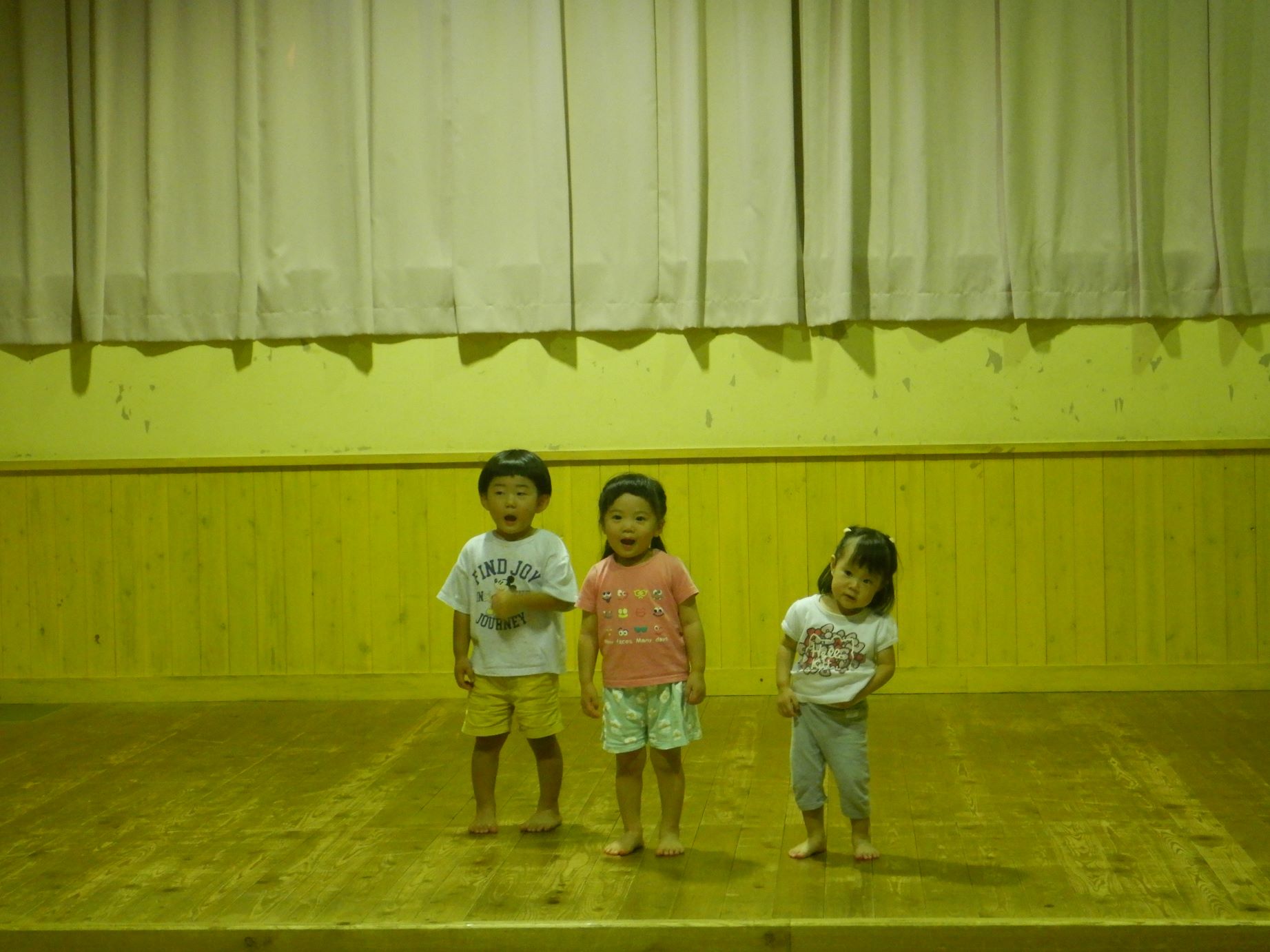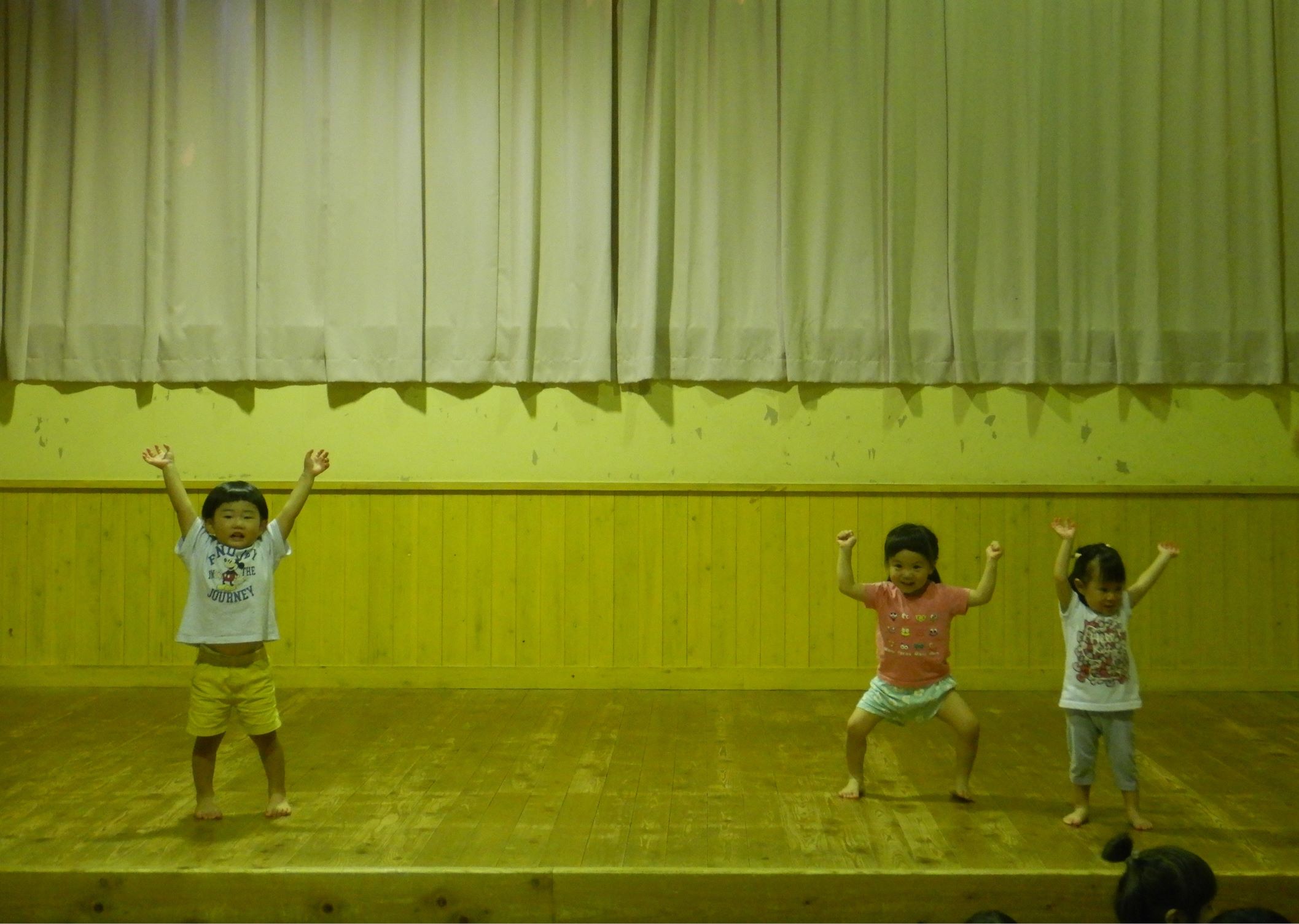 遊戯室での発表は、歌と体操をしました。普段保育室でする時より、張り切って元気一杯していた子ども達で、頼もしかったです。