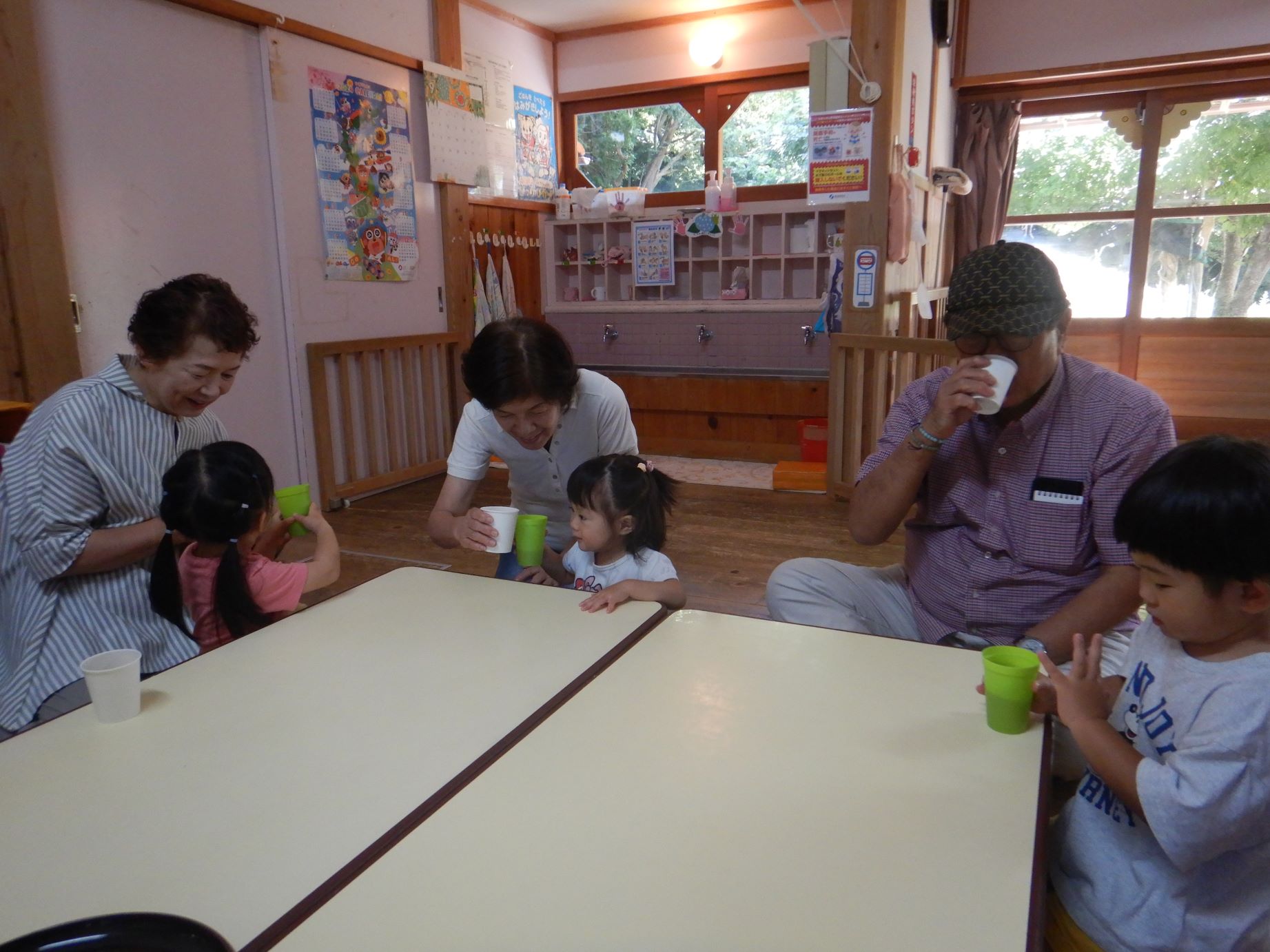 楽しみにしていた祖父母参観日。保育室におじいさん・おばあさんが次々に入って来られると、嬉しくて抱きつく子ども達でした。