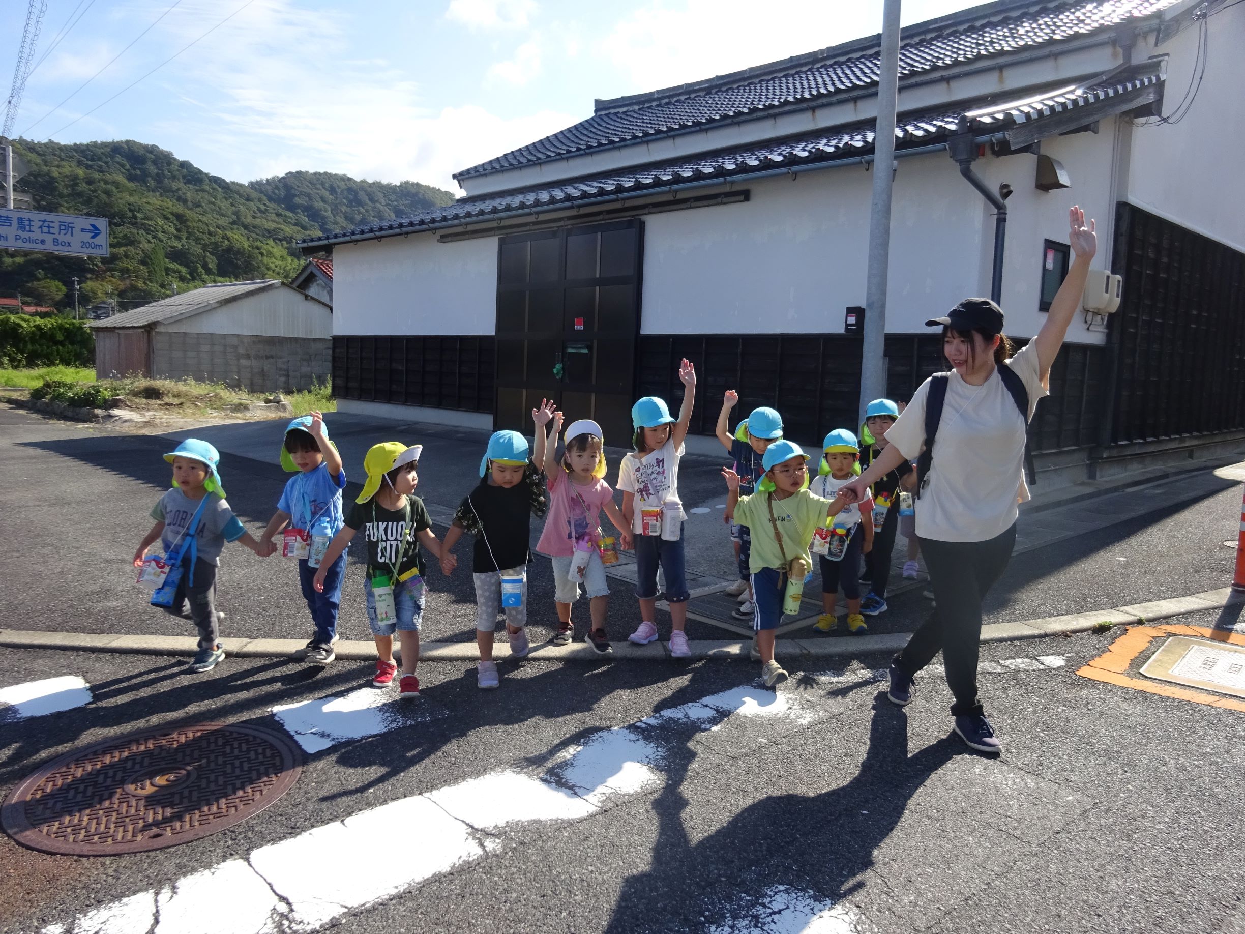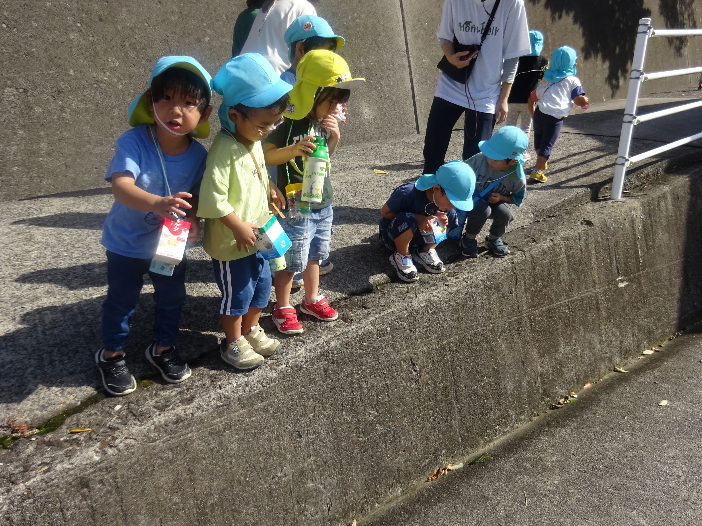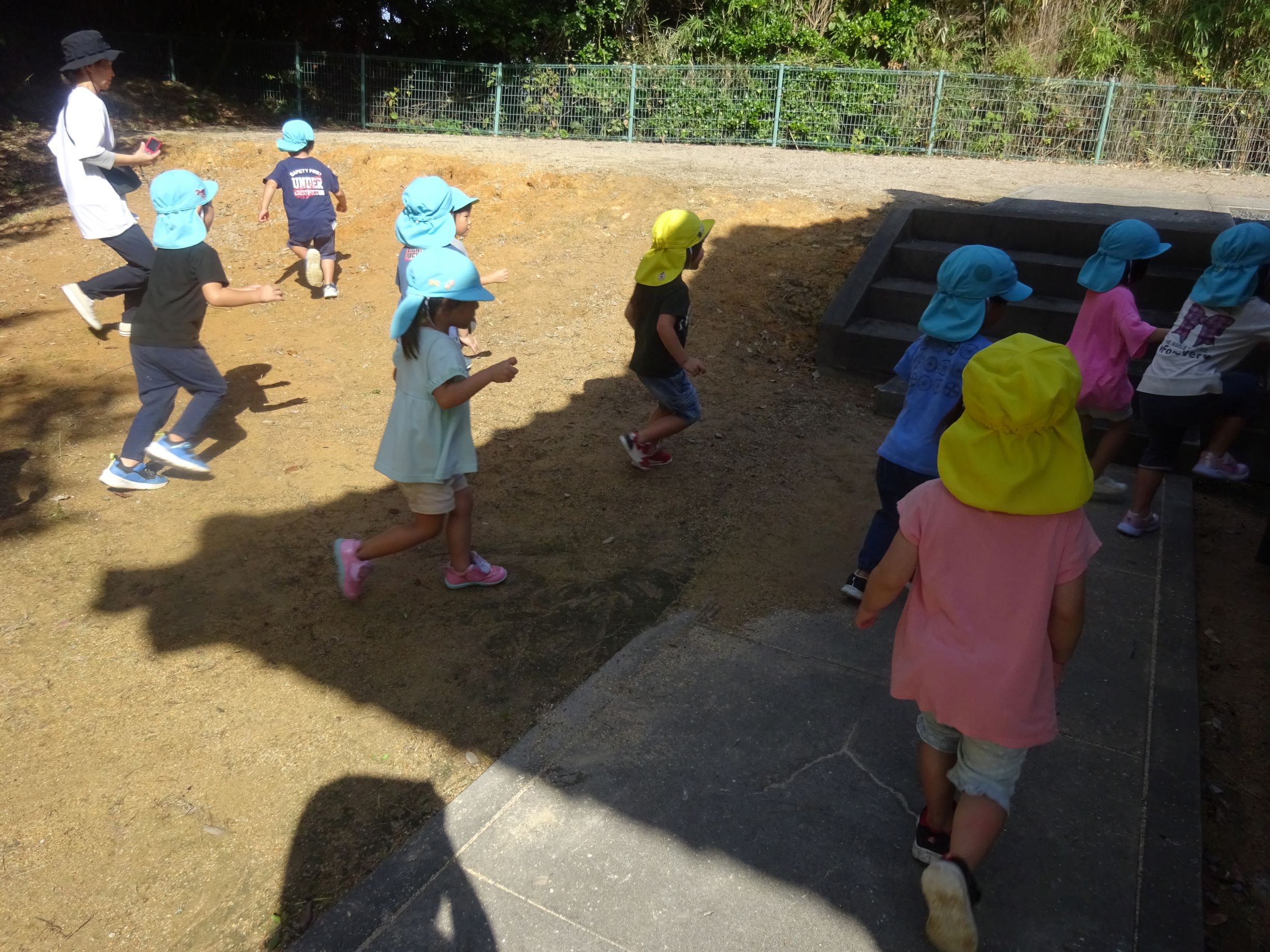 今日は絶好の散歩日和。前回照れてぺんぎん組の友達と手を繋げなかったのですが、今回は手を繋いで歩きました。大﨑神社ではみんなでかくれんぼをしたり、小田和坂ではしいの実、クヌギを見つけて拾ったりしました。夕方も所庭で友達と元気いっぱい遊び、楽しい1日になりました。