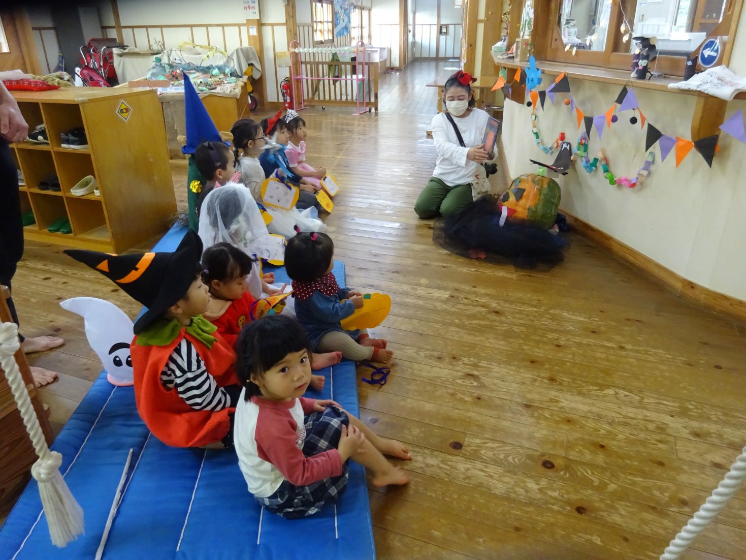 ハロウィンの絵本を読んで、気分を盛り上げます