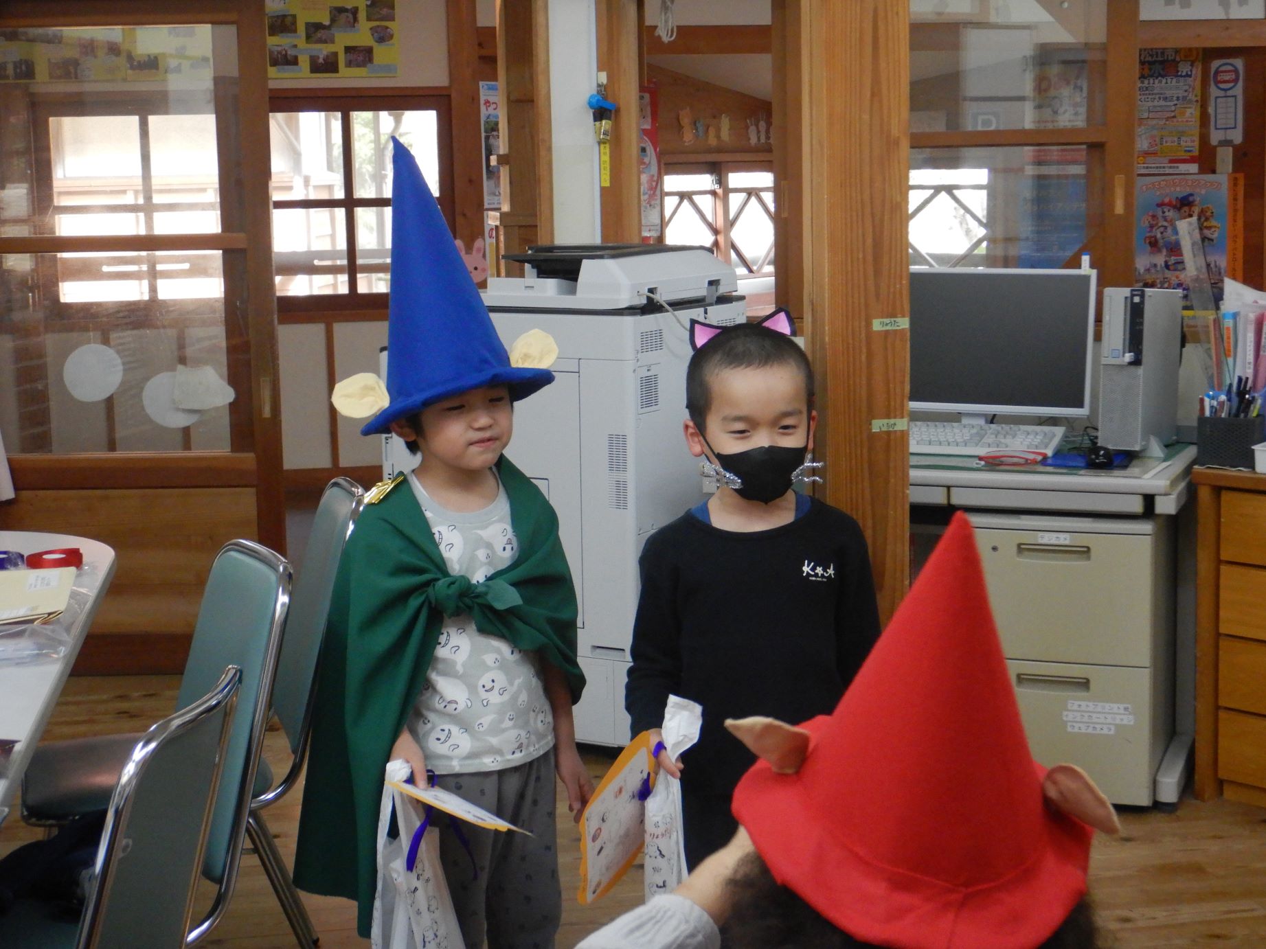ゲームを楽しんだ後は、「トリックオアトリート!おかしをくれないといたずらするぞ!」と お約束の言葉を言って、お菓子をいただきました。