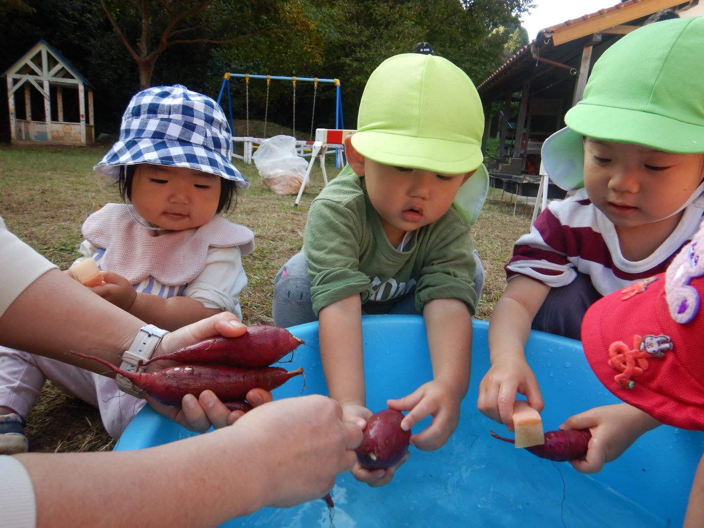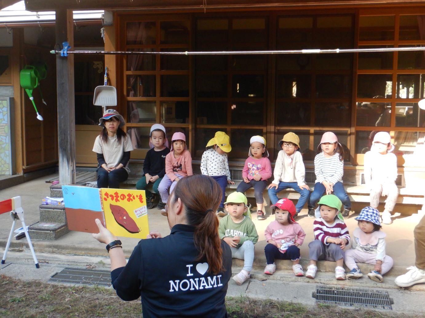 下準備後、絵本「さつまのおいも」をみんなで見て…