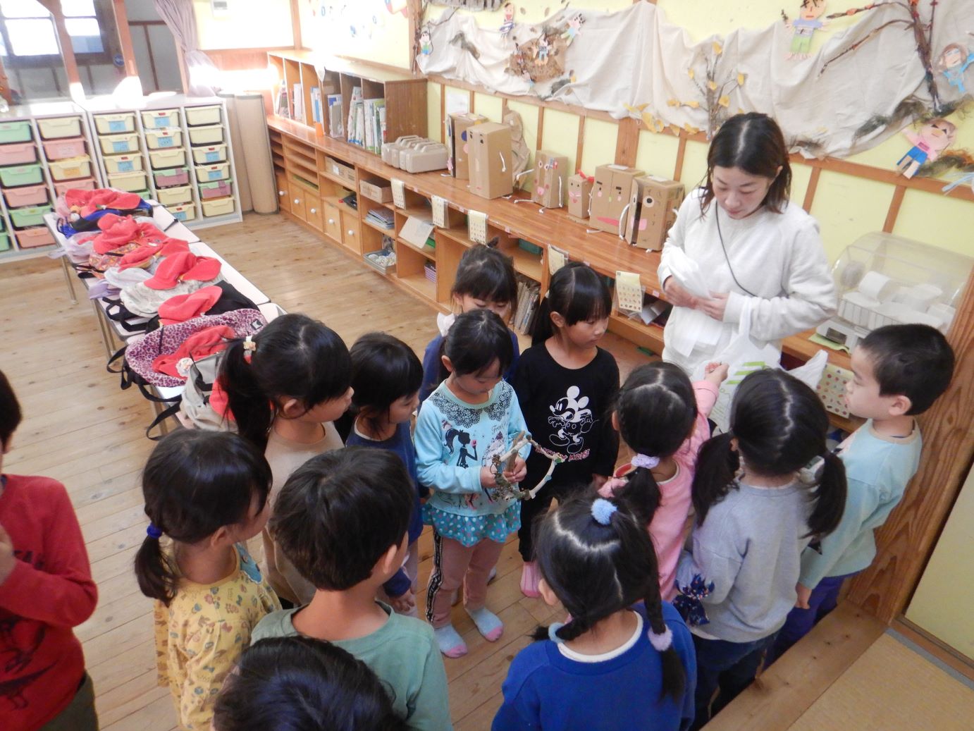 今日は楽しみにしていた5歳児交流で、マリン保育所の5歳児・くじら組の友達が野波保育所に遊びに来てくれました。マリン保育所の友達から写真立てのプレゼントをもらい、こども達も担任も嬉しい気持ちでいっぱい‼前回の交流で一緒に遊んだ“せっせっせ”を楽しみました。