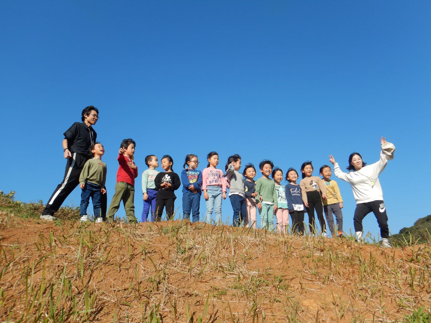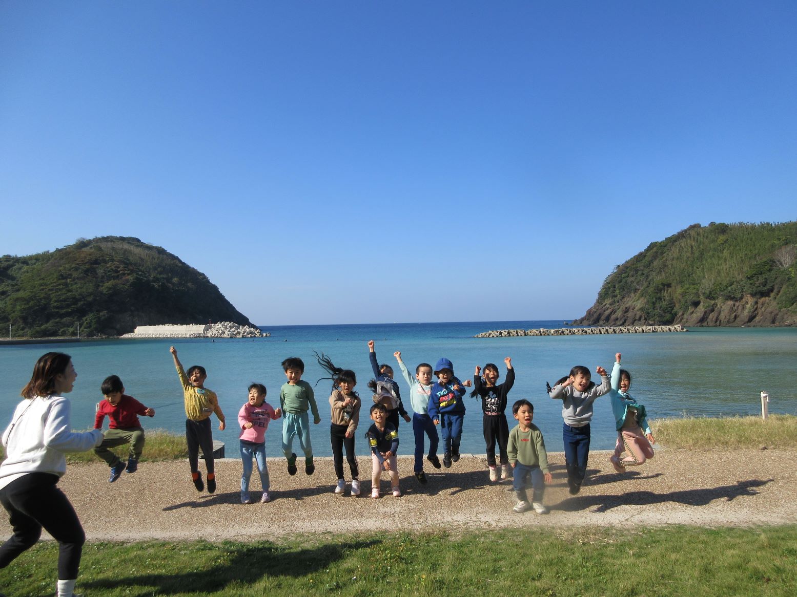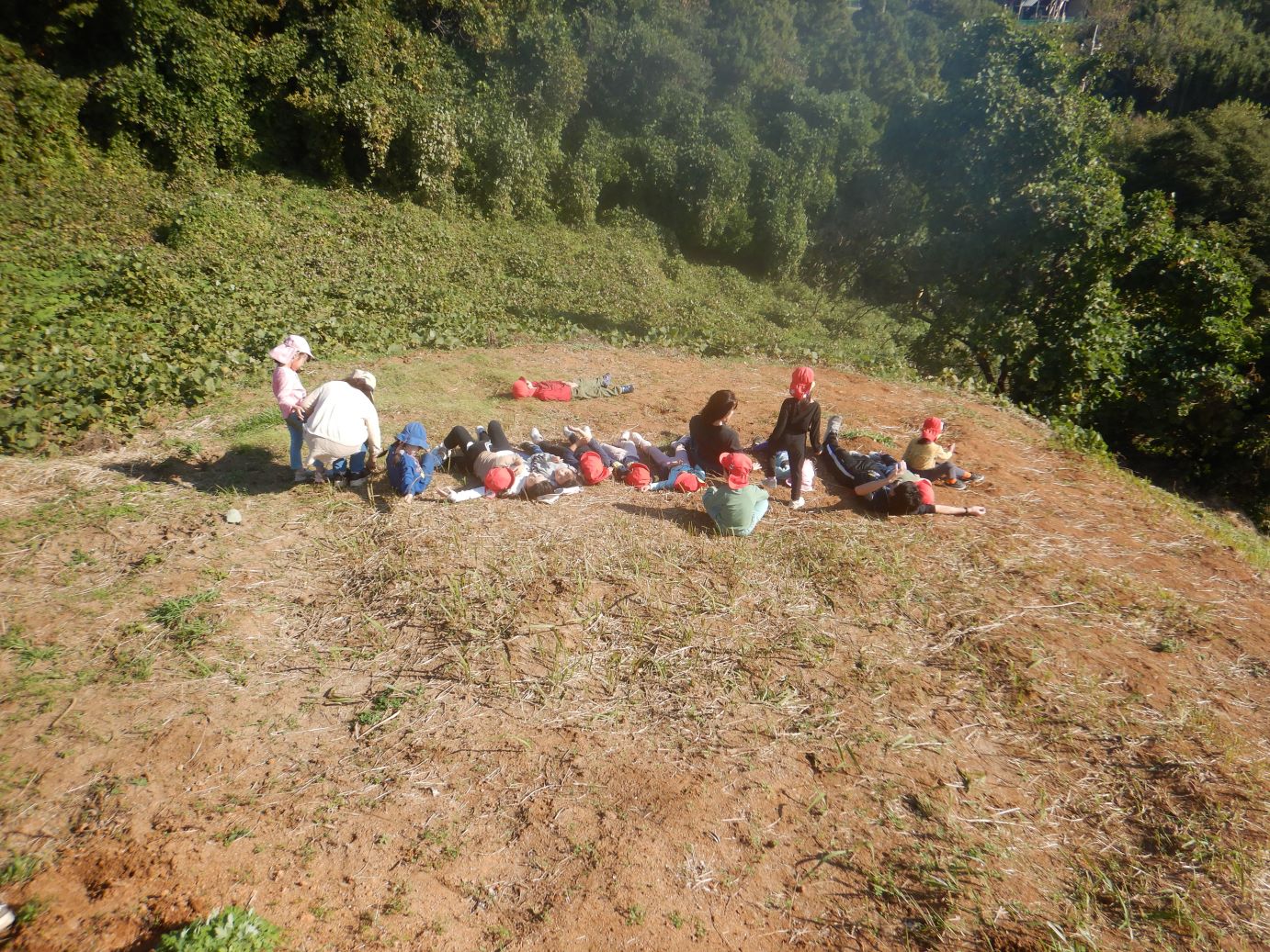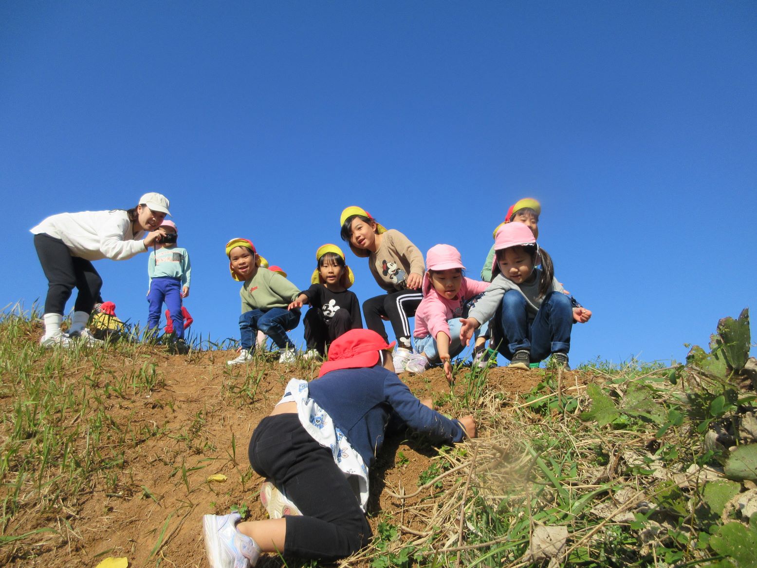 その後は早速、みんなでコロコロ斜面へ出掛けました♪コロコロ斜面では電車のように友達とつながって滑ったり、みんなで寝転んで青空を見たり、ツルでティアラを作ったりしました。それから、小波海水浴場に立ち寄ると、以前サップでお世話になった方がおられ、みんなで挨拶へ行きました。