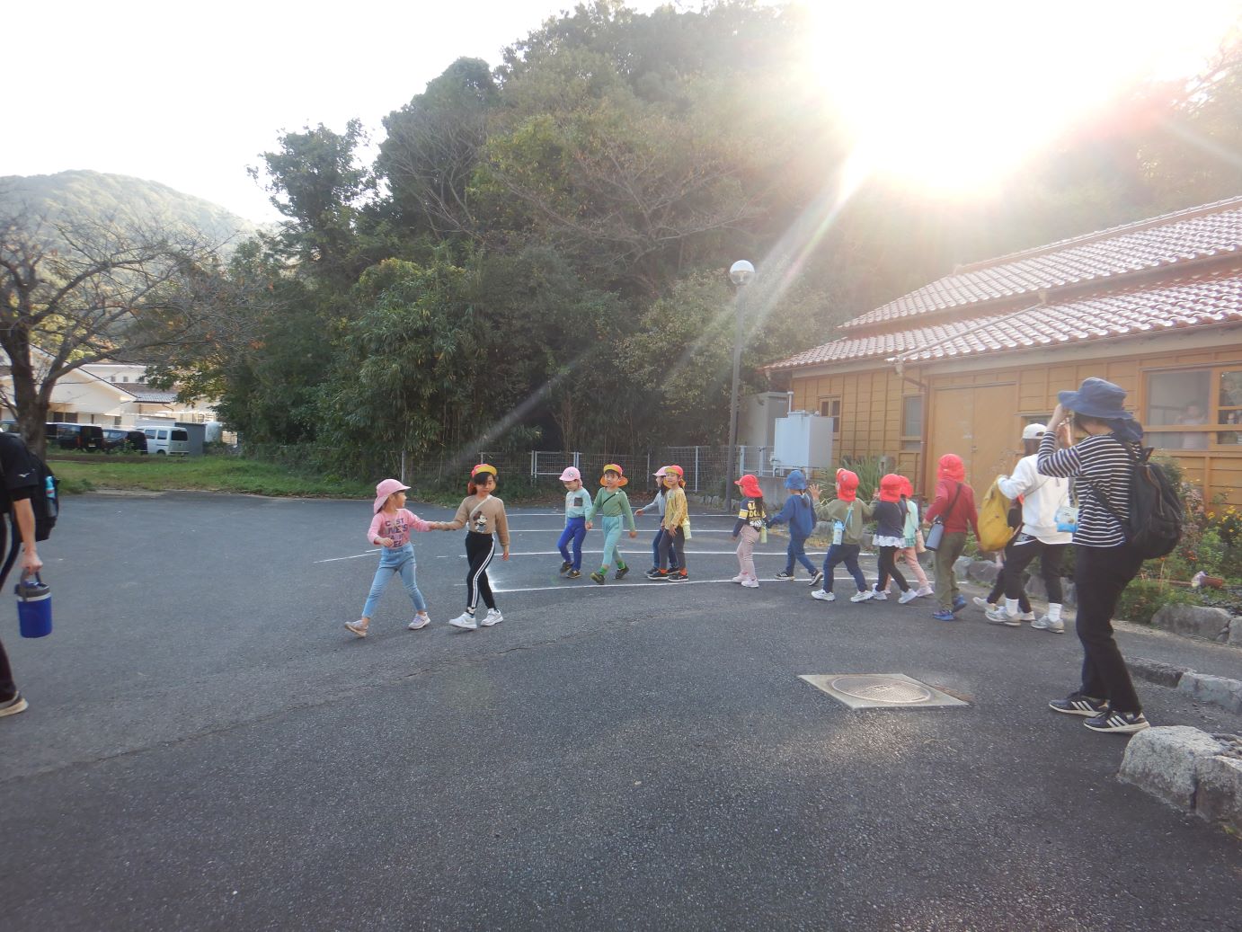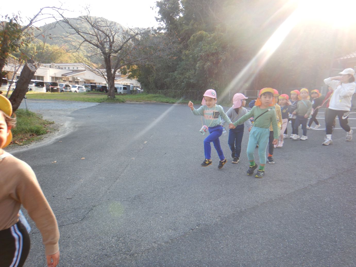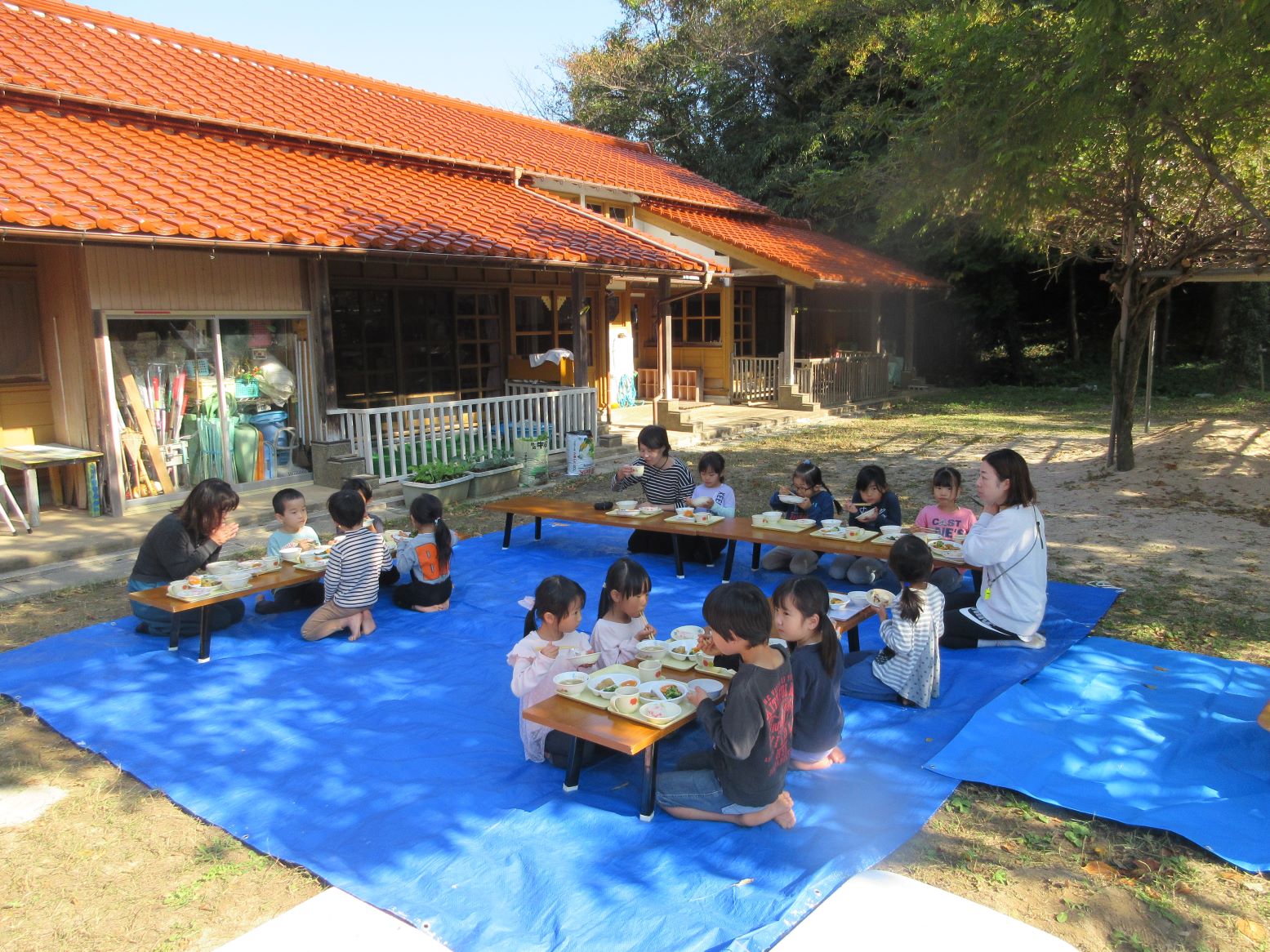 帰りは「おなか ぺこぺこ~」「そとで たべた~い」と給食を楽しみにルンルン気分で帰りました。みんなで所庭の木陰で給食を頂きました。お腹が空いて、たくさんお代わりをしました。