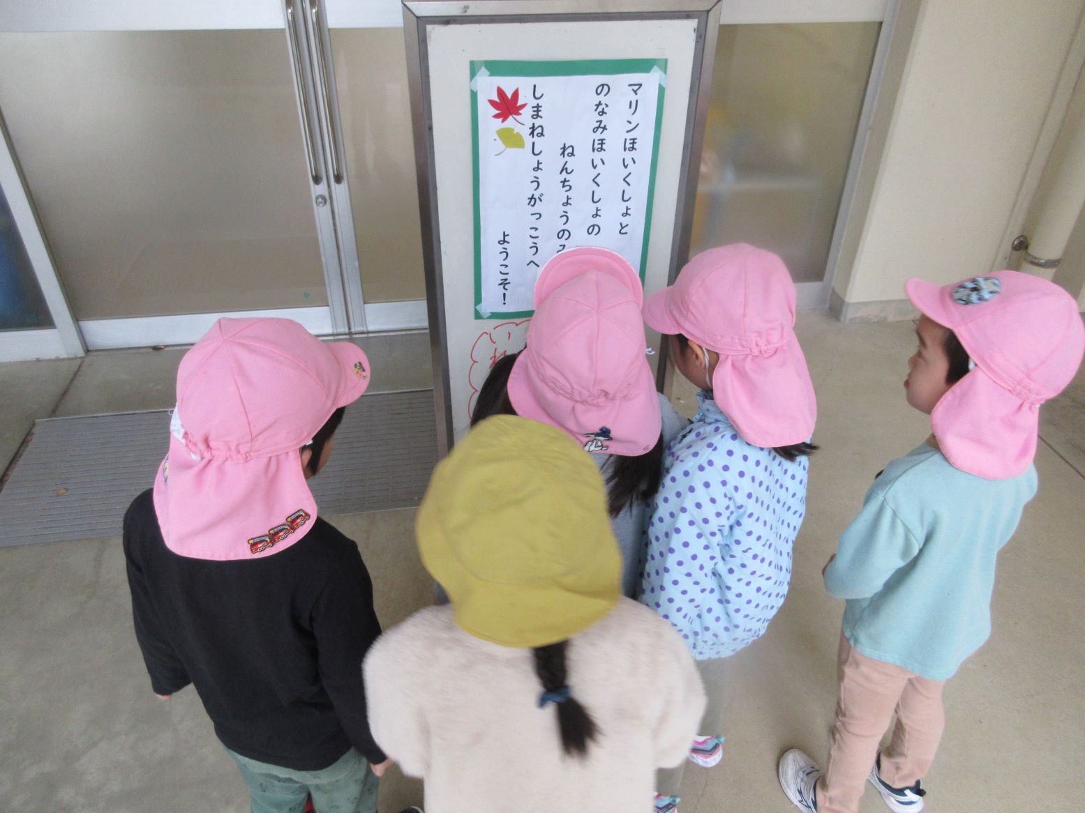 島根小学校の正面玄関に着くと手紙があり、こども達はわくわくした気持ちで校舎に入りました。