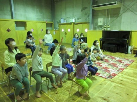 お楽しみ会で、こども達は“ジェスチャークイズ”と“ドジョウすくい踊り”の出し物を楽しみました。